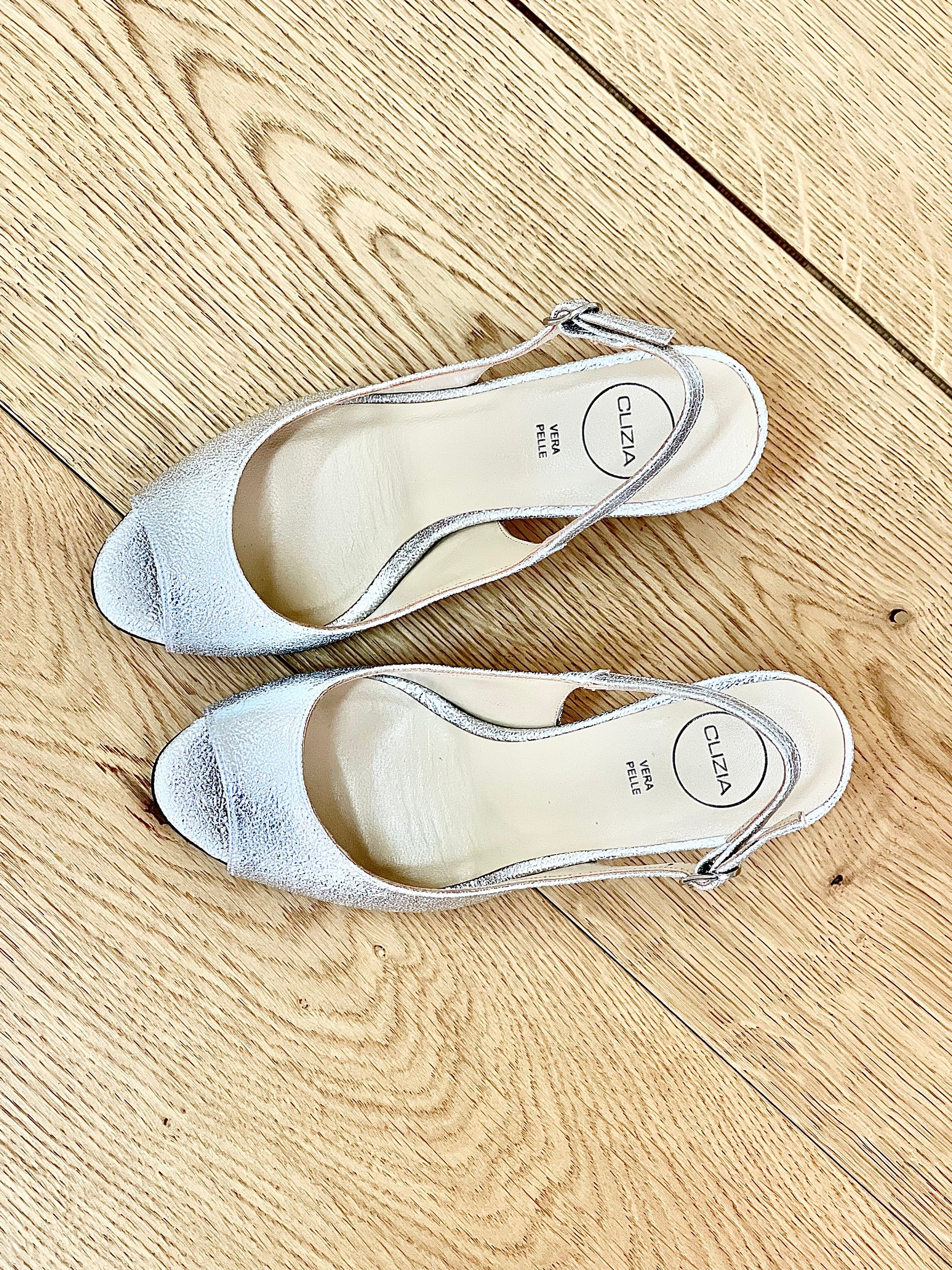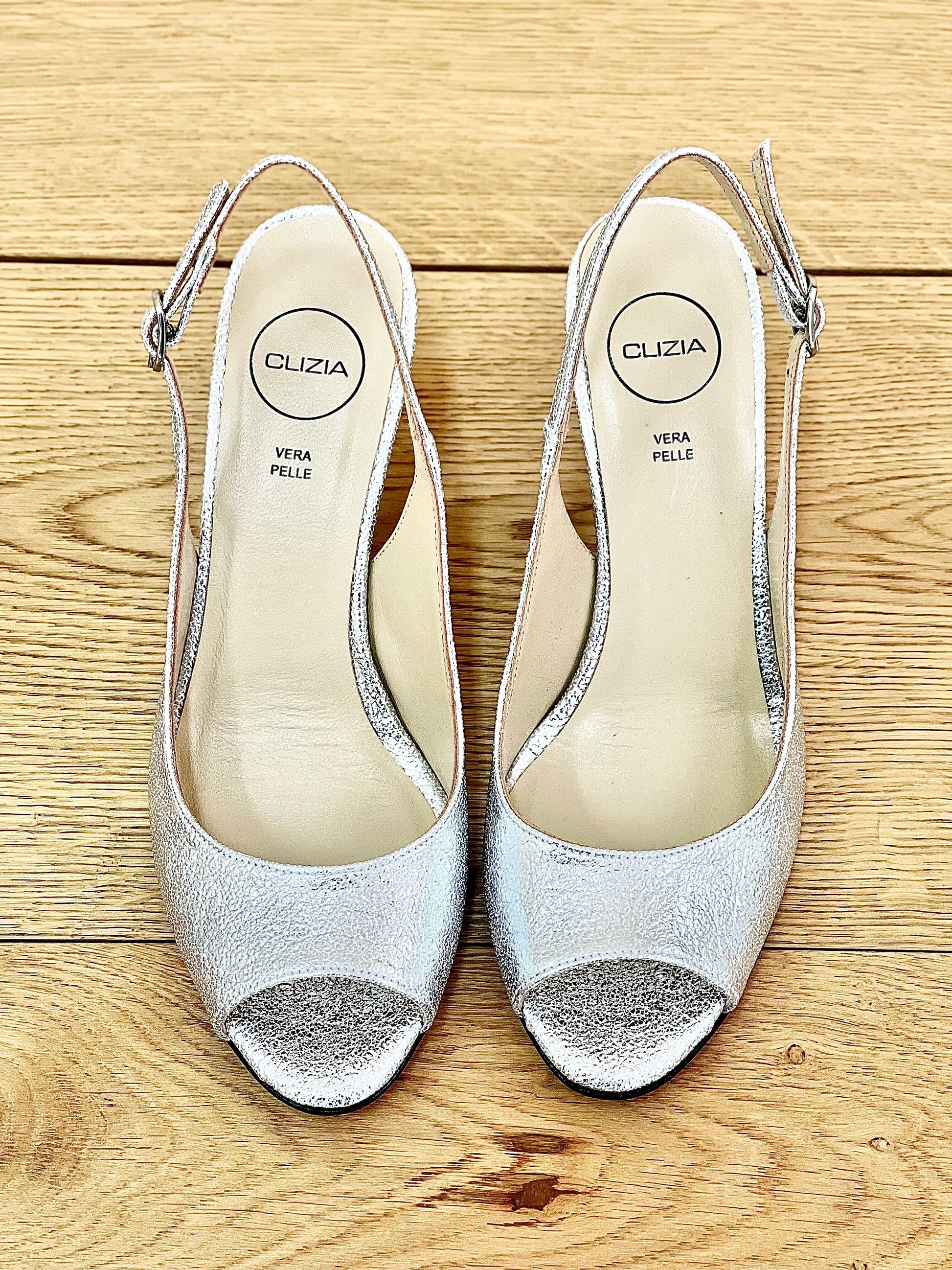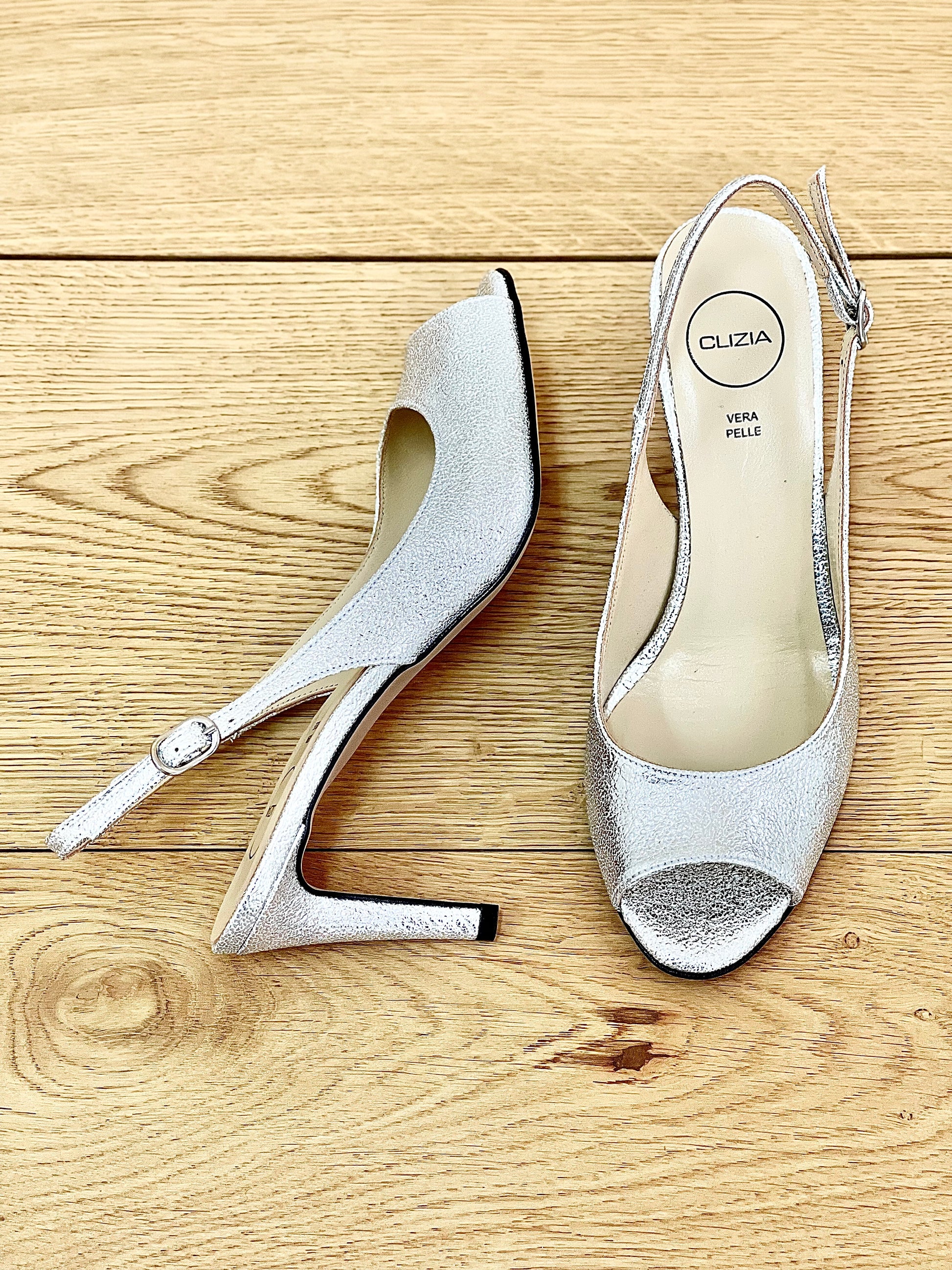 Laminaat slingback pumps met een hak van 7,5 cm.