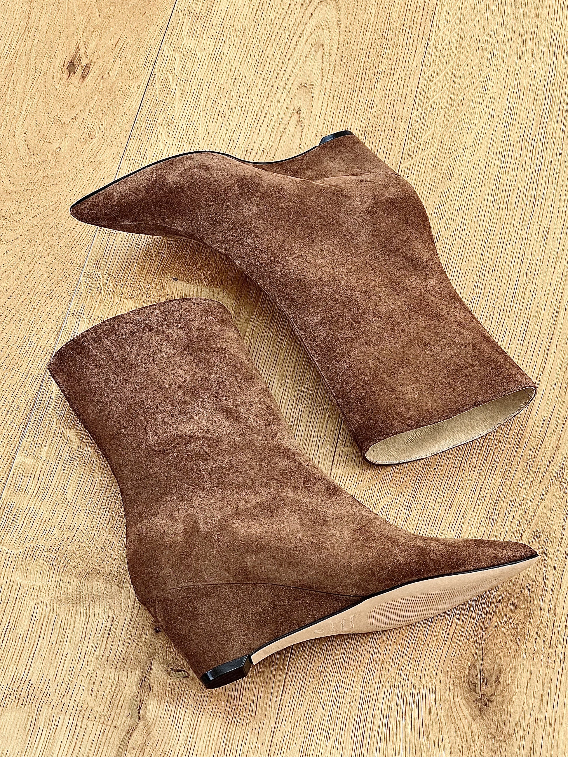 Enkellaarsjes van suède met een sleehak aan de achterkant van 6 cm.