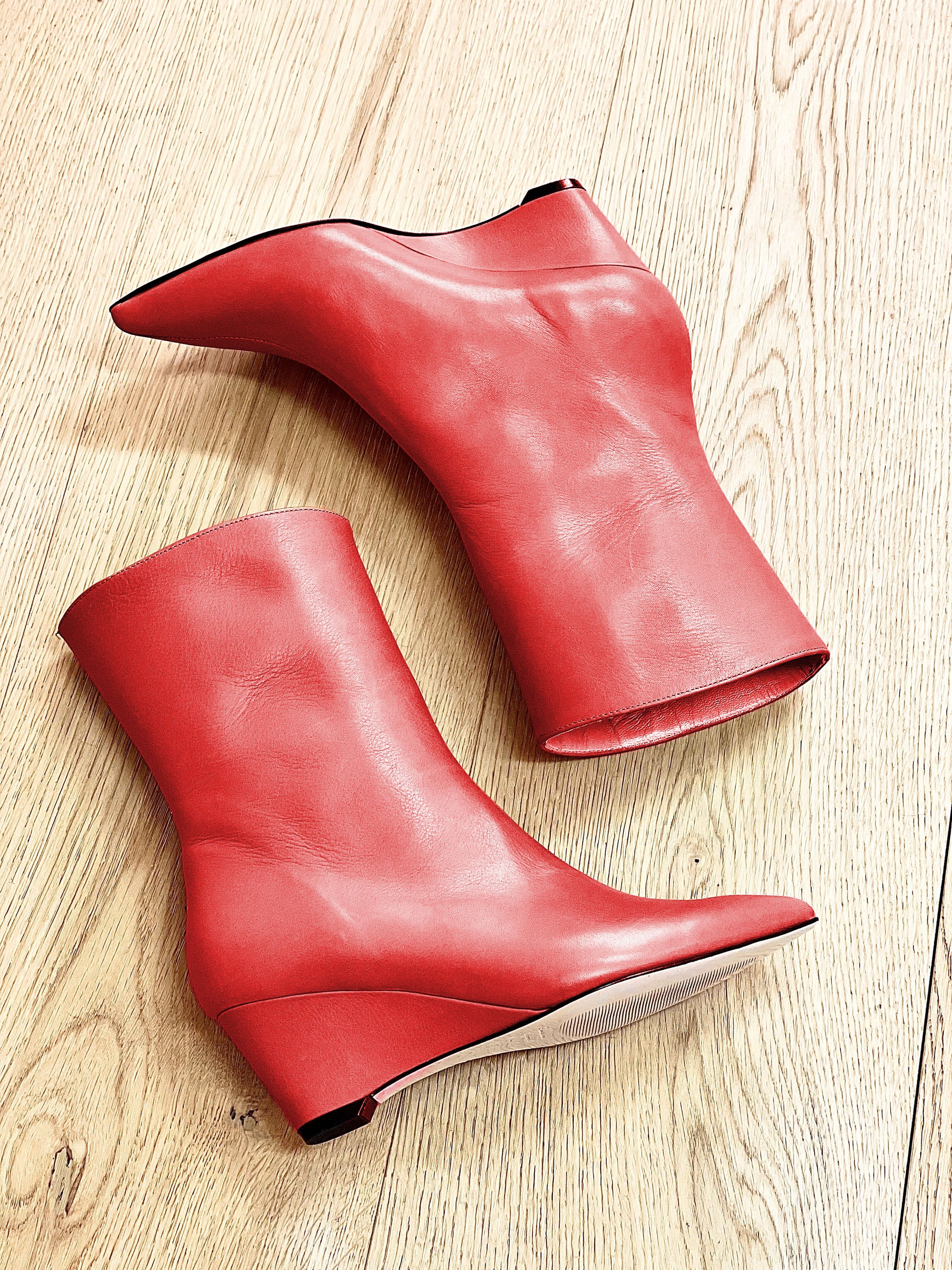 Buisvormige leren enkellaarsjes met sleehak aan de achterkant van 6 cm.