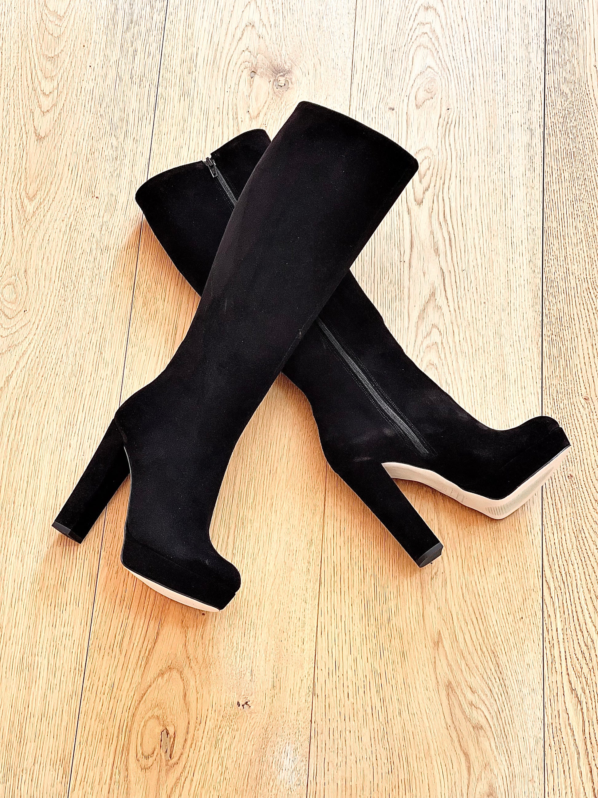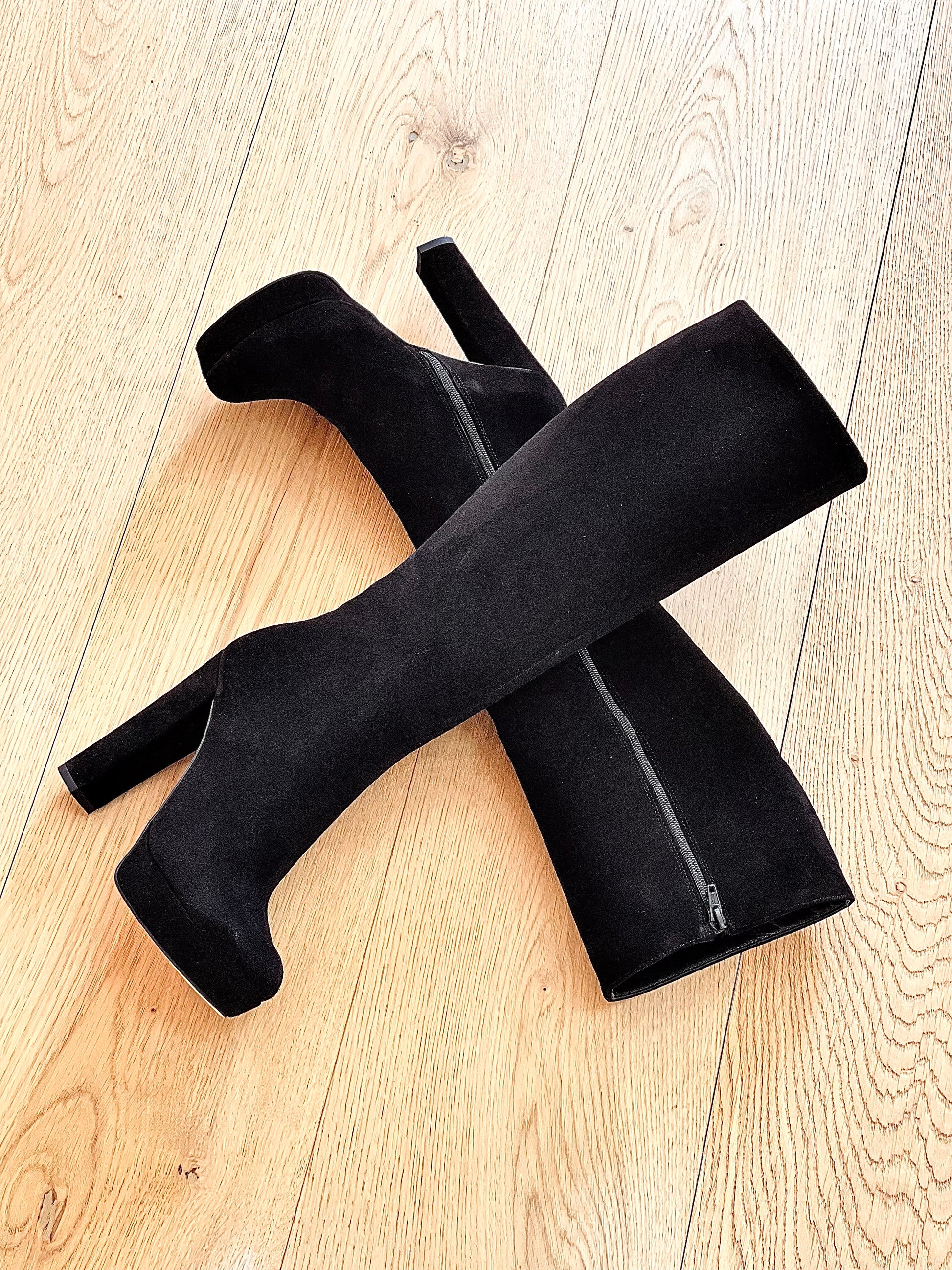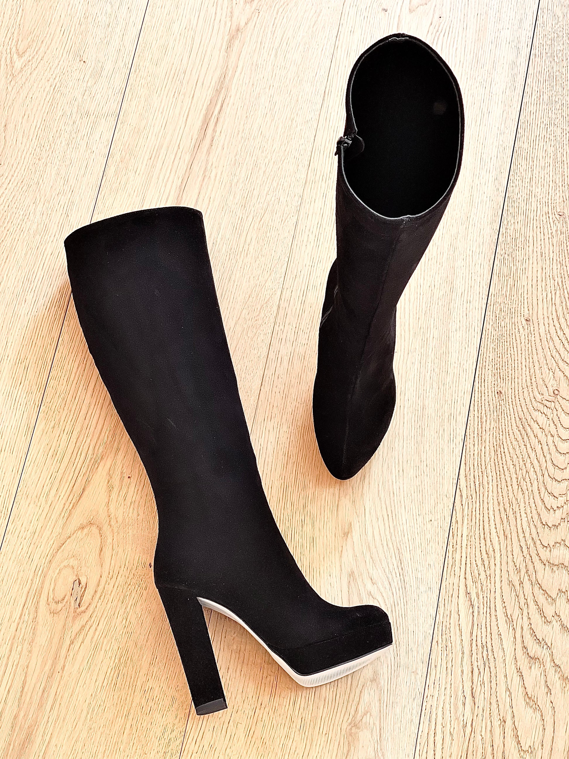 Laarzen met ronde teen, hoge hak van 12 cm en plateau van 2 cm in suède.