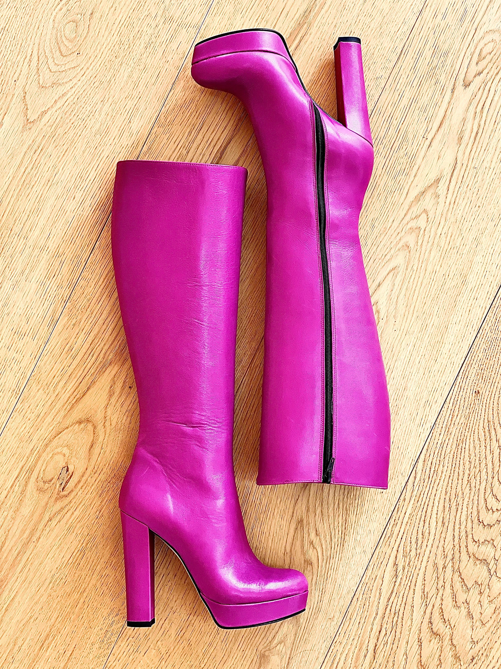 Leren laarzen met ronde teen, 12 cm hoge hak en 2 cm plateau.