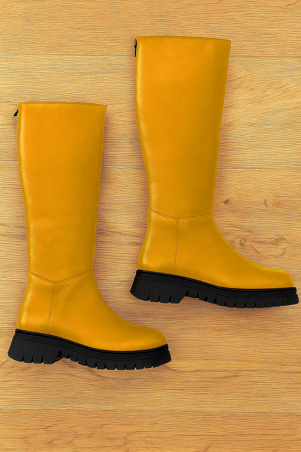 Lage laarzen met ronde neus en ritssluiting aan de achterkant.