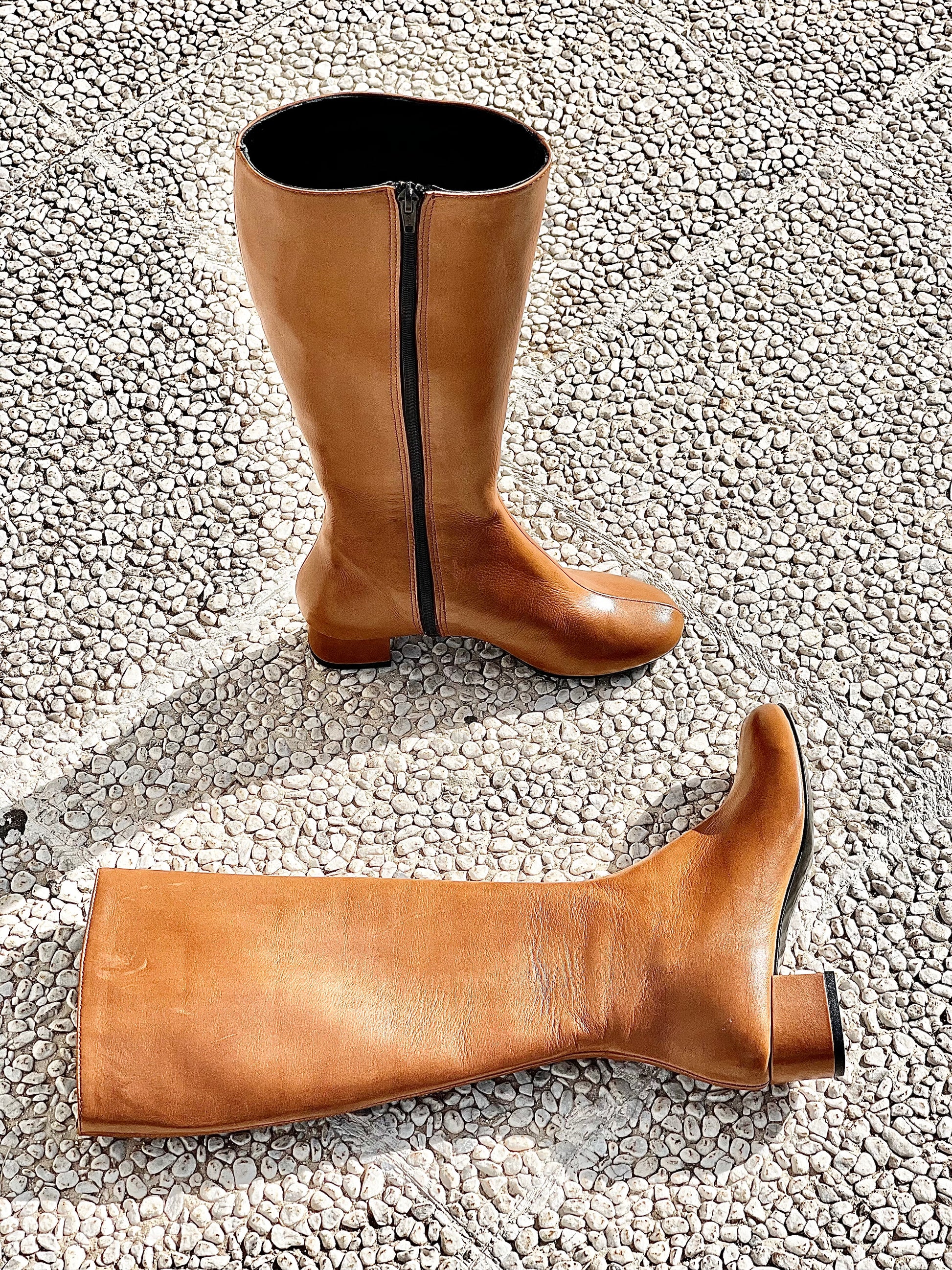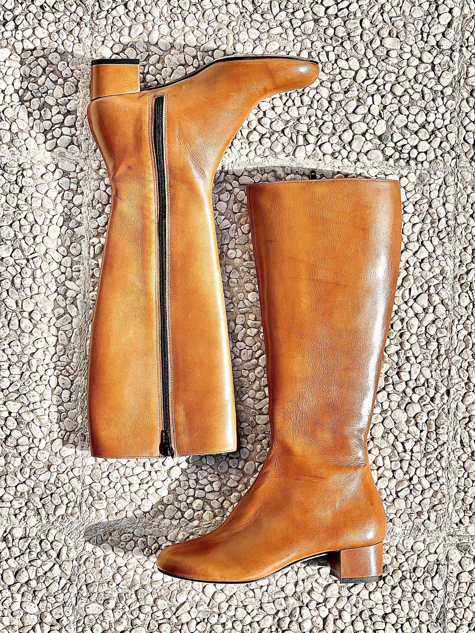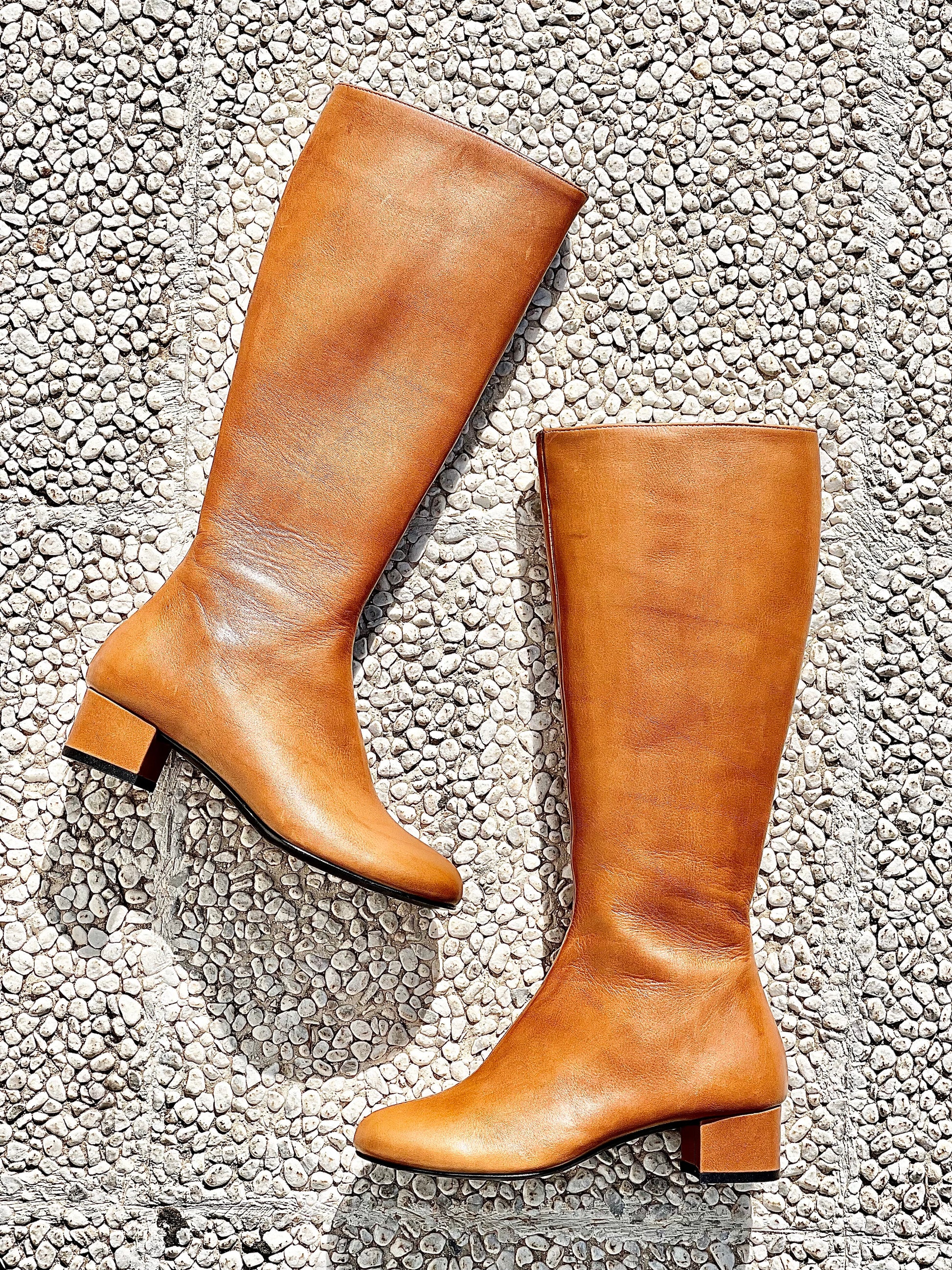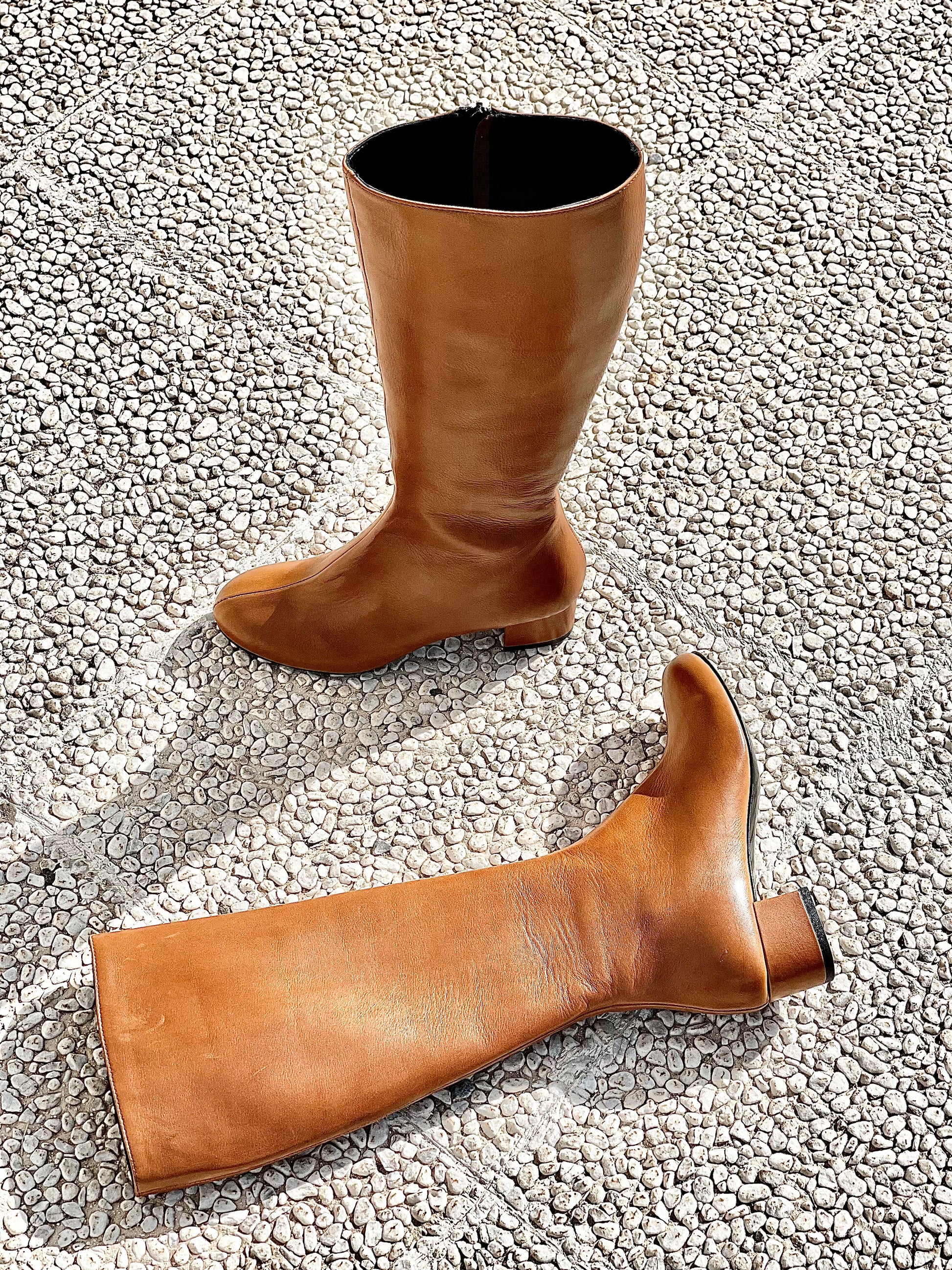 Leren laarzen met ronde neus en 4 cm brede hak.