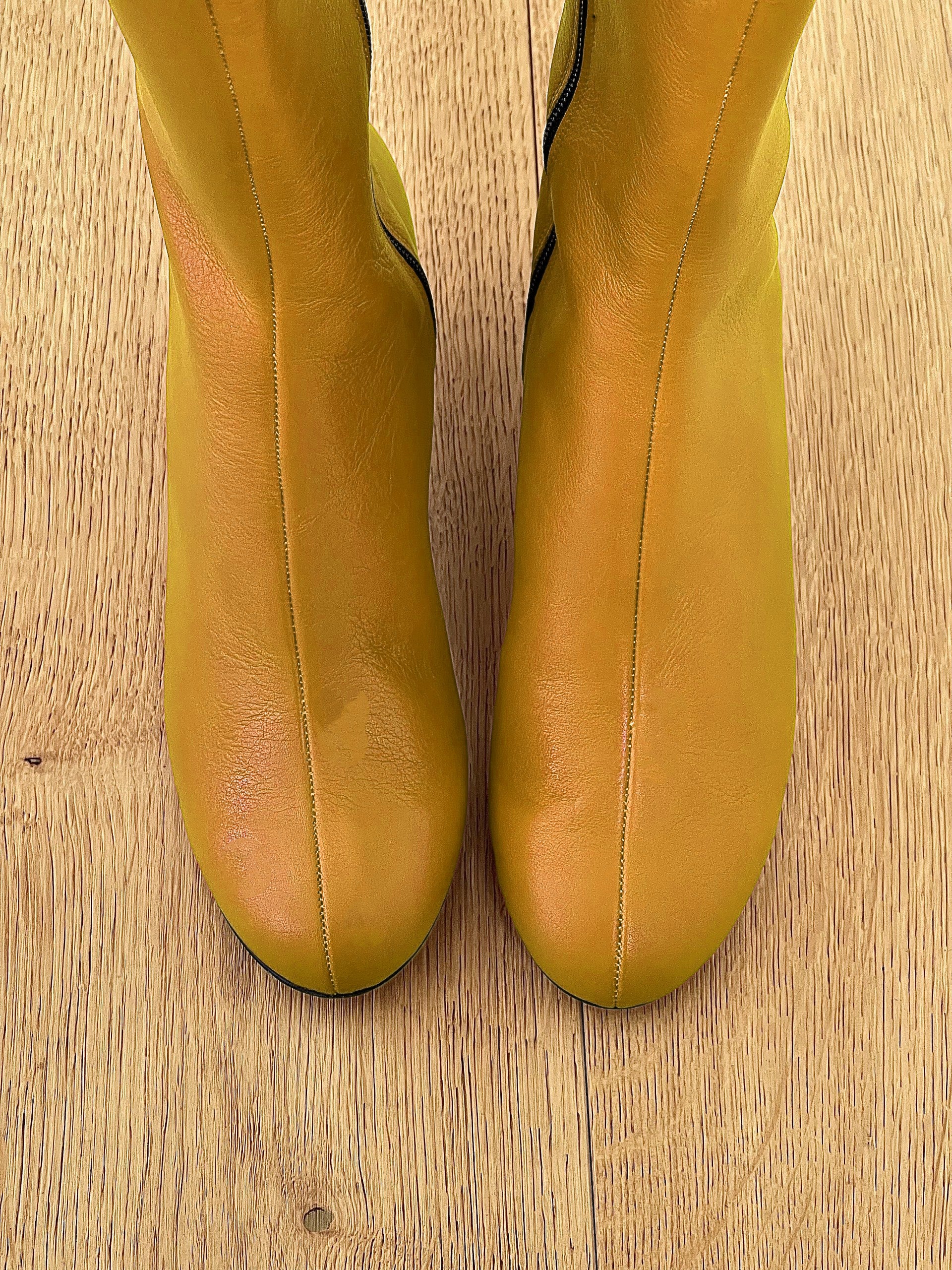 Lage laarzen met brede hak en ronde teen.