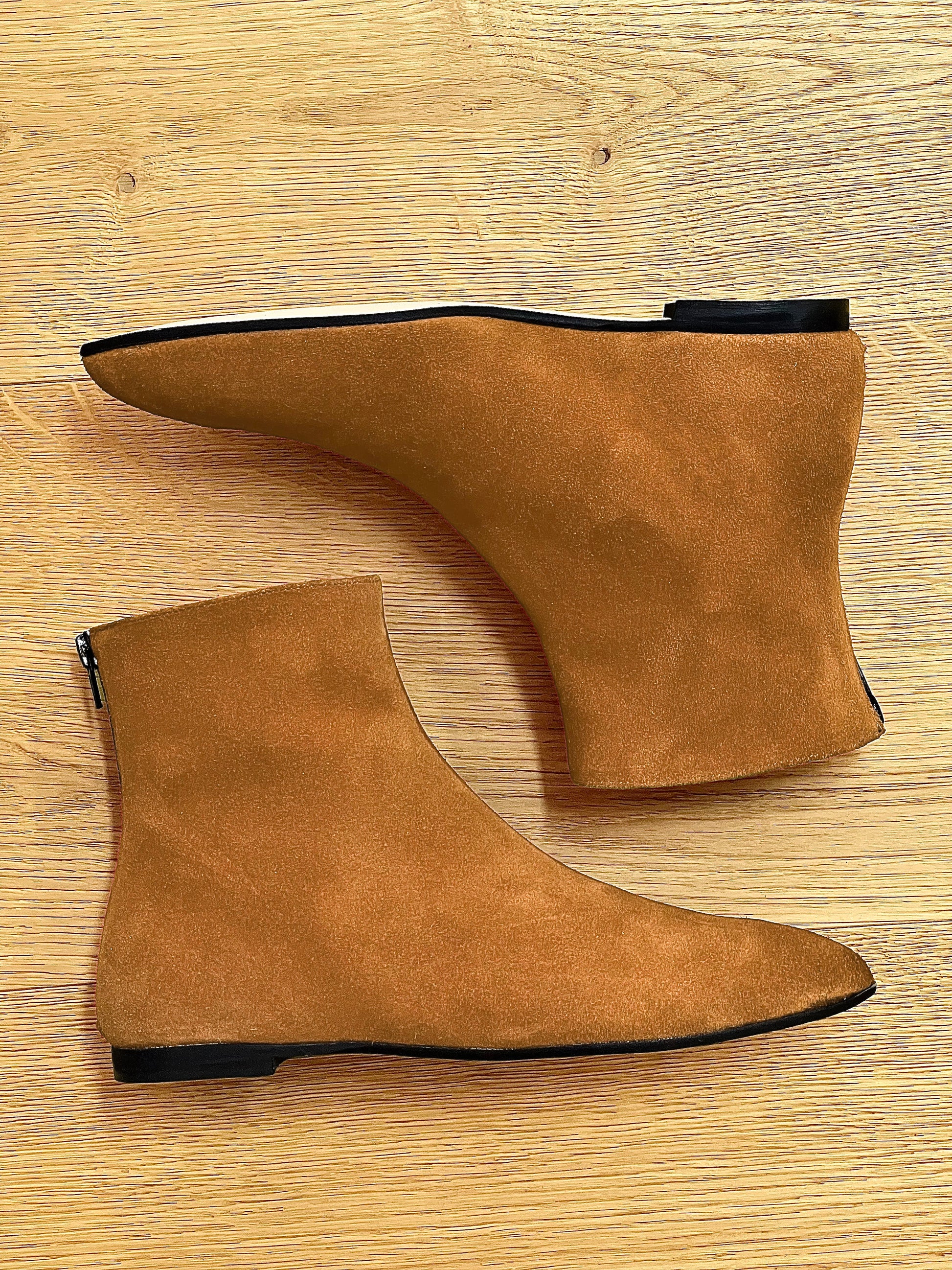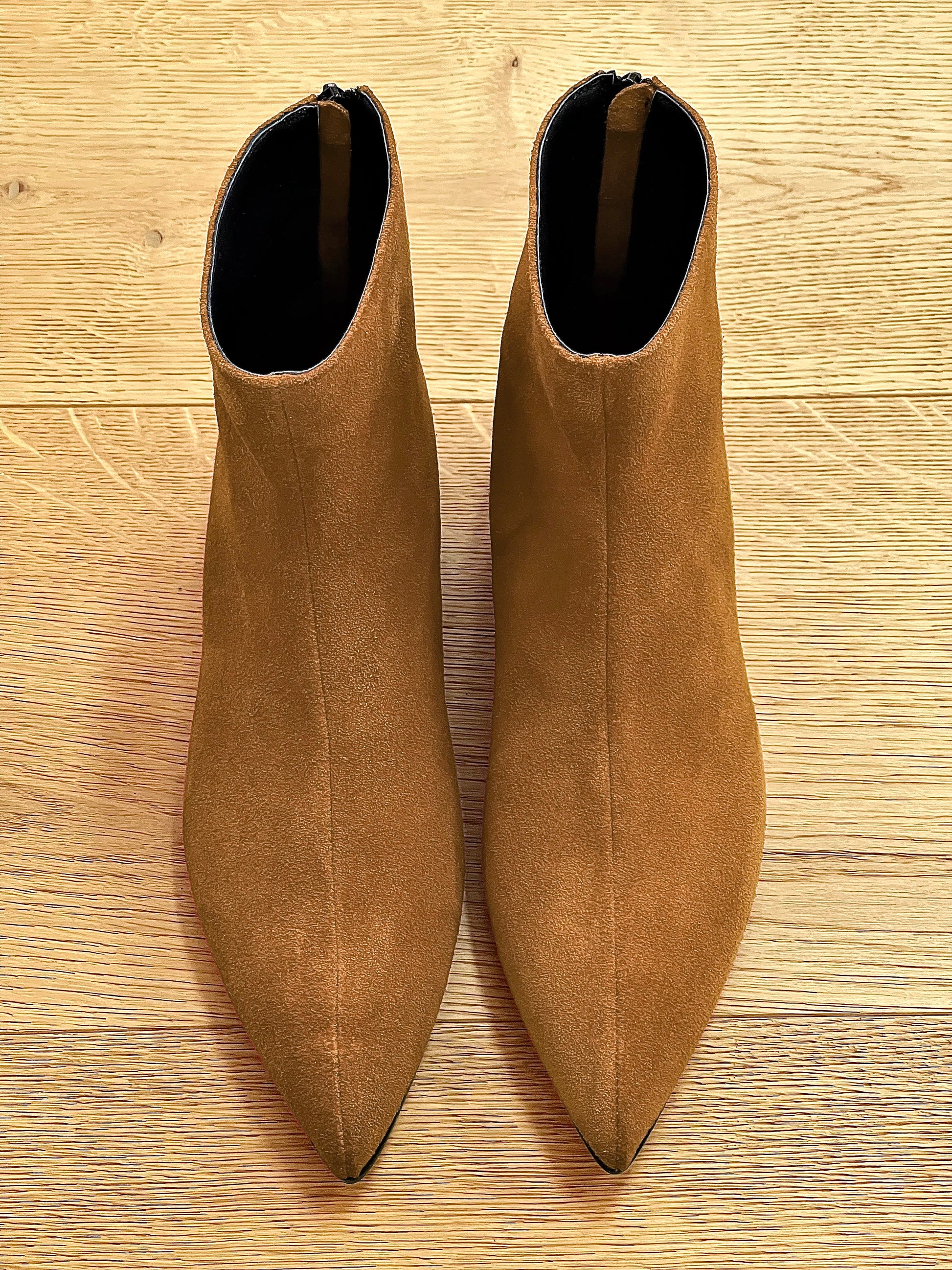 Enkellaarsjes met lage teen en ritssluiting aan de achterkant.