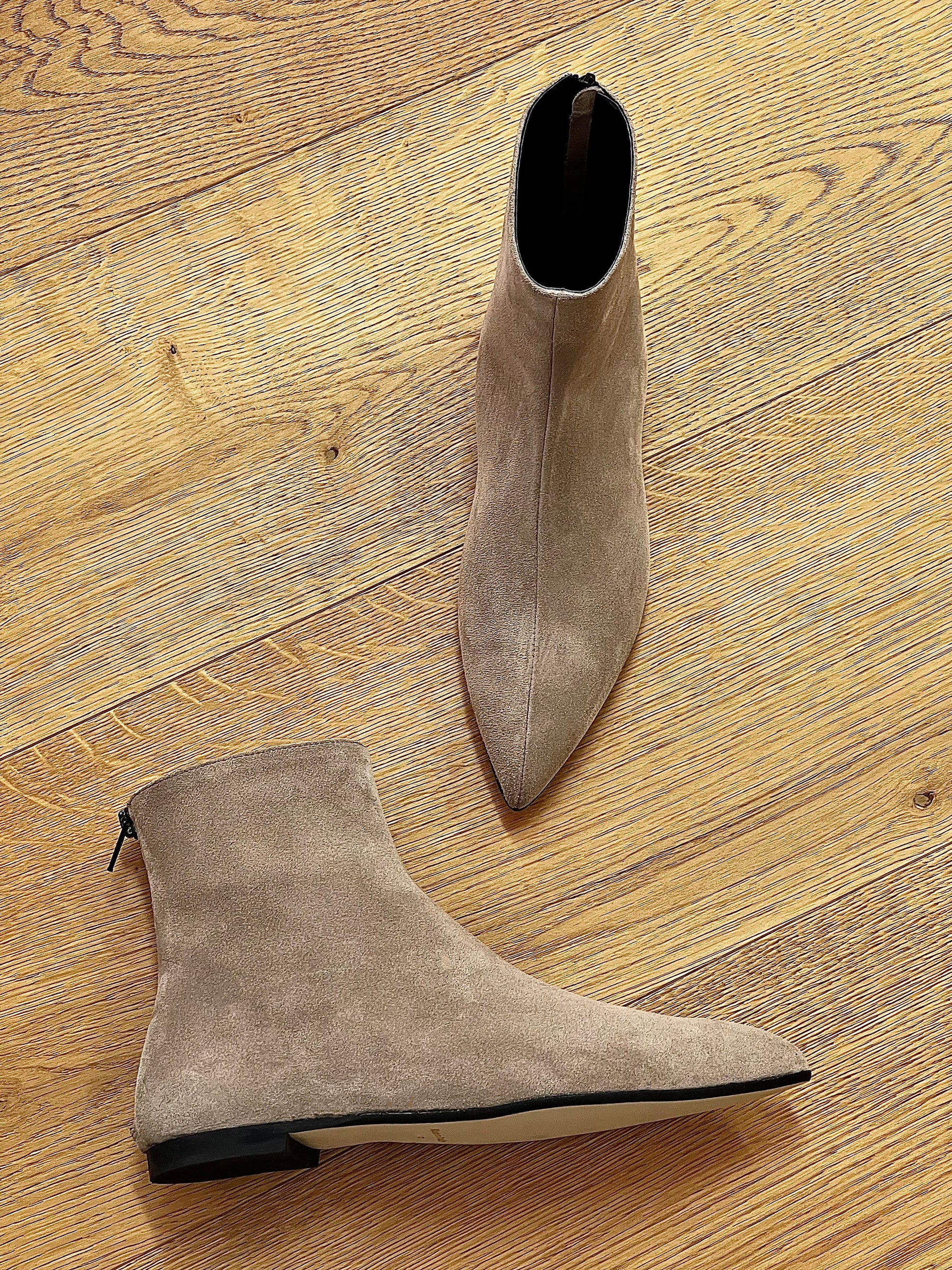 Enkellaarsjes met lage teen en ritssluiting aan de achterkant.