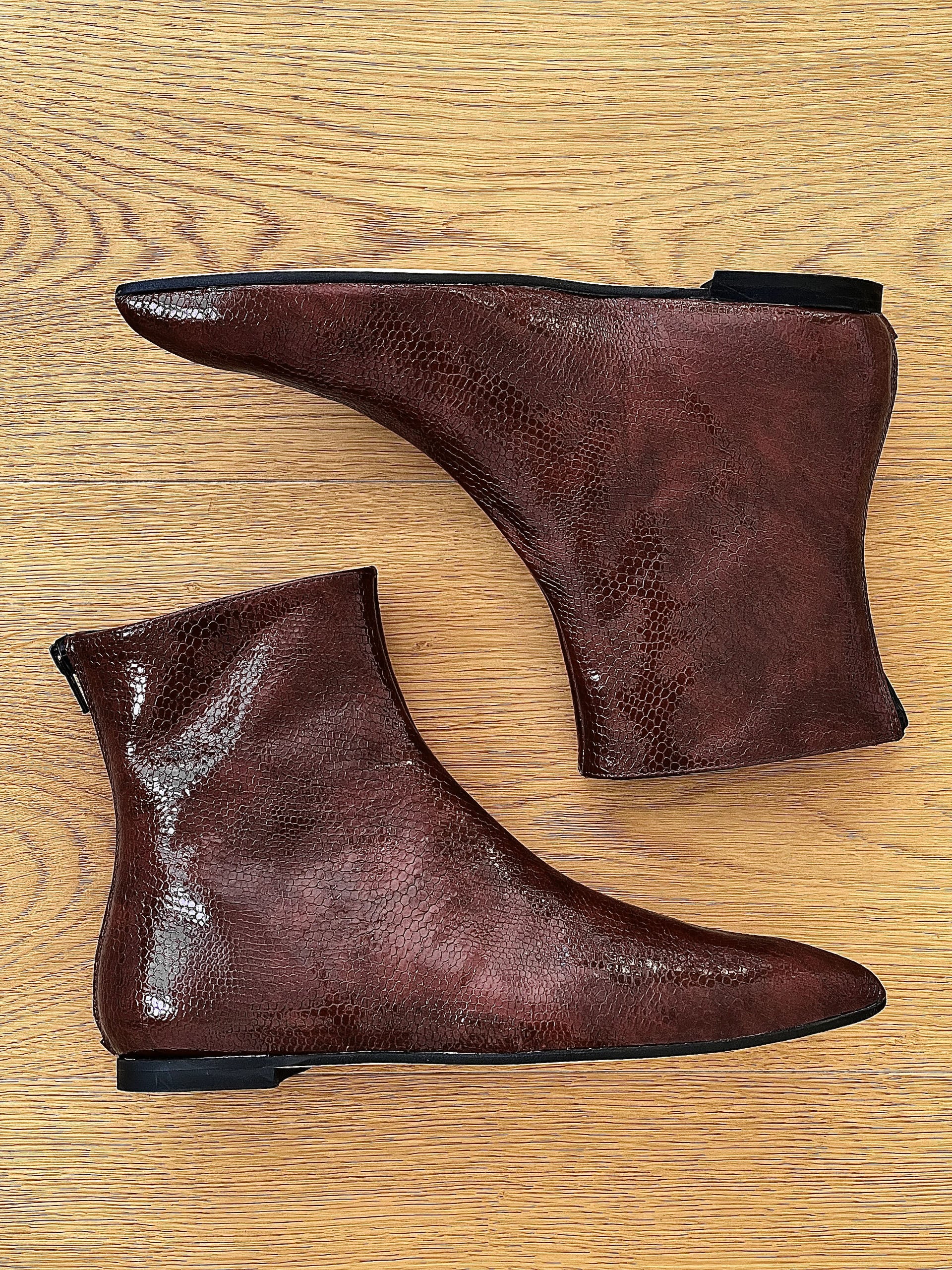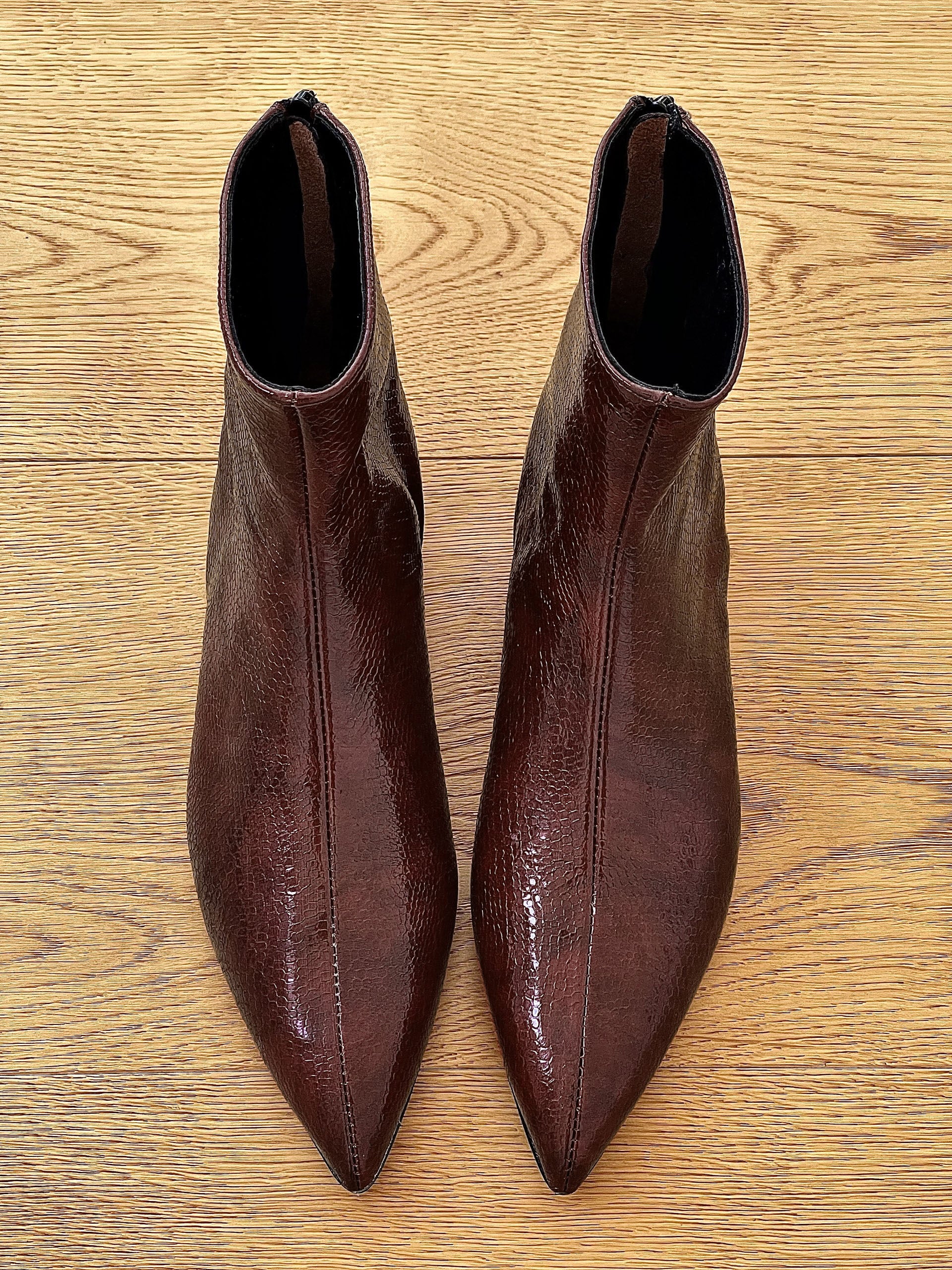 Animalier lakleren lage laarzen.