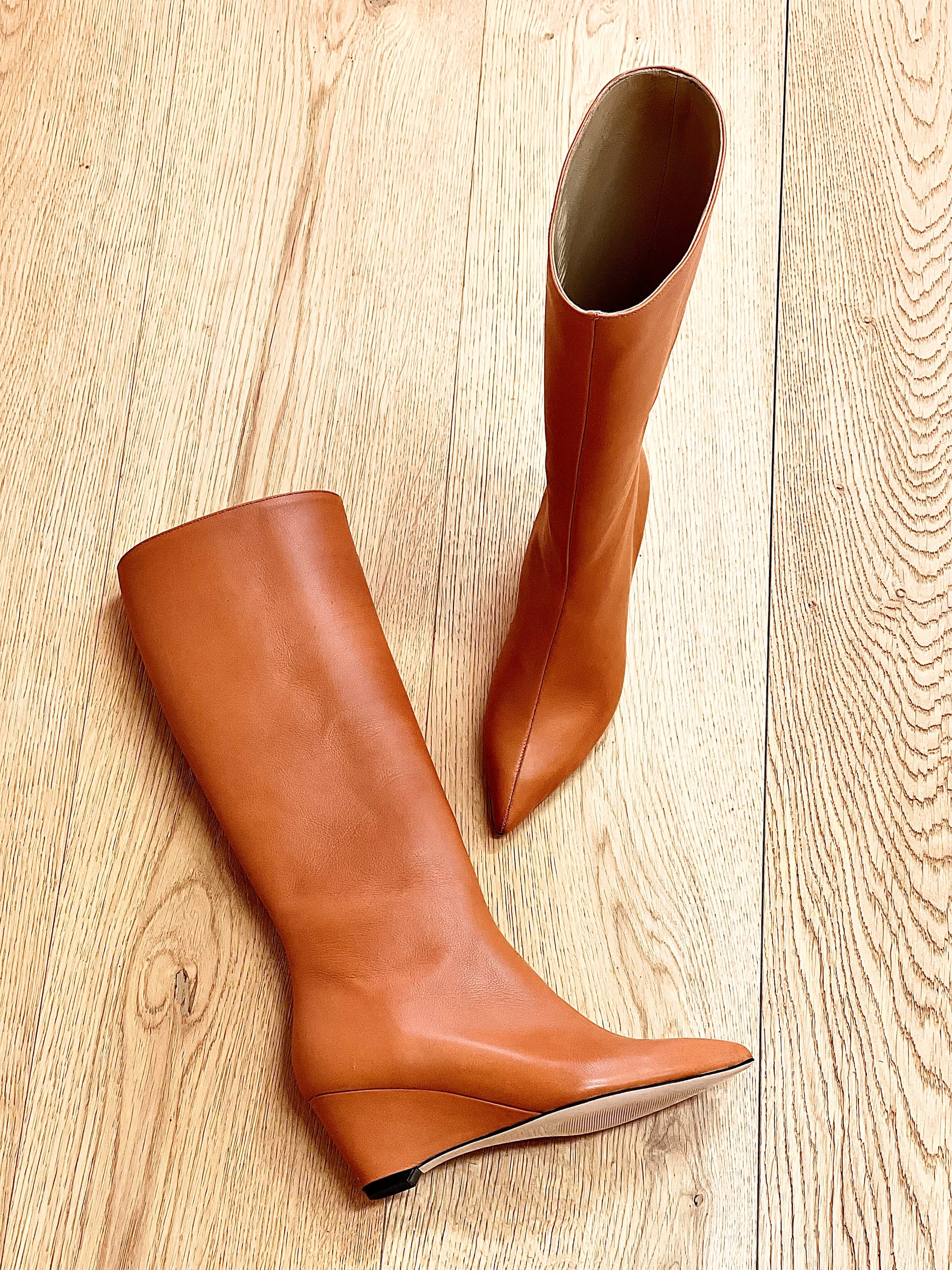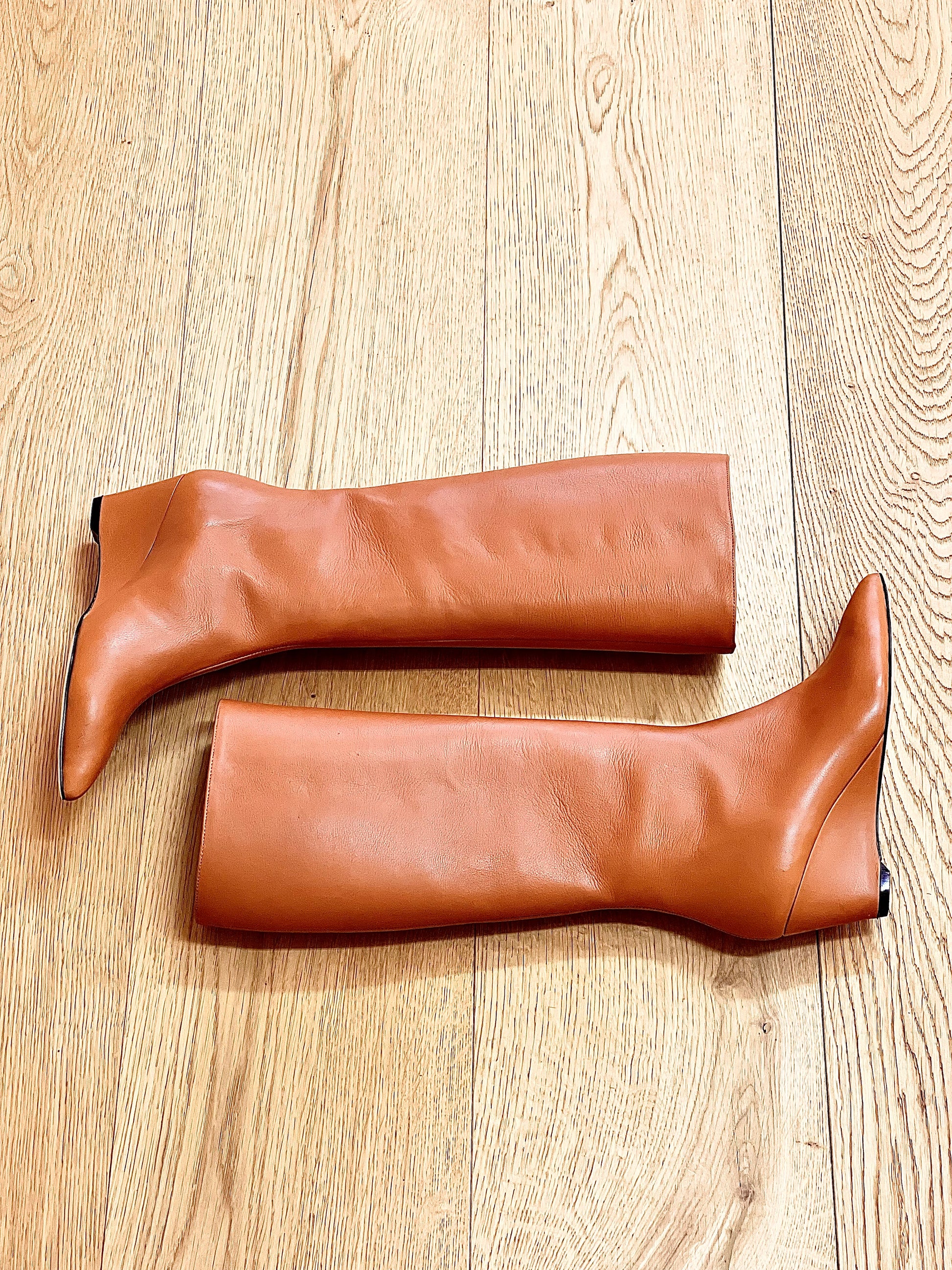 Buisvormige leren laarzen met sleehak aan de achterkant van 6 cm.