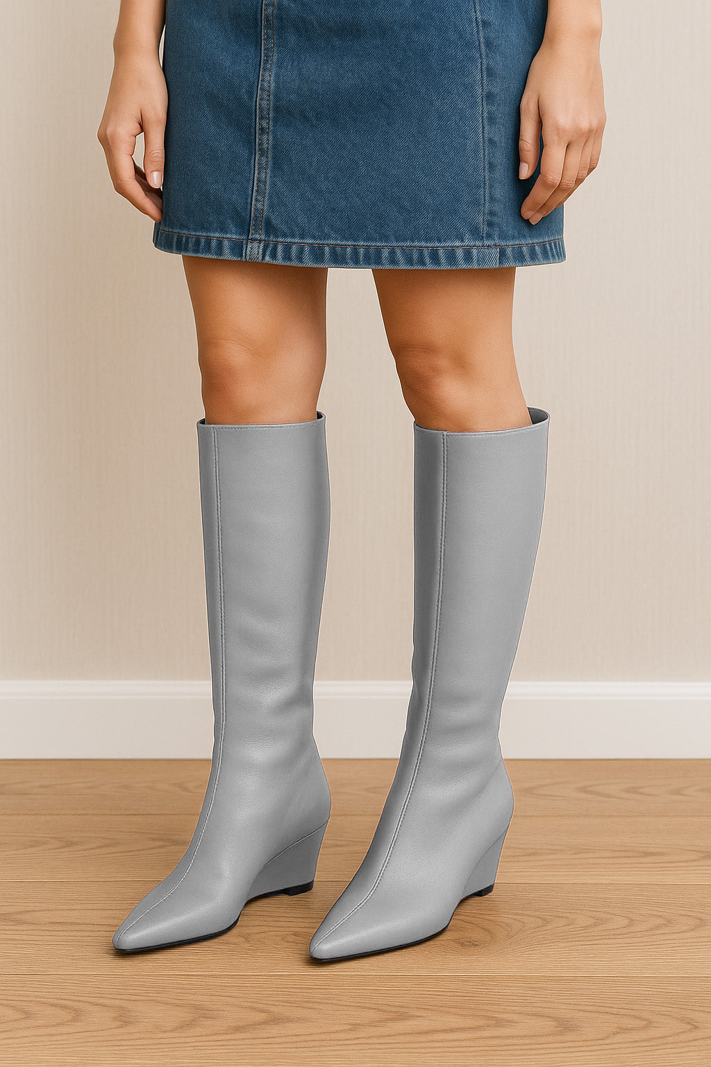 Tubular laarzen met sleehak.