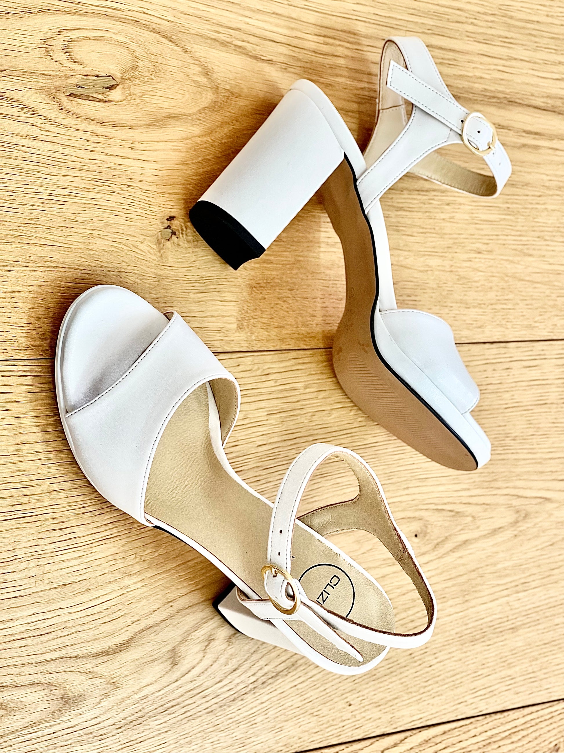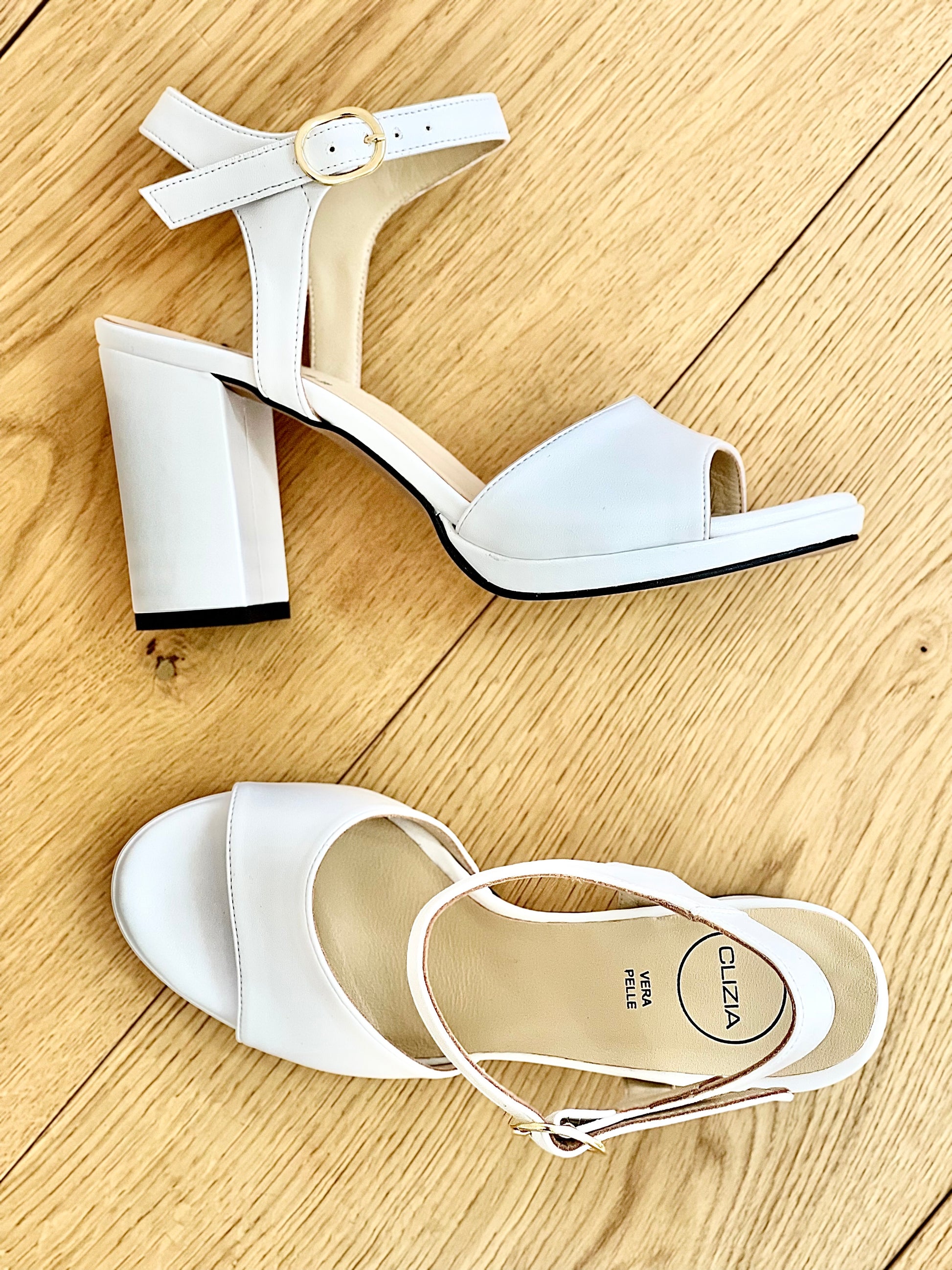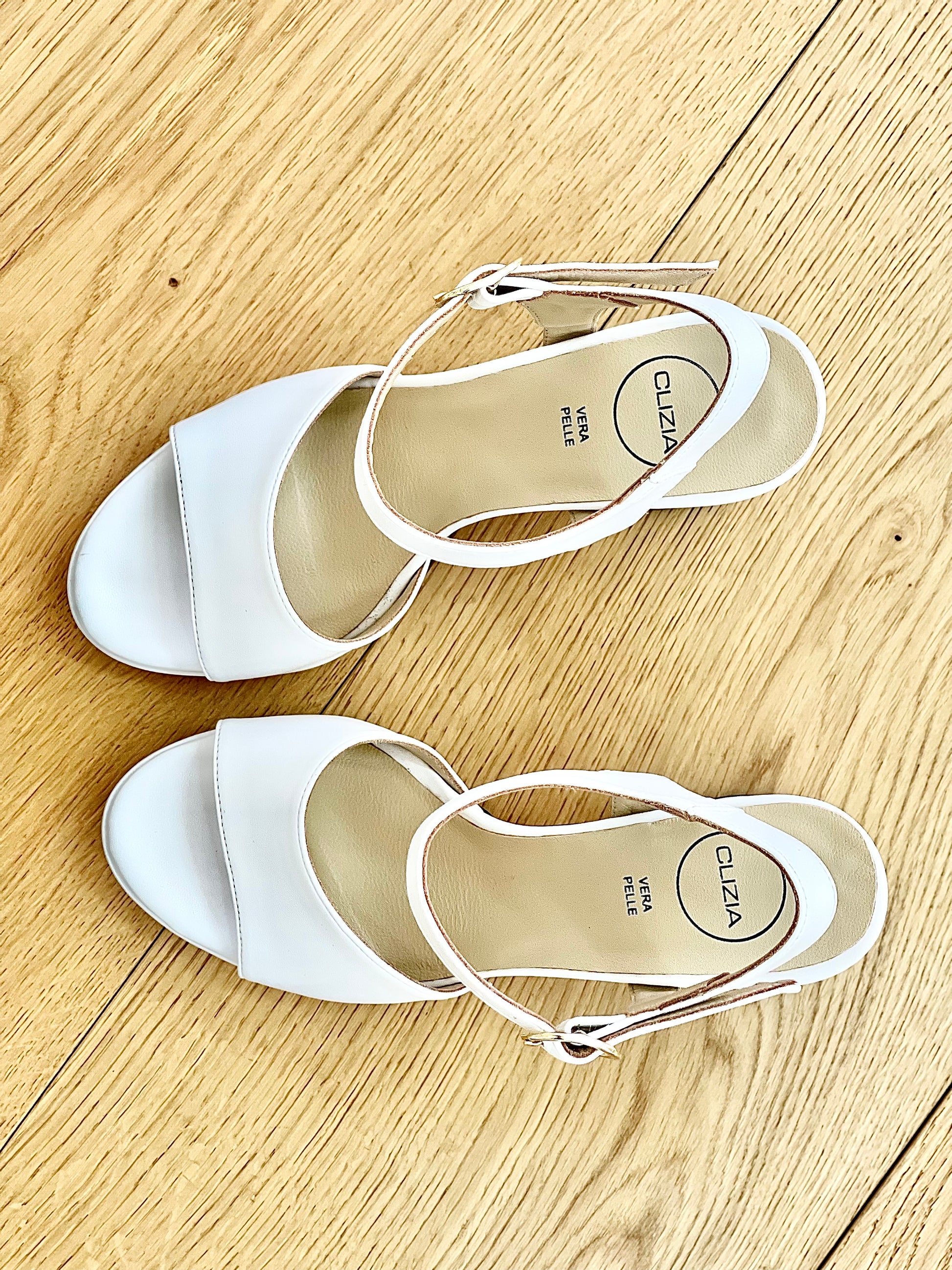 Sandalen band en riem 9 cm hoge hak en 1 cm plateau.