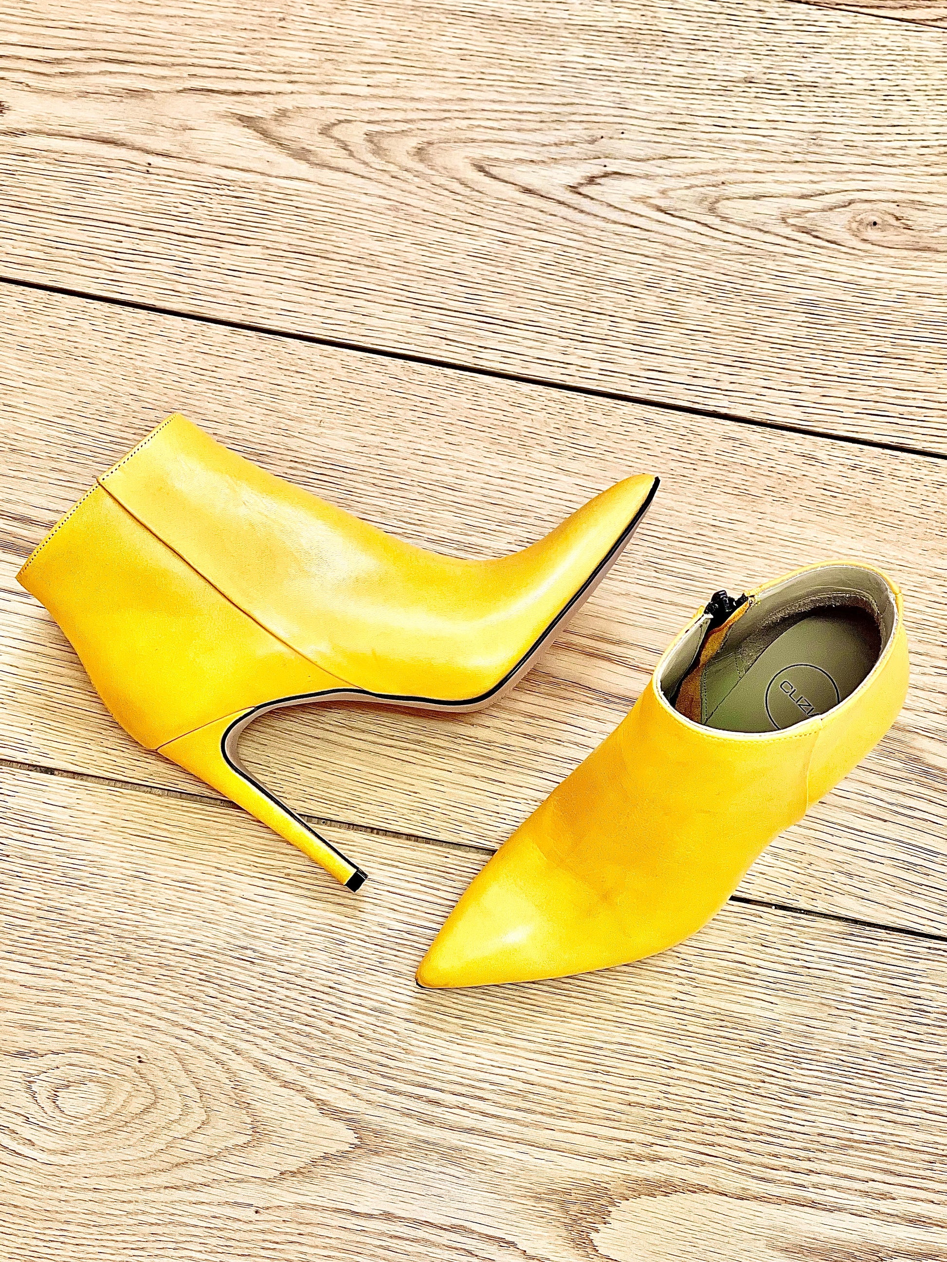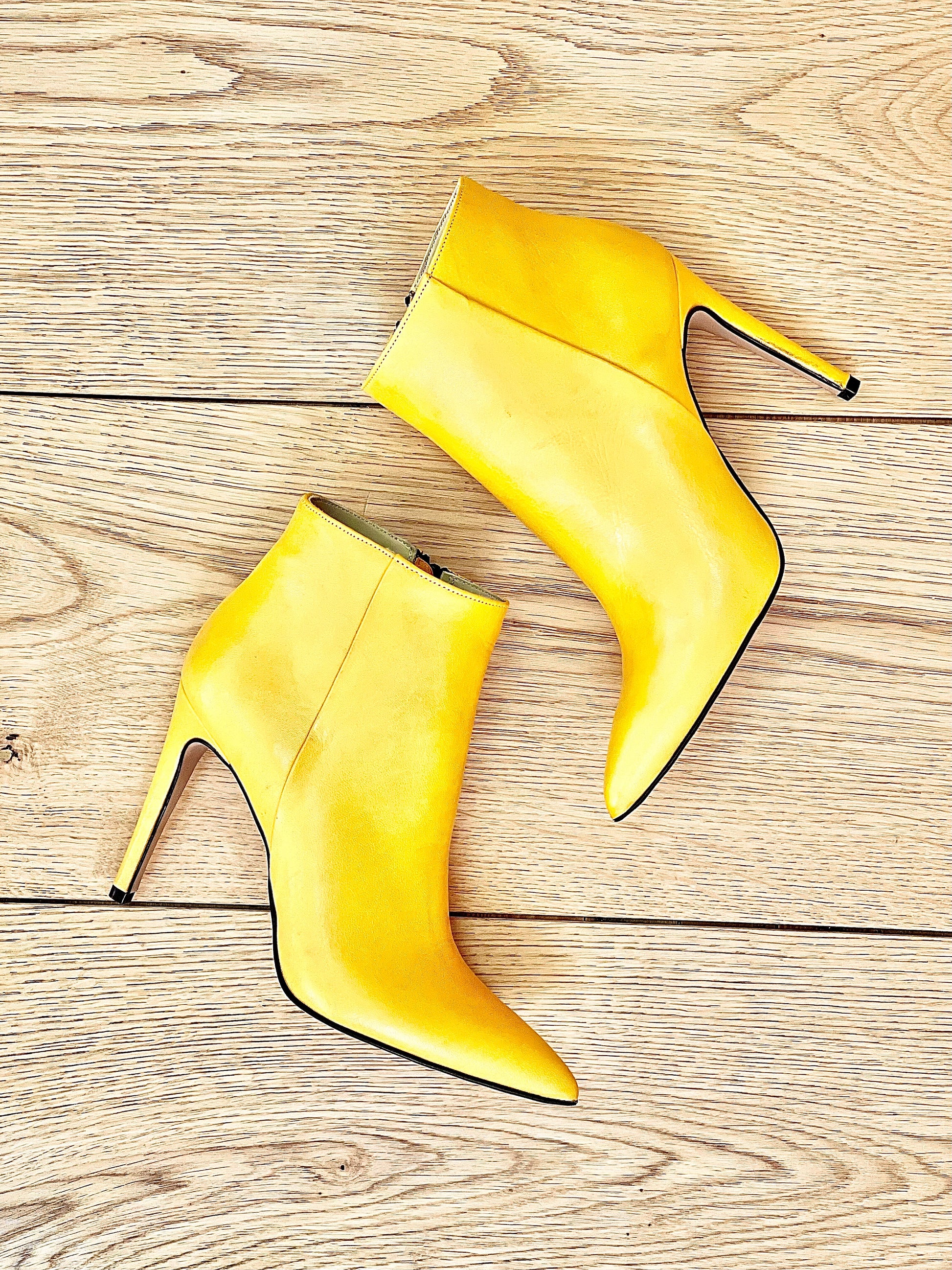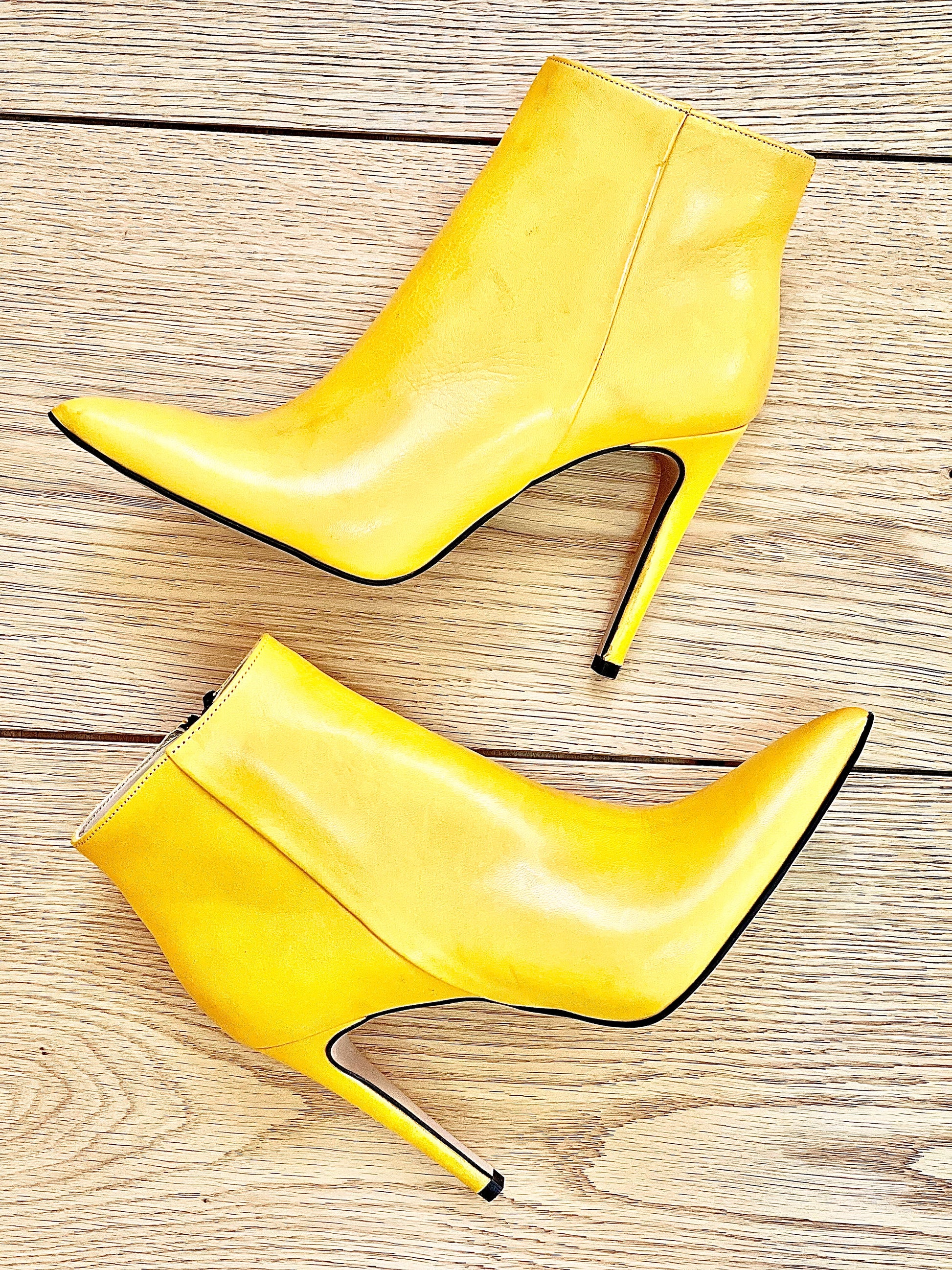 Leren enkellaarsjes met spitse teen en hak van 10 cm.