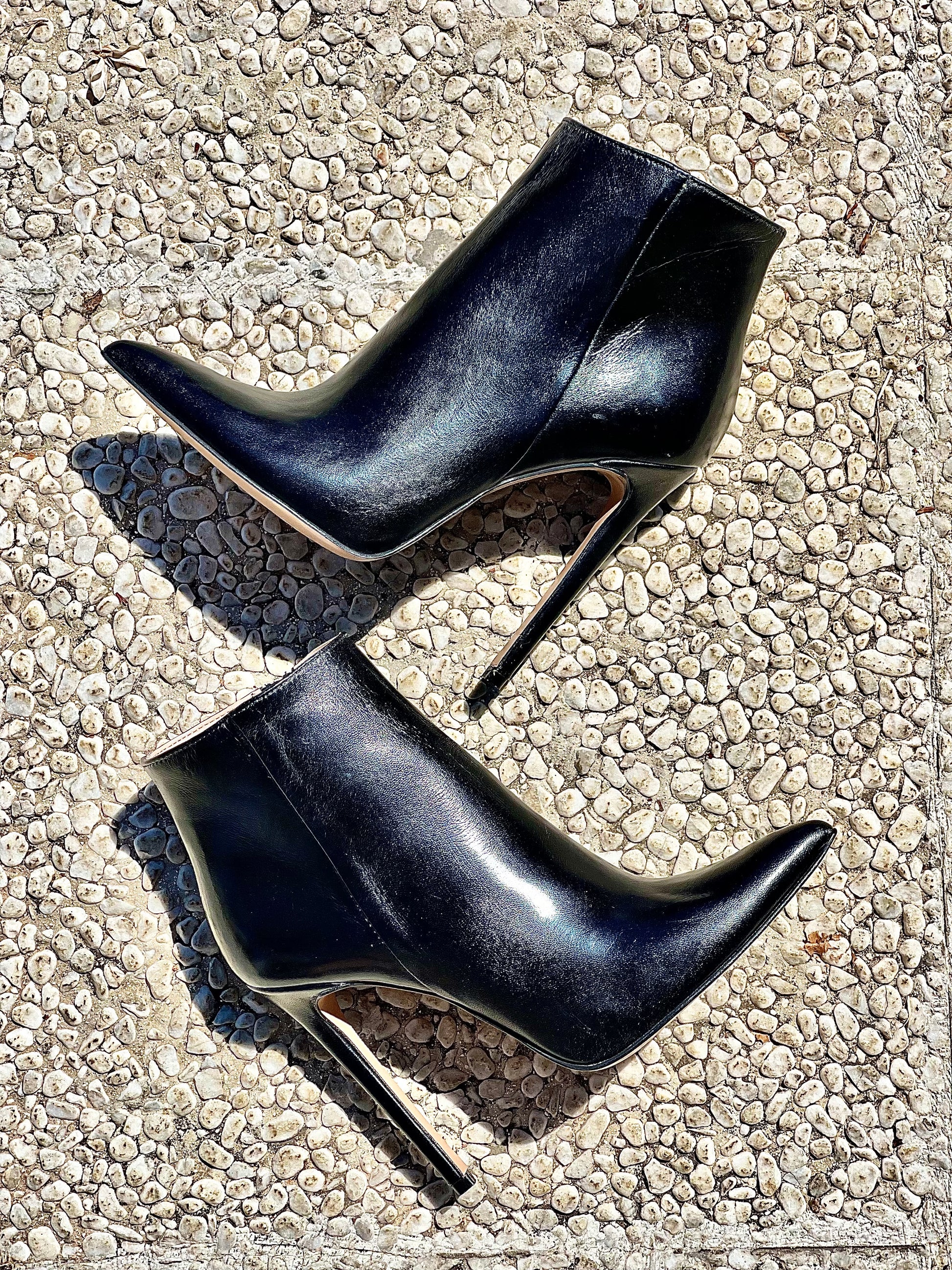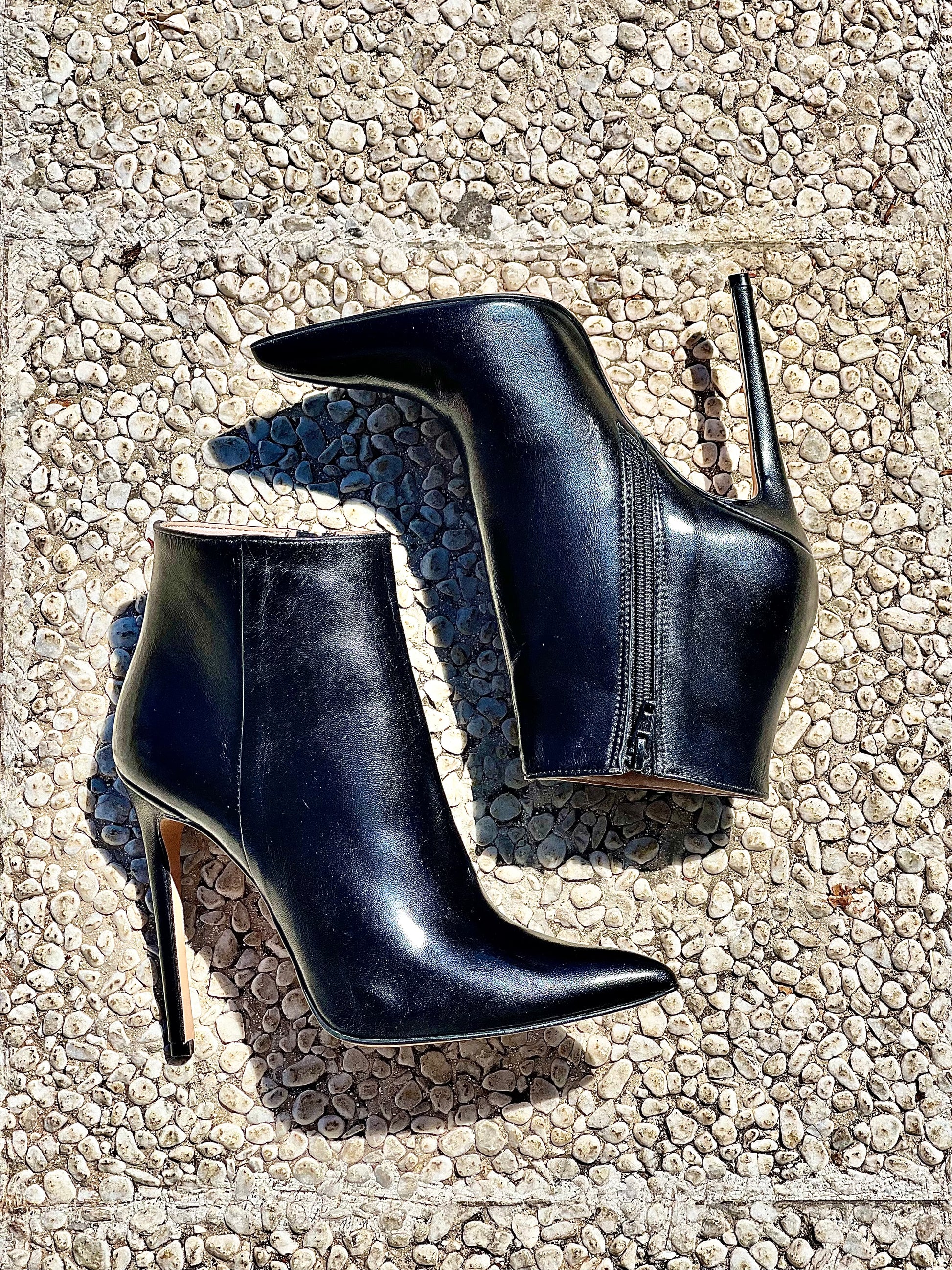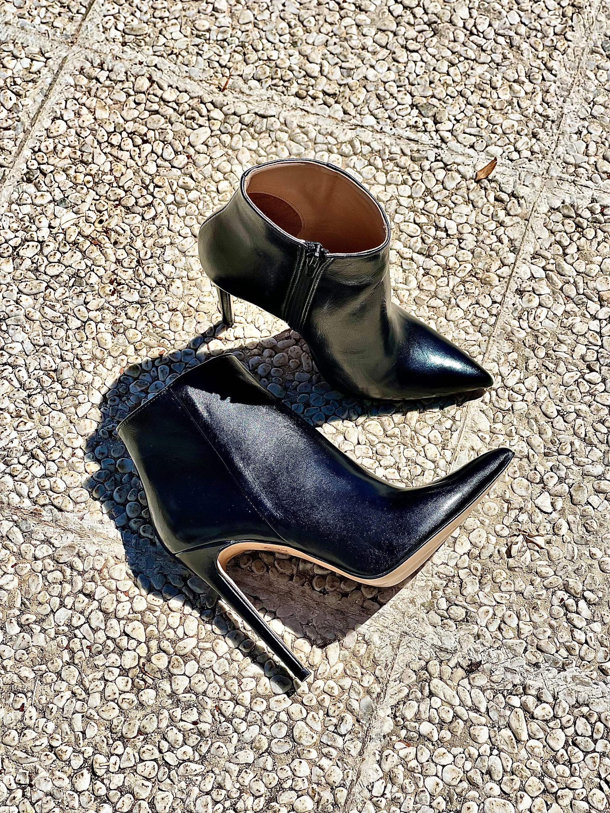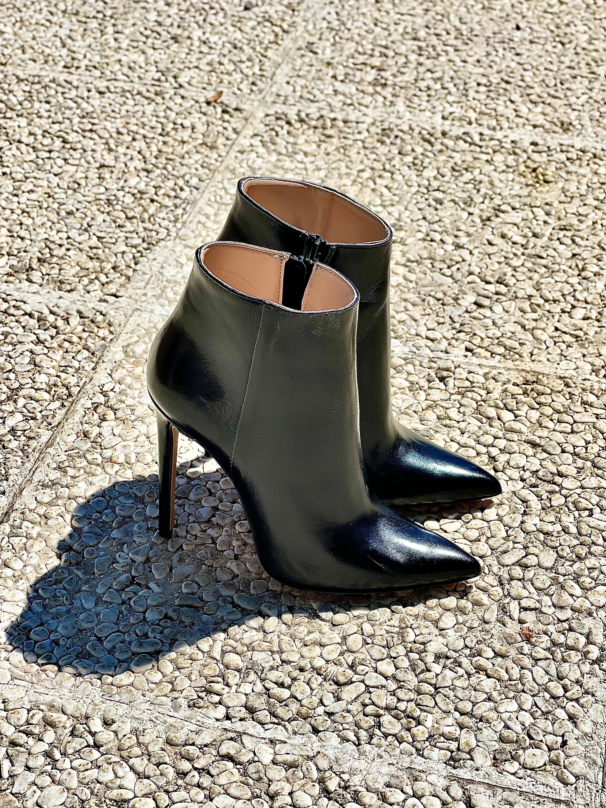 Leren enkellaarsjes met spitse teen en hak van 10 cm.