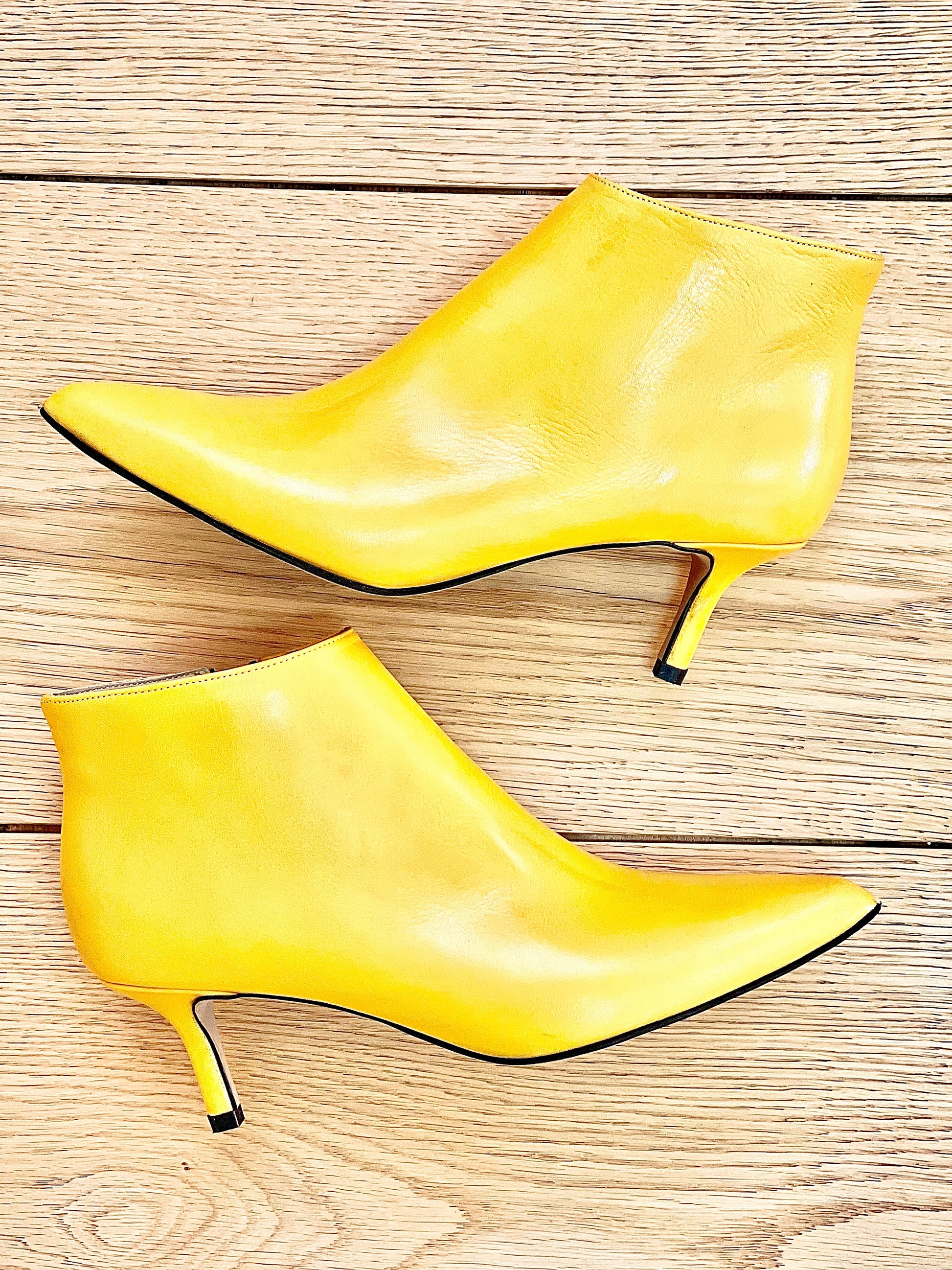 Enkellaarsjes met platte tenen van leer met een hak van 6 cm.