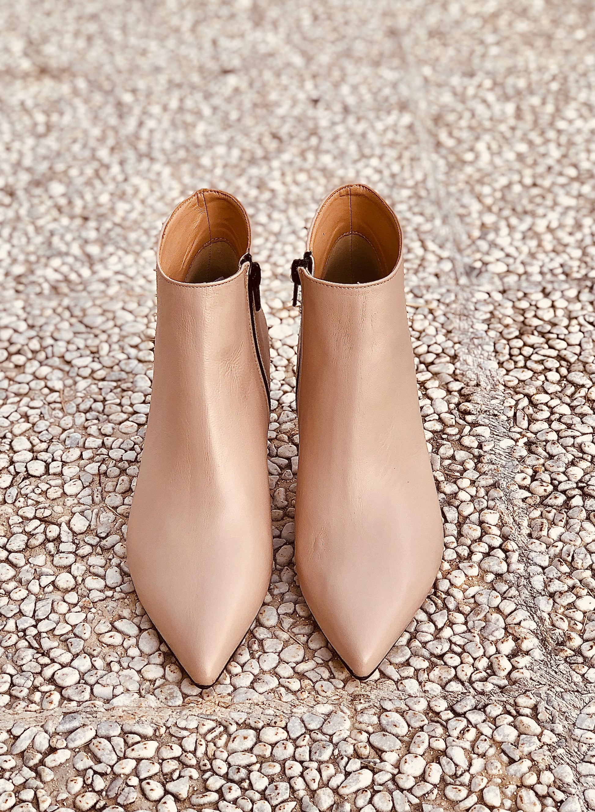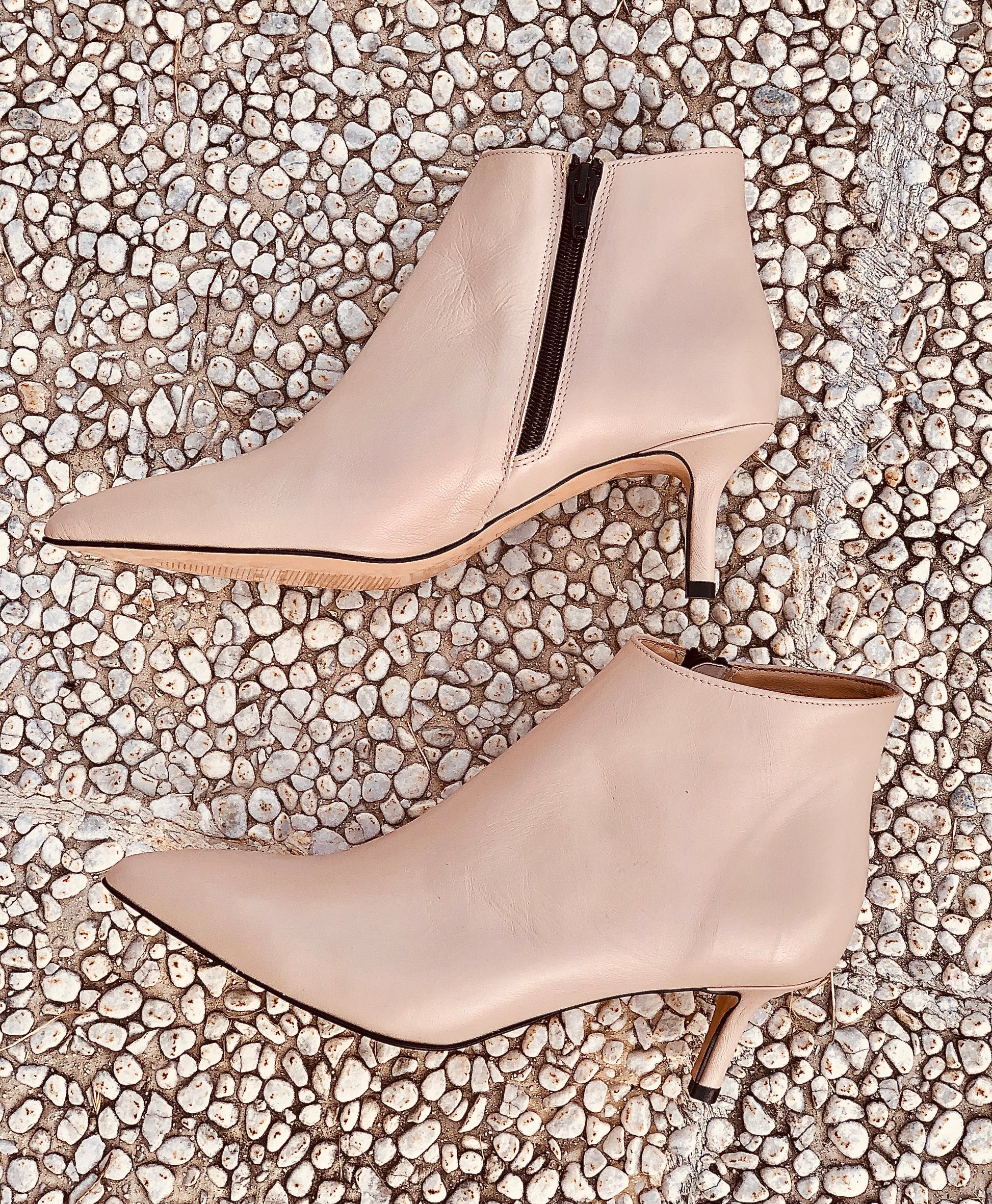 Leren enkellaarsje met spitse teen en hak van 6 cm.