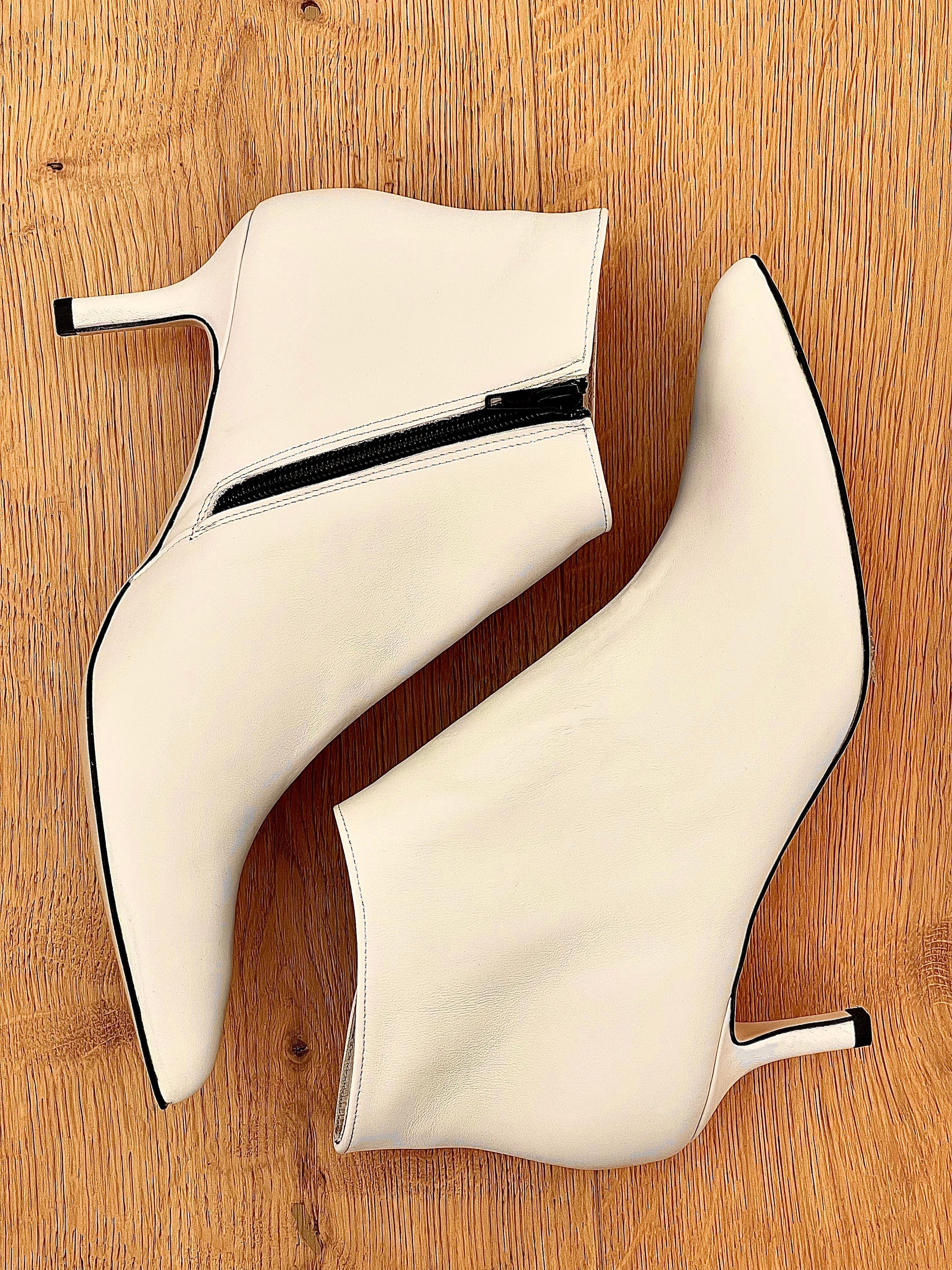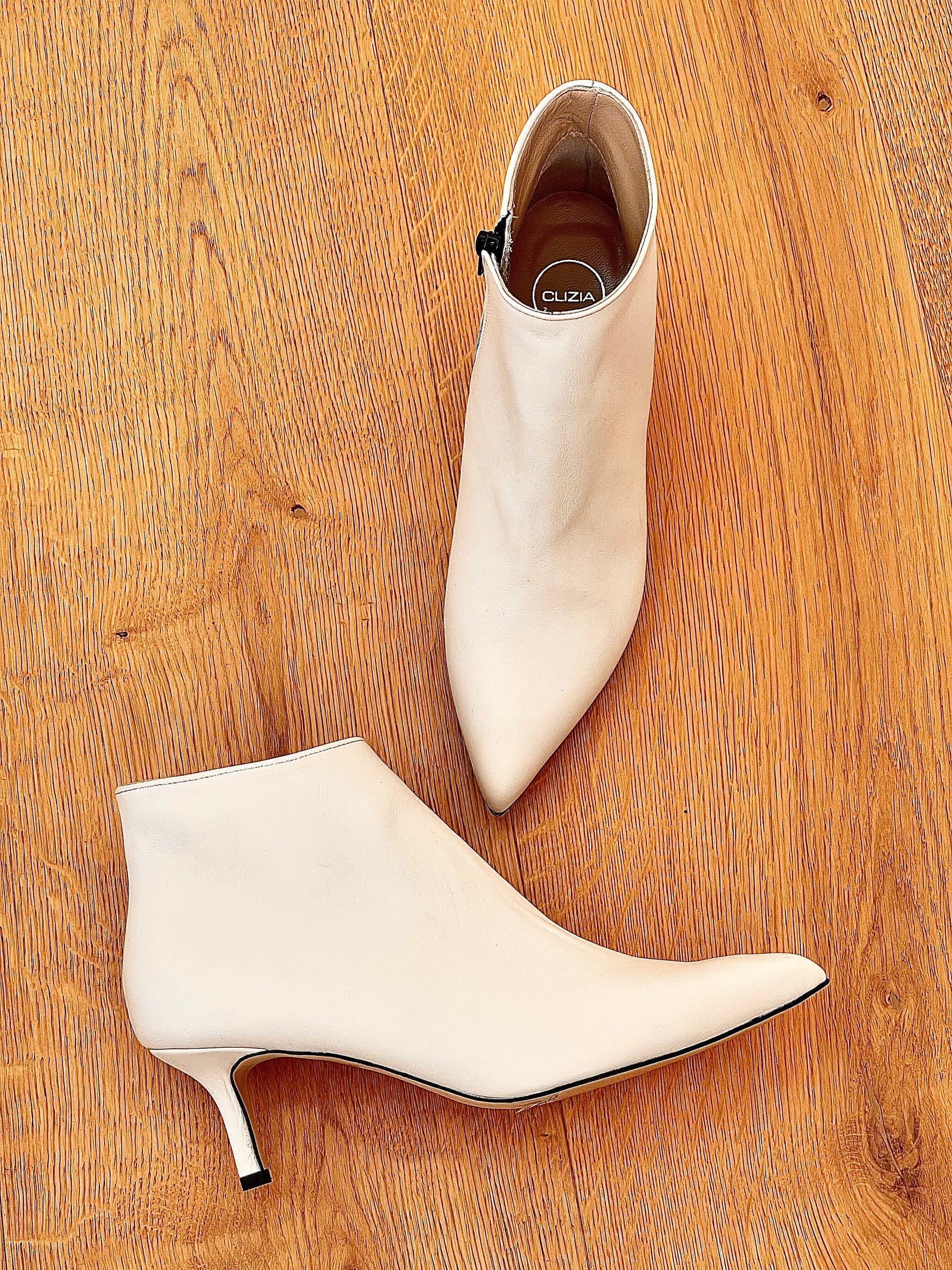 Leren enkellaarsjes met een hak van 6 cm.