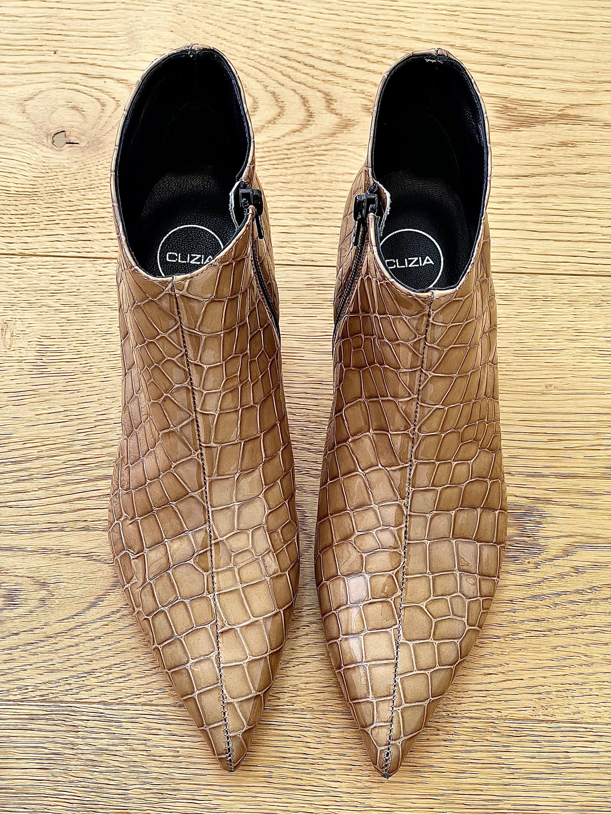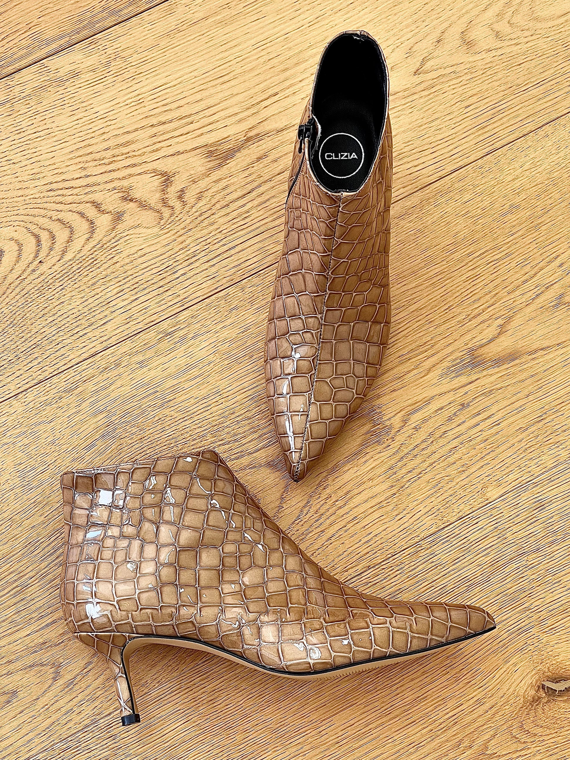 Enkellaarsjes met dierenprint, hak van 6 cm.