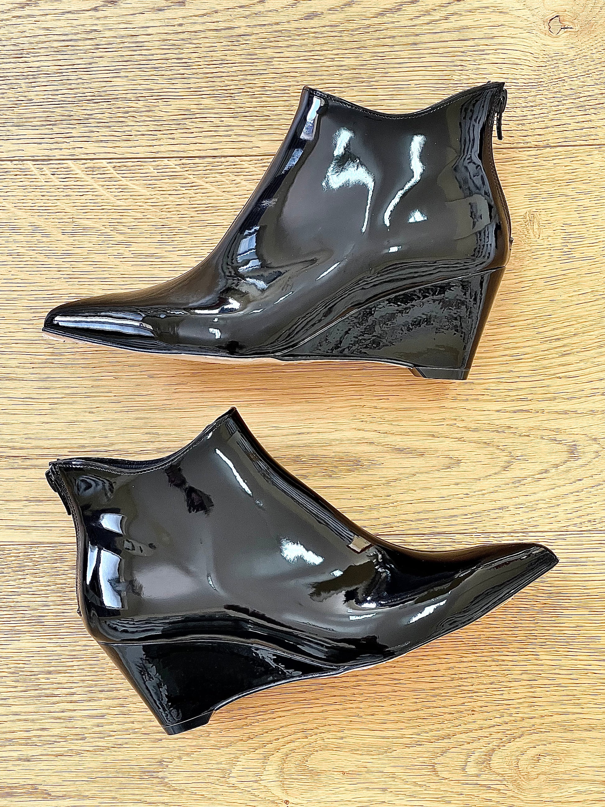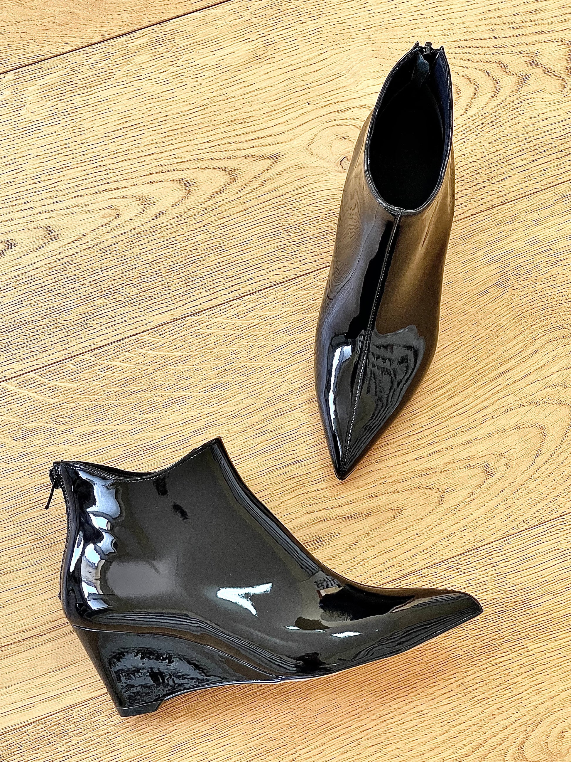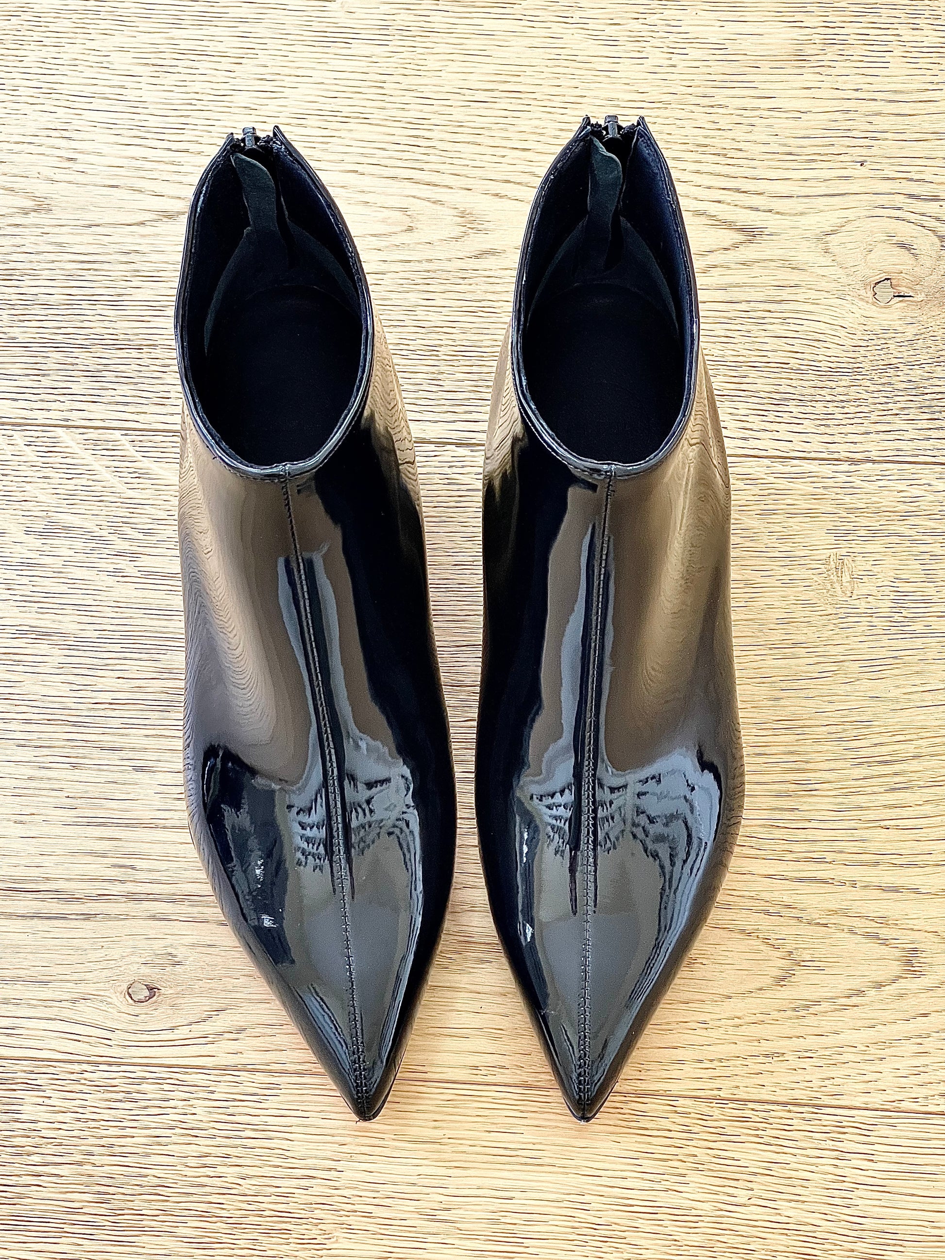 Enkellaarsjes met rits aan de achterkant en een sleehak van 6 cm aan de achterkant.