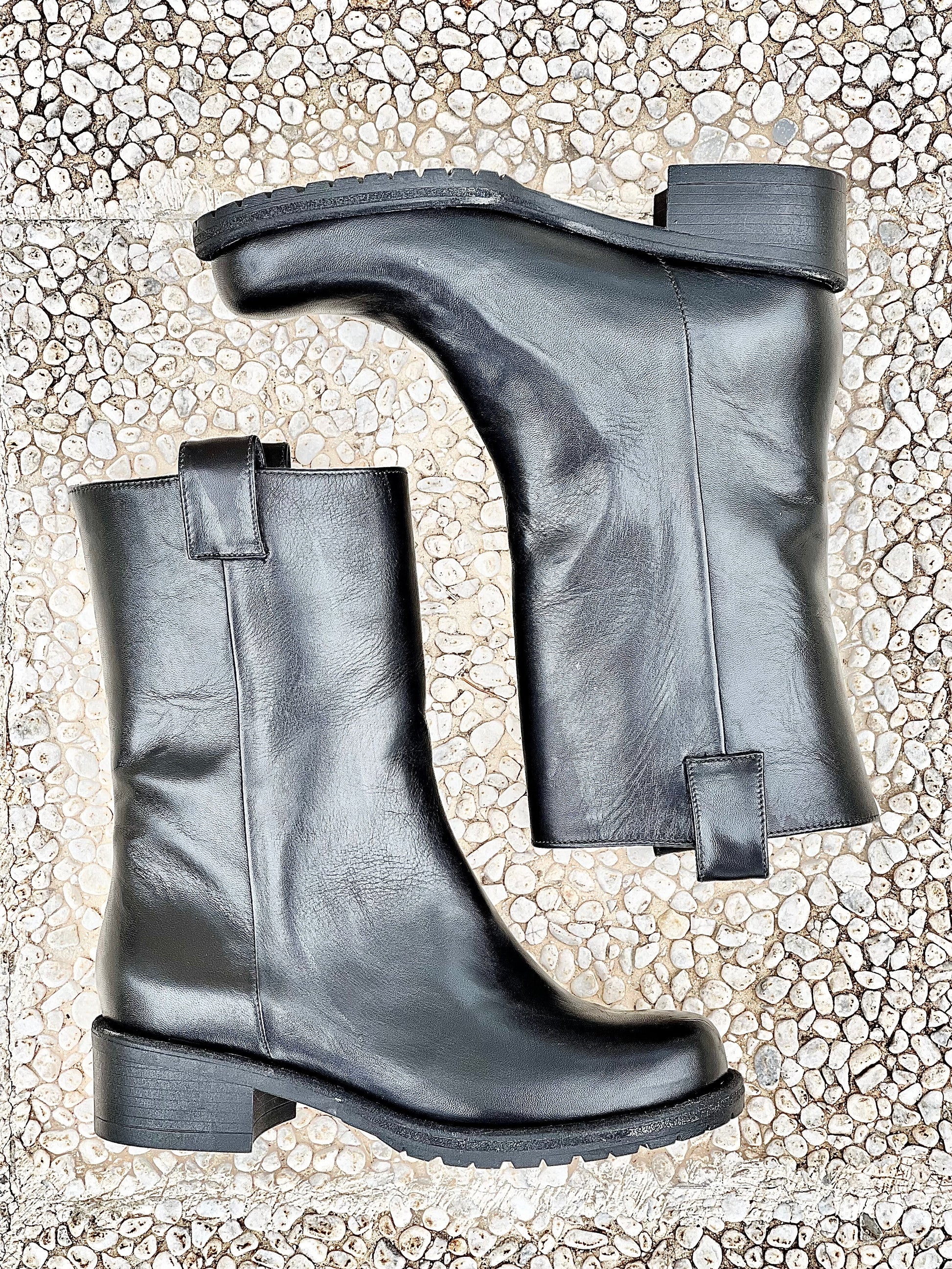 Skórzane buty za kostkę z gumowym spodem i 3-centymetrowym obcasem.