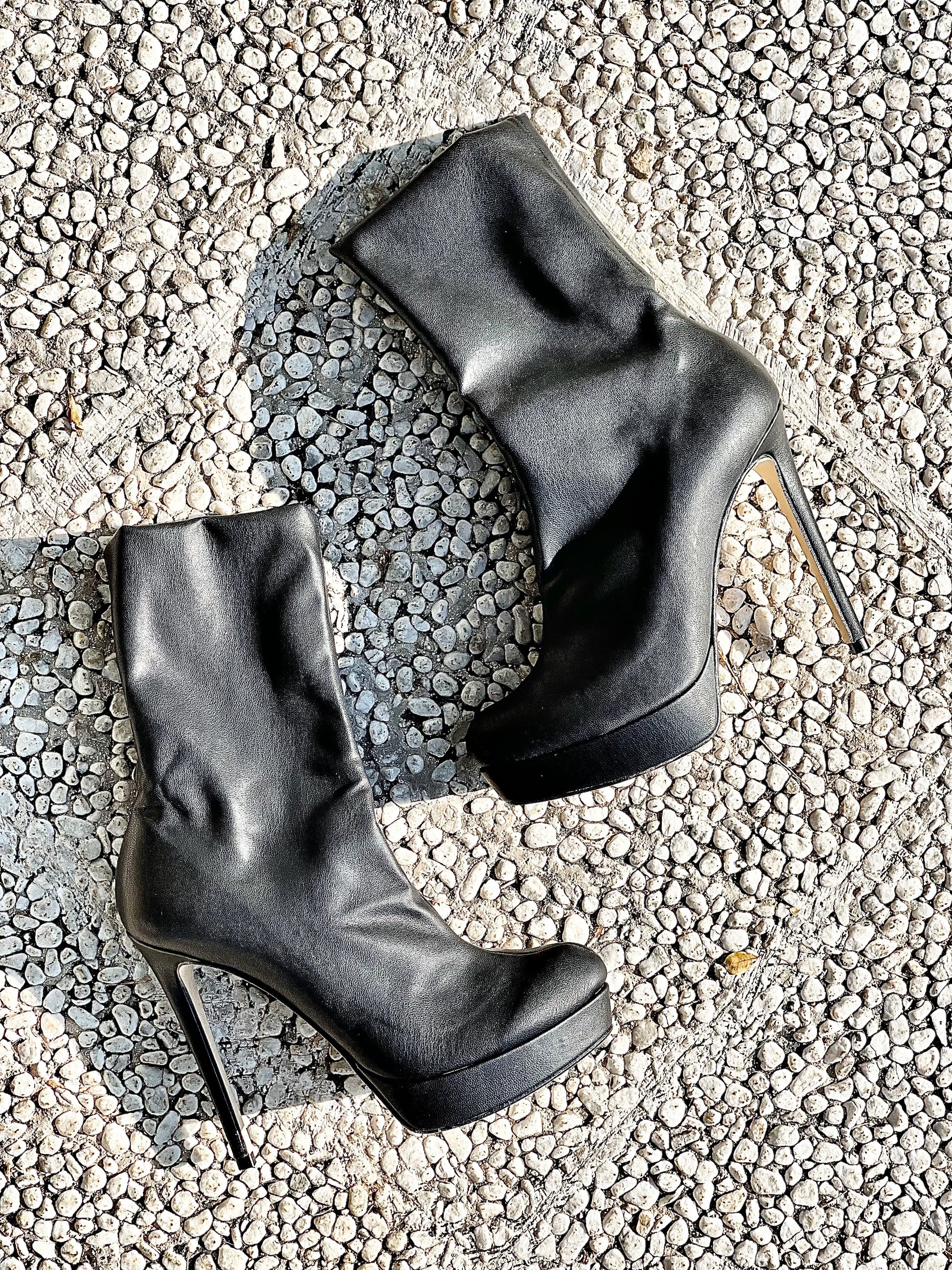 Elastyczne buty za kostkę z 2 cm platformą i 12 cm obcasem.