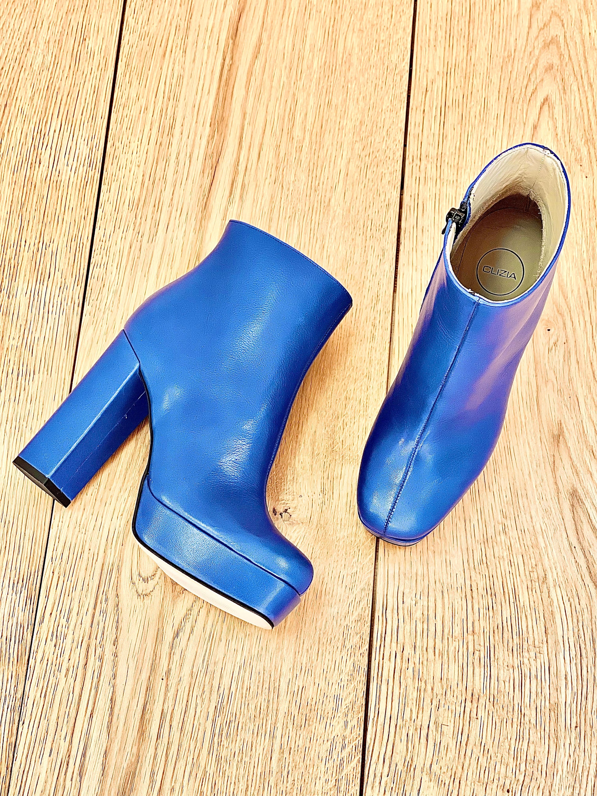 Skórzane buty za kostkę z półokrągłym noskiem i 12-centymetrowym obcasem oraz 3-centymetrową platformą.