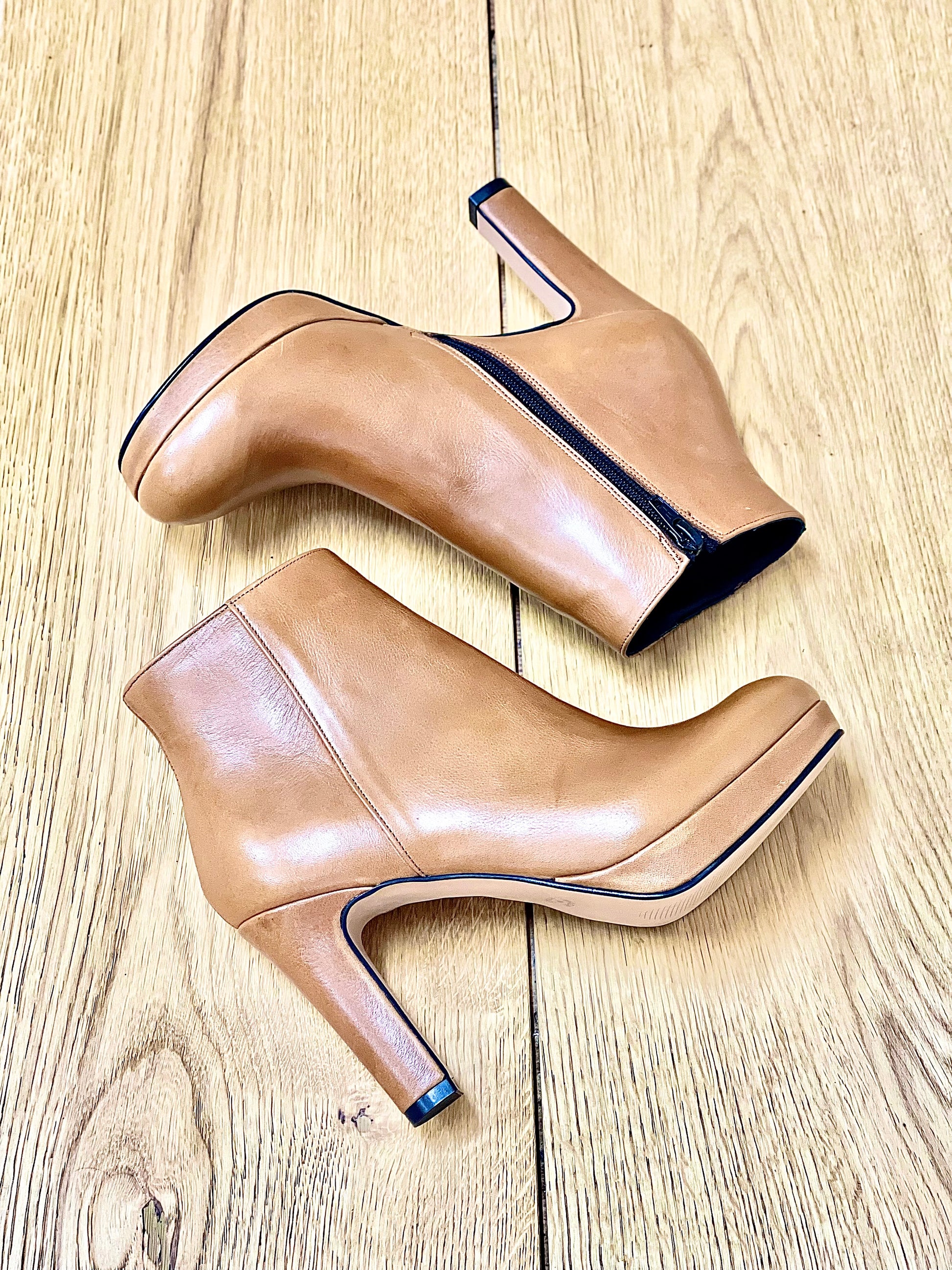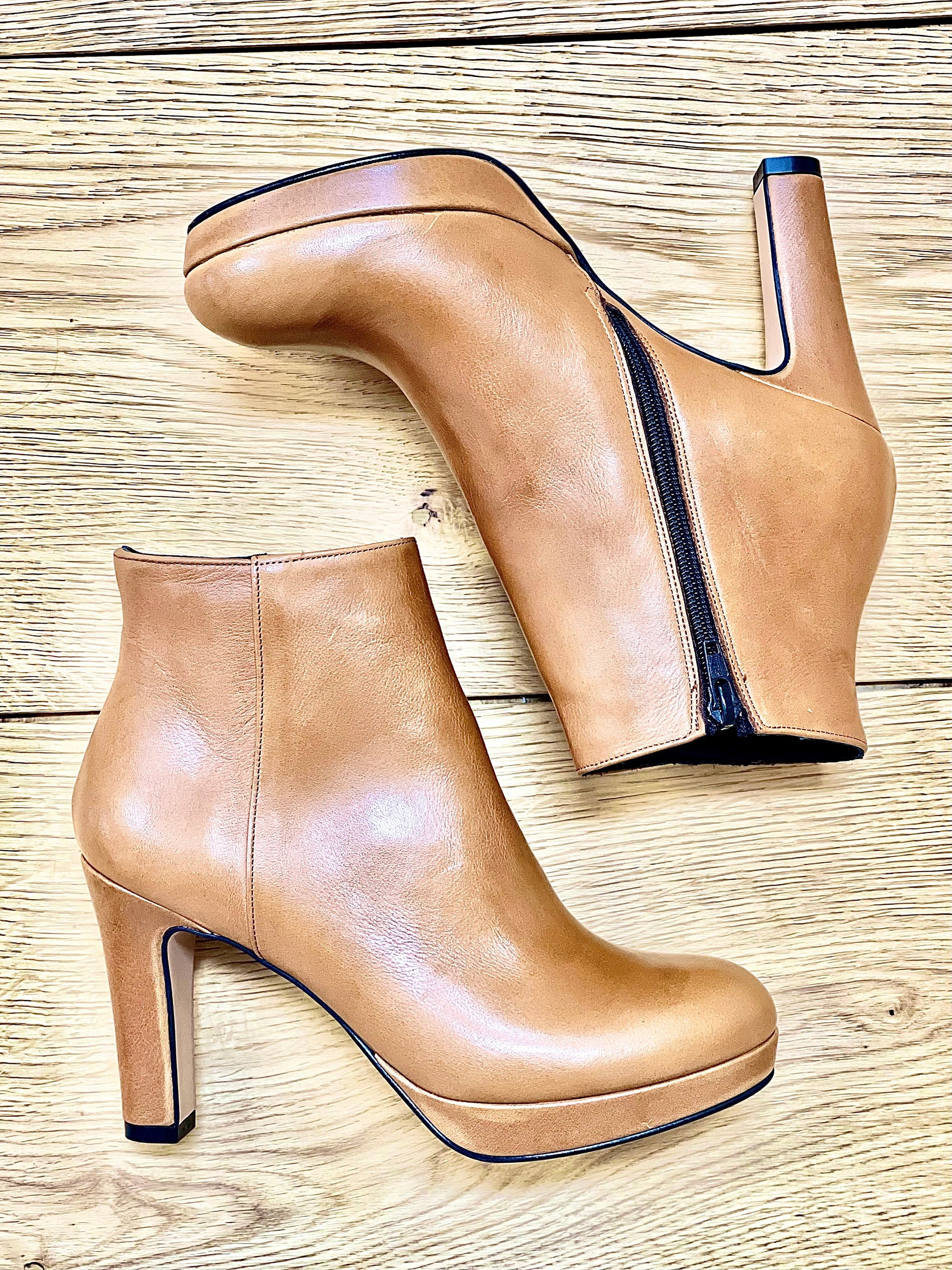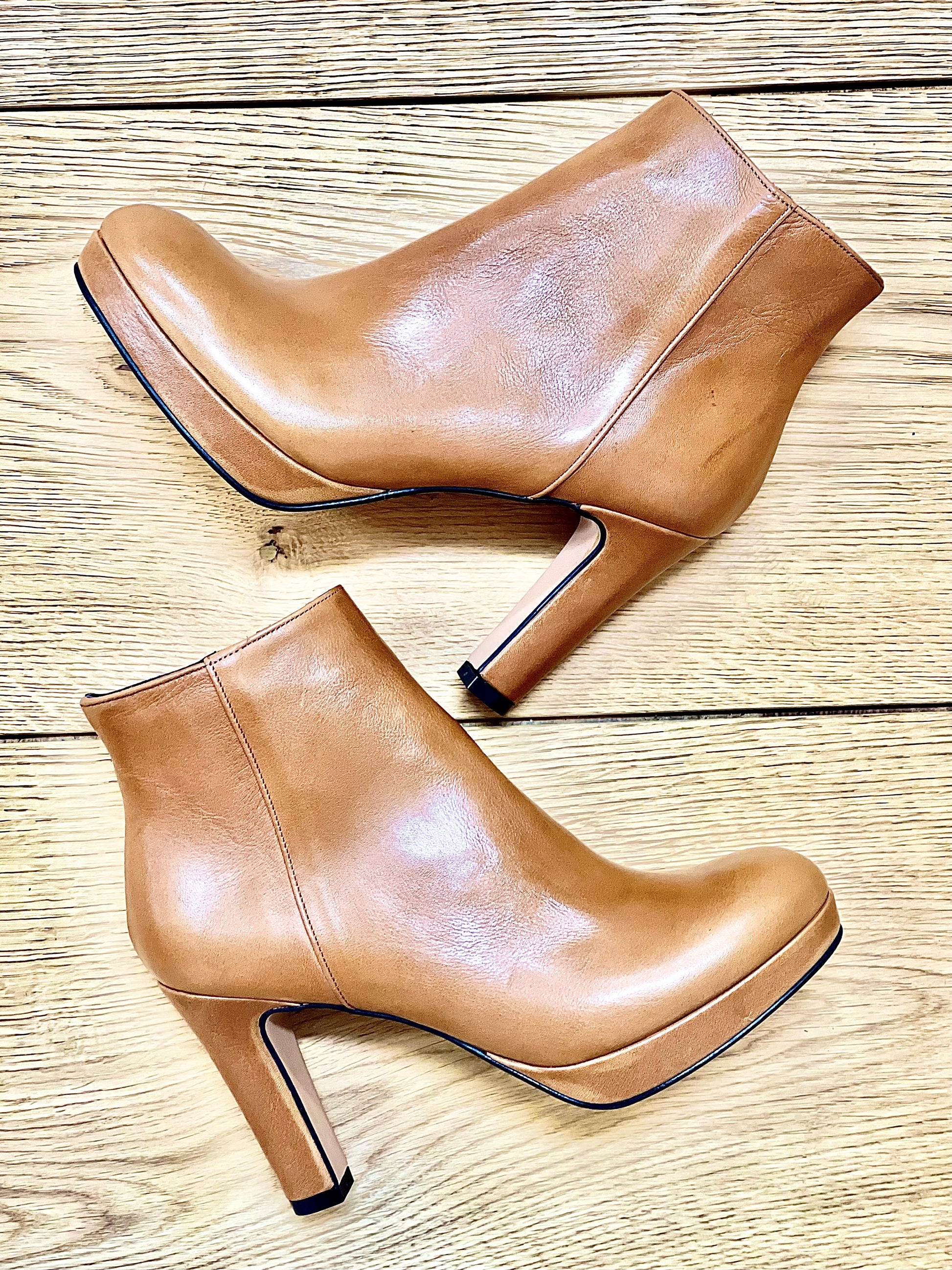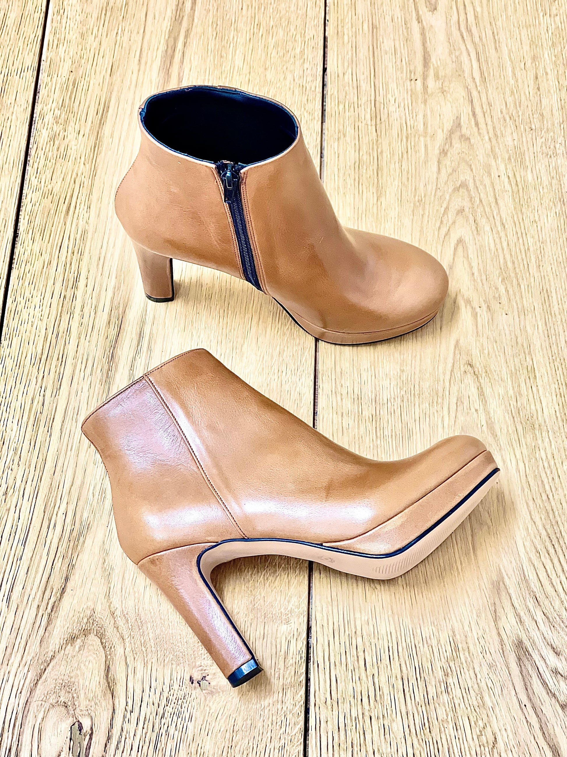 Skórzane botki z okrągłym noskiem, 9 cm obcas i 1 cm platforma.