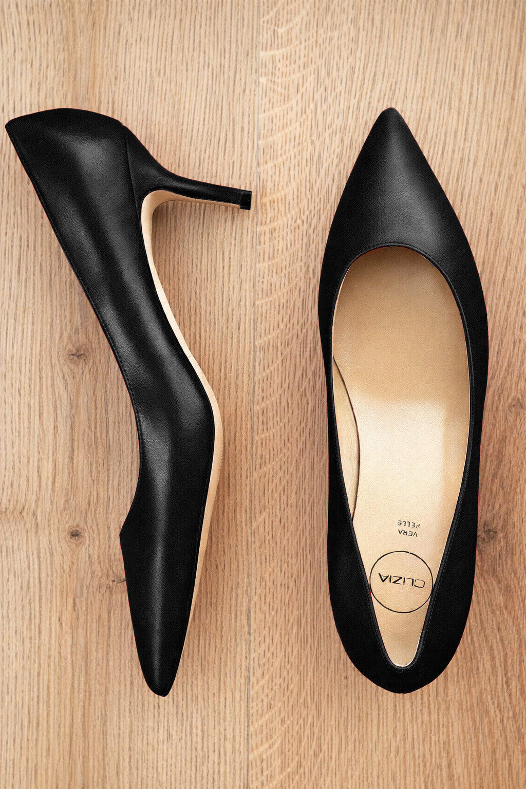 Szpilki z odkrytymi palcami i cienkim obcasem o wysokości 6 cm.