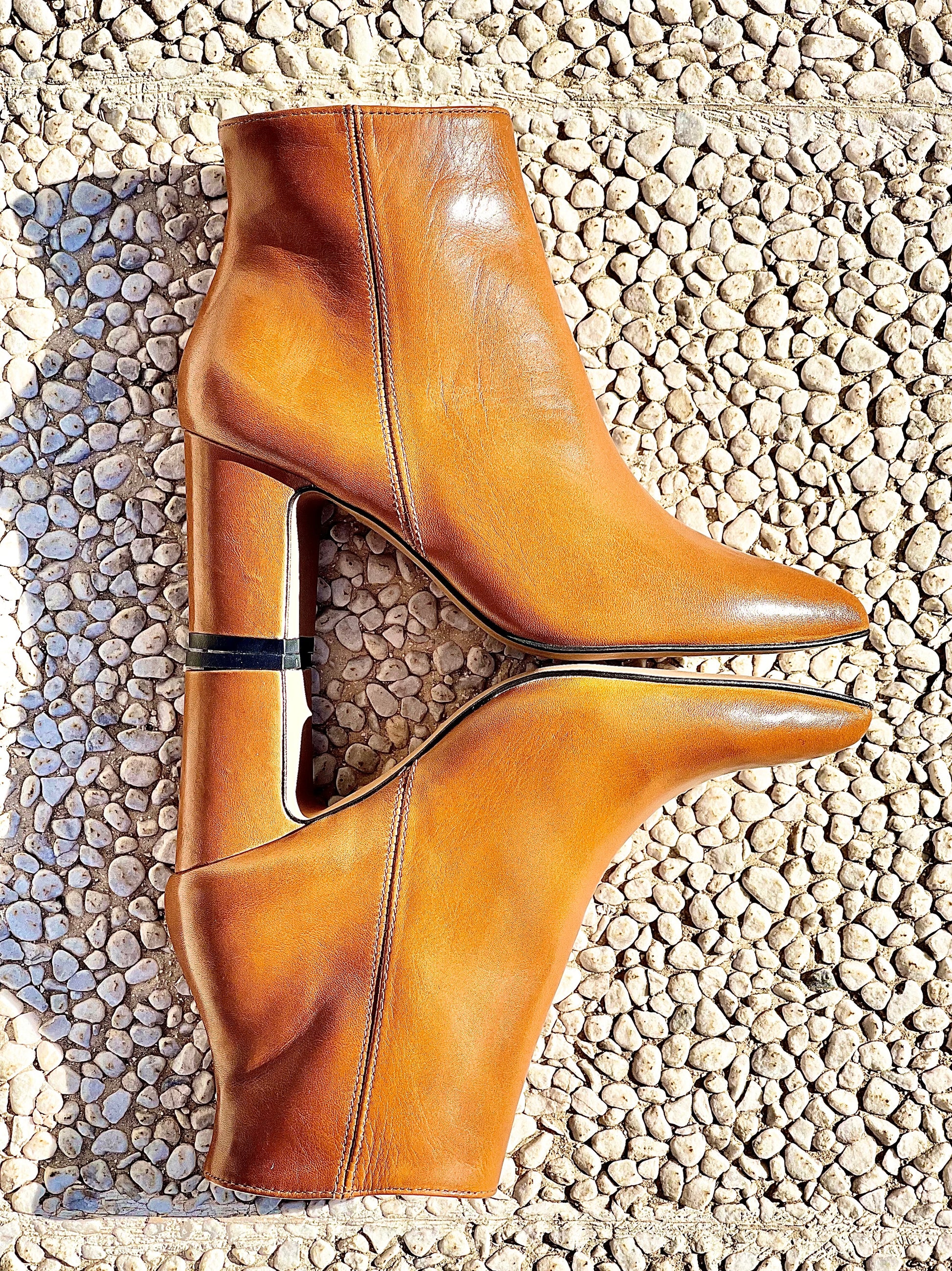 Skórzane buty za kostkę ze szpiczastym noskiem i szerokim obcasem 75 mm.