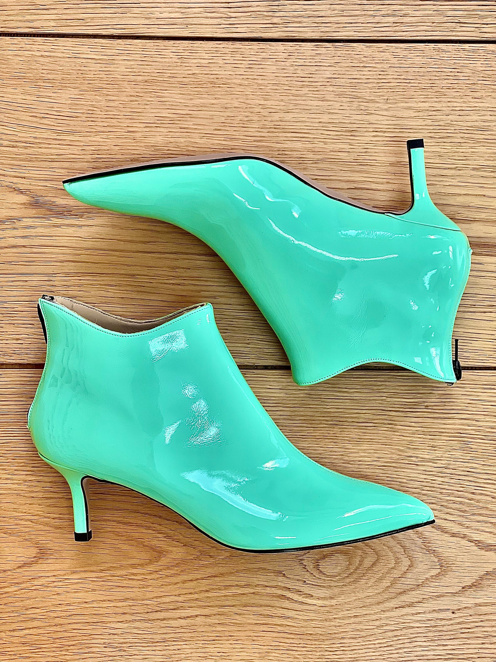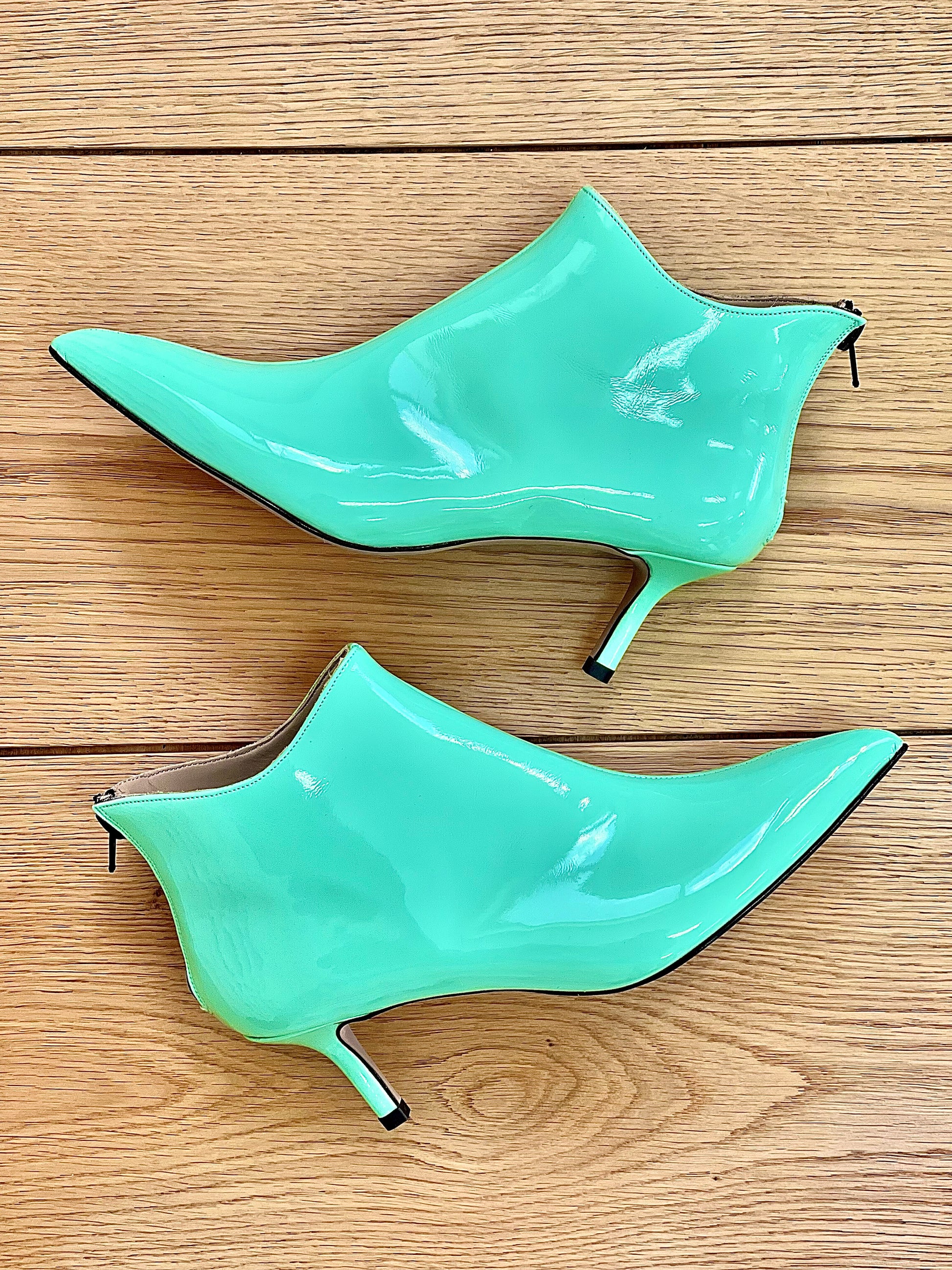 - Cholewka: lakierowana skóra w kolorze akwamaryny/miętowej zieleni
