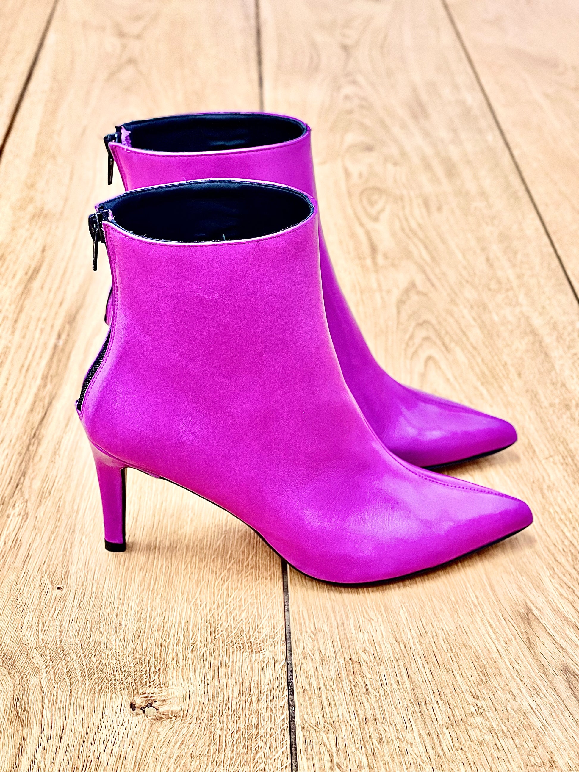 Skórzane botki na szpilce z zamkiem błyskawicznym z tyłu.