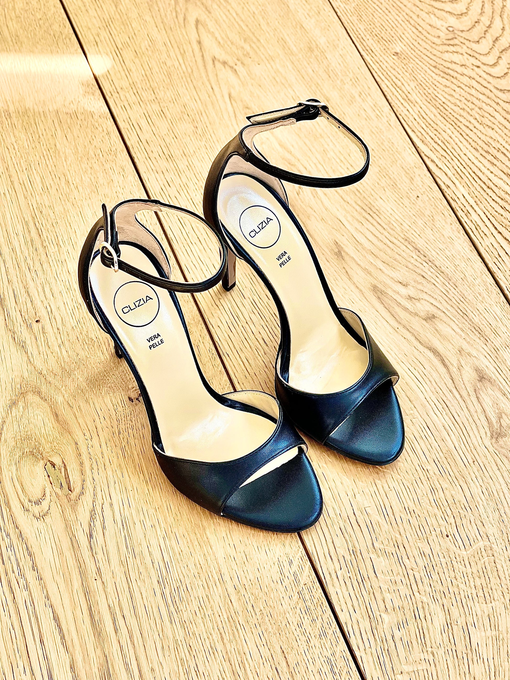 Sandały z wysokim paskiem i obcasem 10 cm.