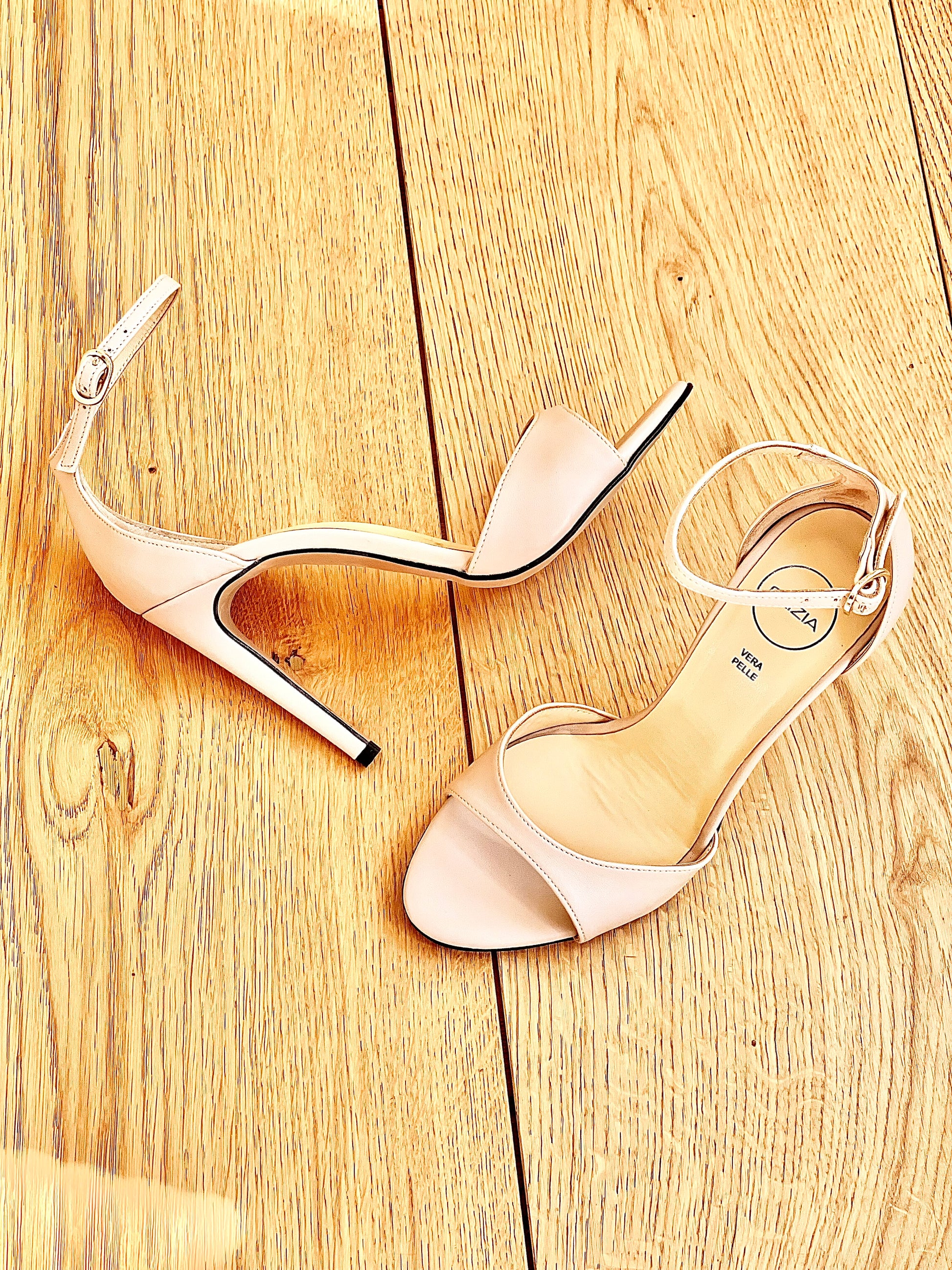 Sandały z wysokim paskiem i obcasem 10 cm.