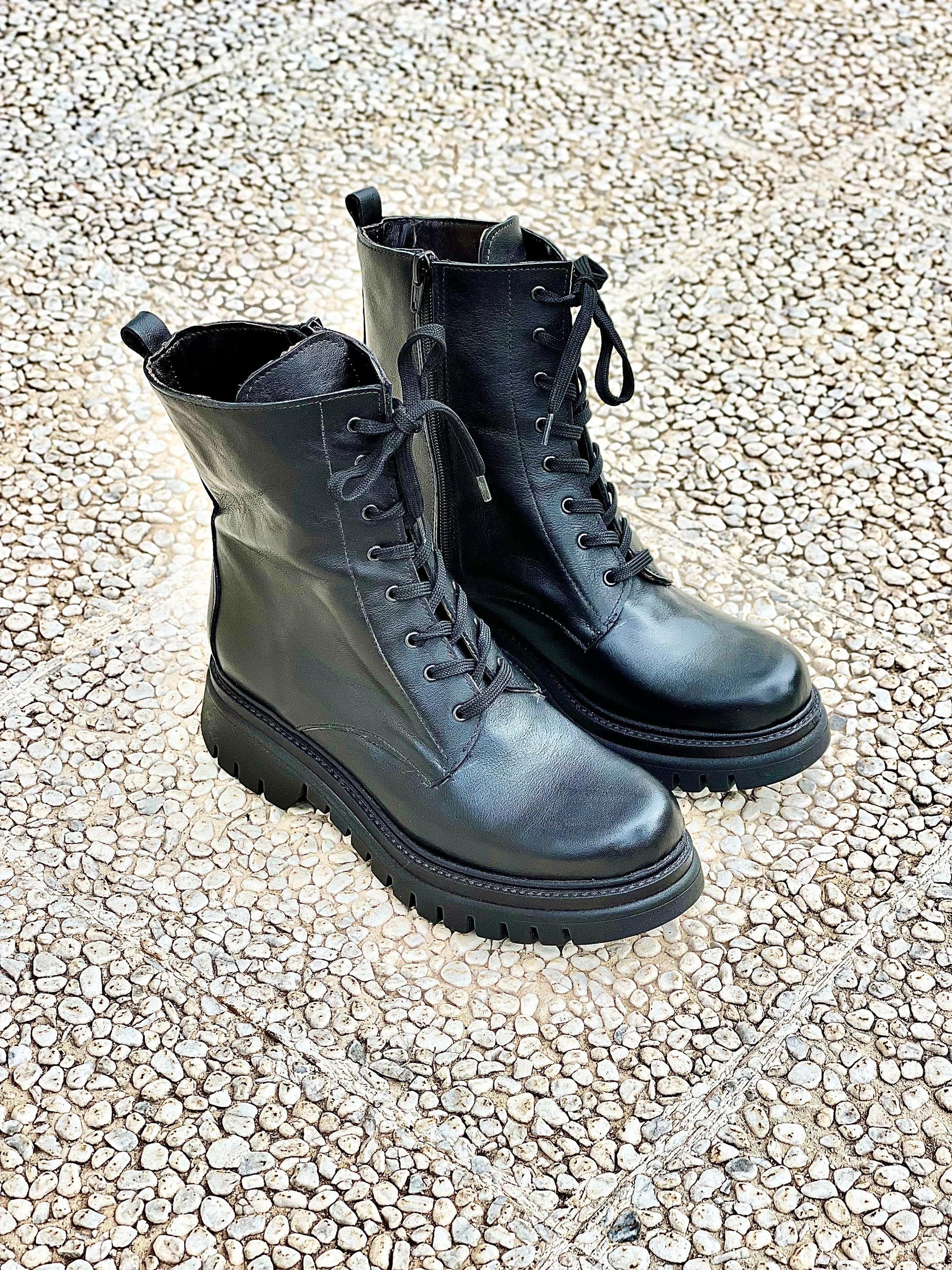 Niskie buty za kostkę z czarnej skóry, obcas 3 cm.