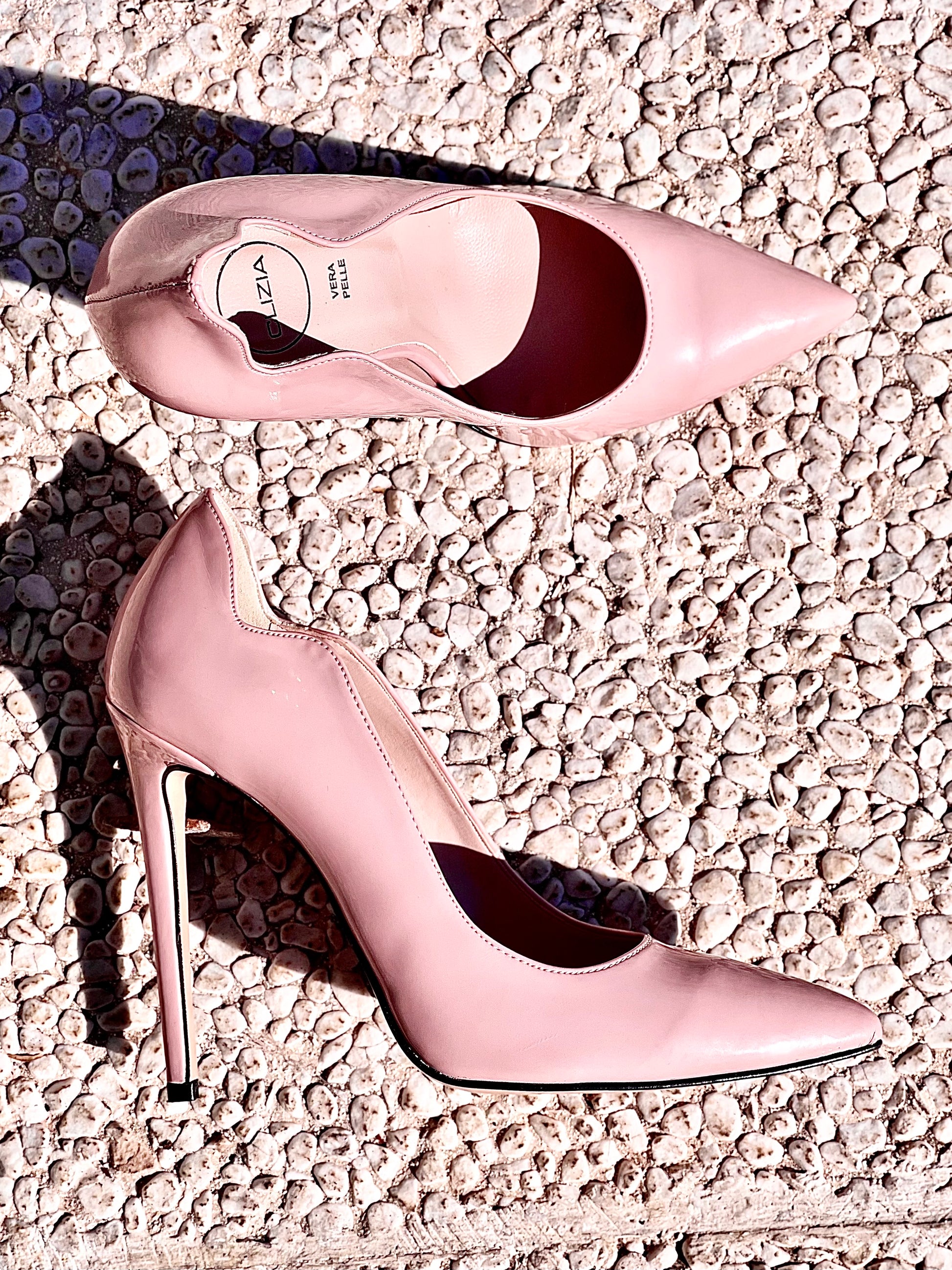 Szpiczaste czółenka z lakierowanej skóry z obcasem na szpilce.