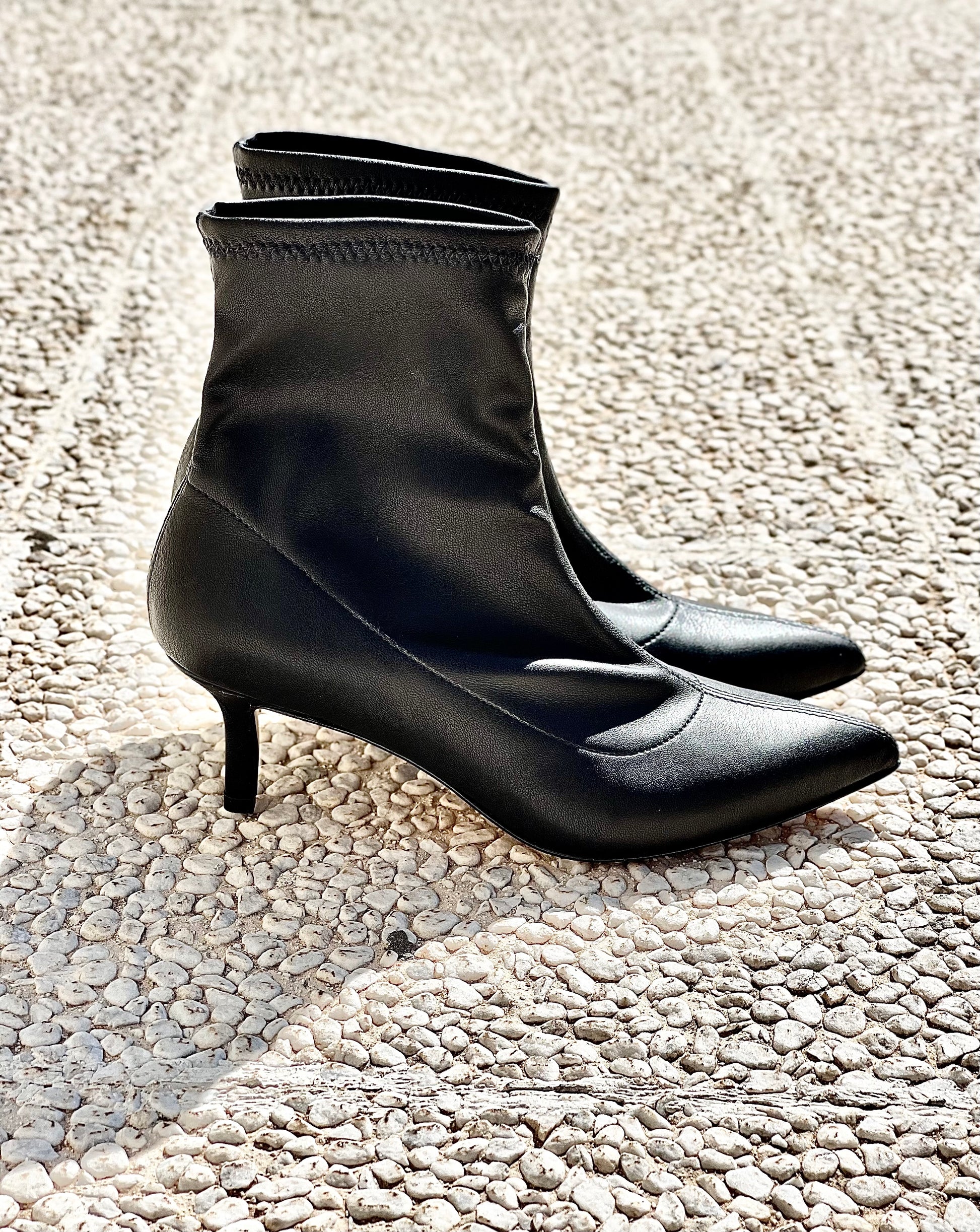 Elastyczne buty za kostkę z 60-milimetrowym obcasem.
