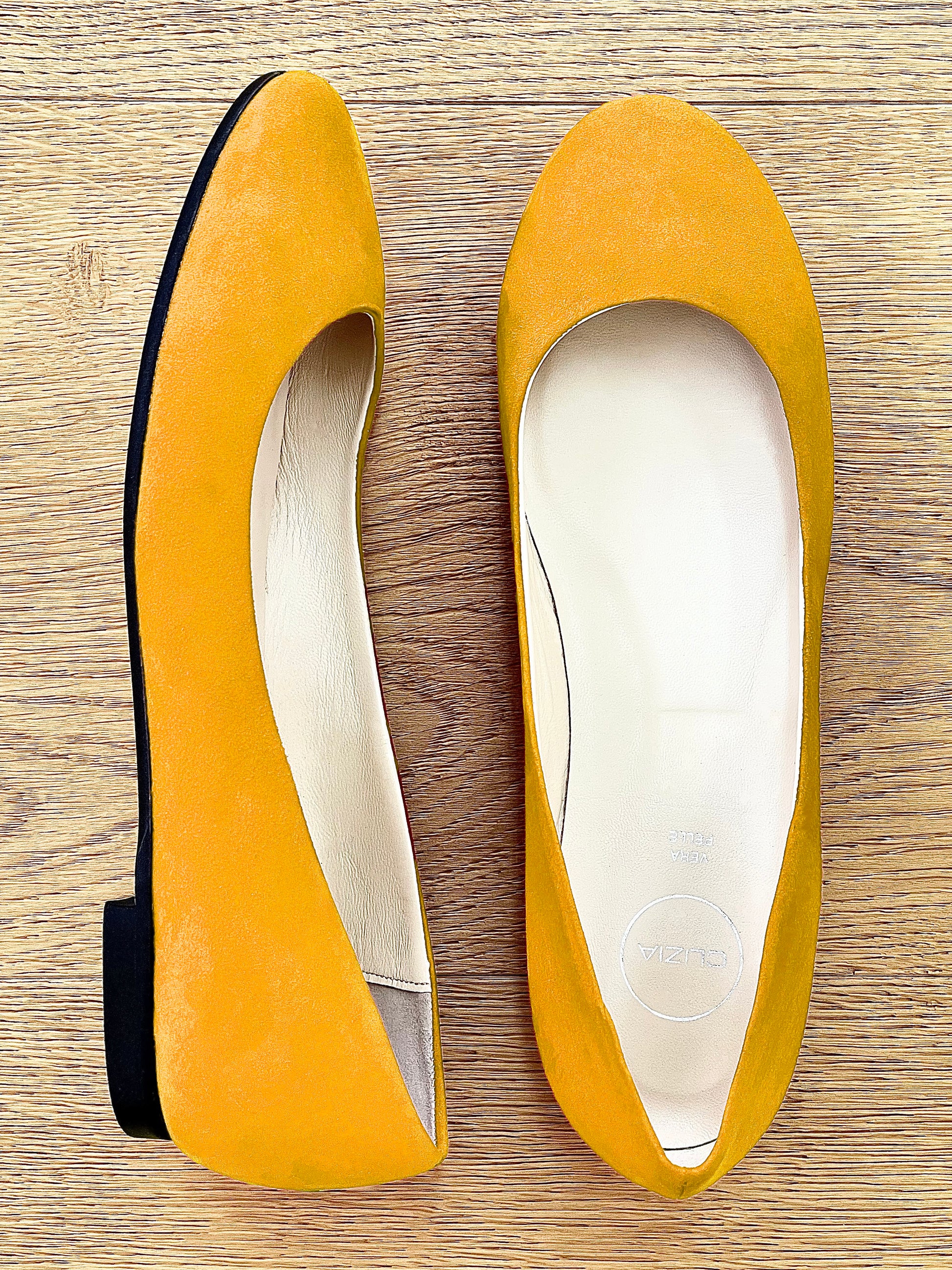 Baleriny z okrągłym czubkiem i obcasem 1 cm.