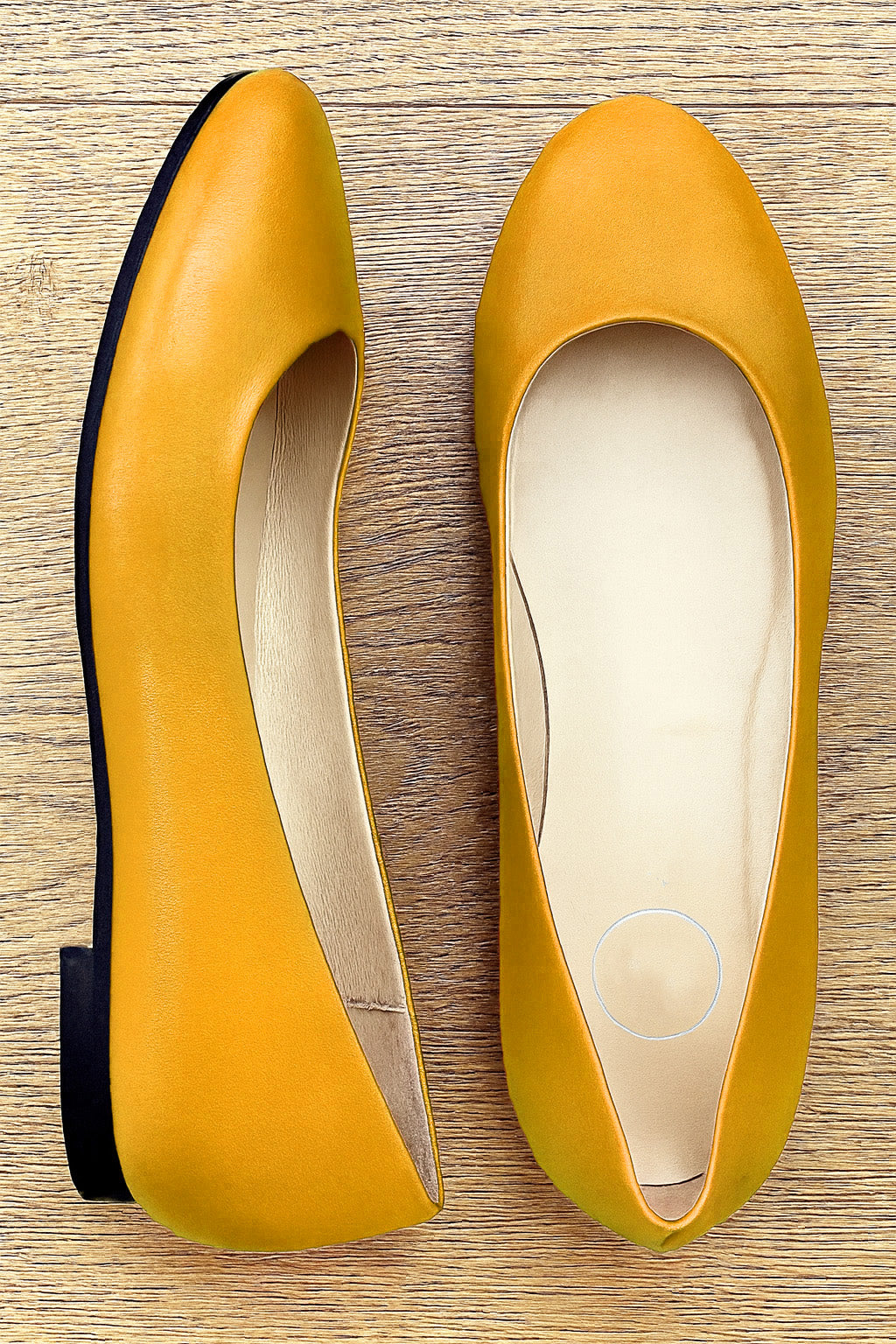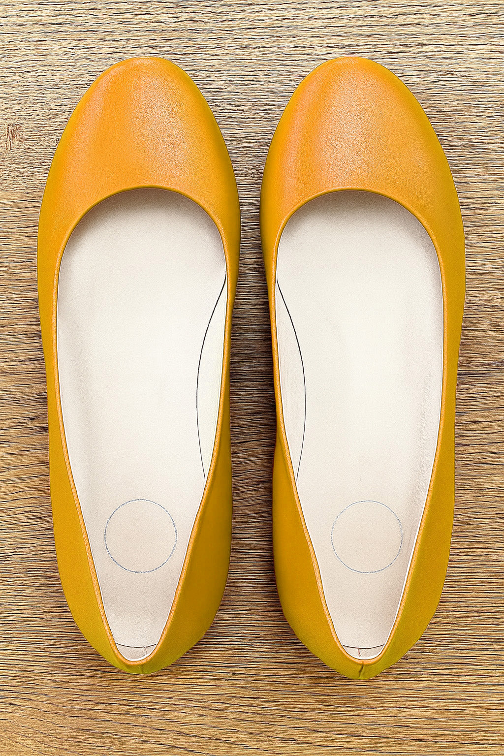 Baleriny z okrągłym czubkiem i obcasem 1 cm.