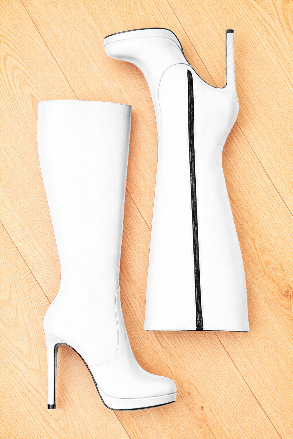 Eleganckie wysokie buty z okrągłym noskiem i cienkim obcasem.