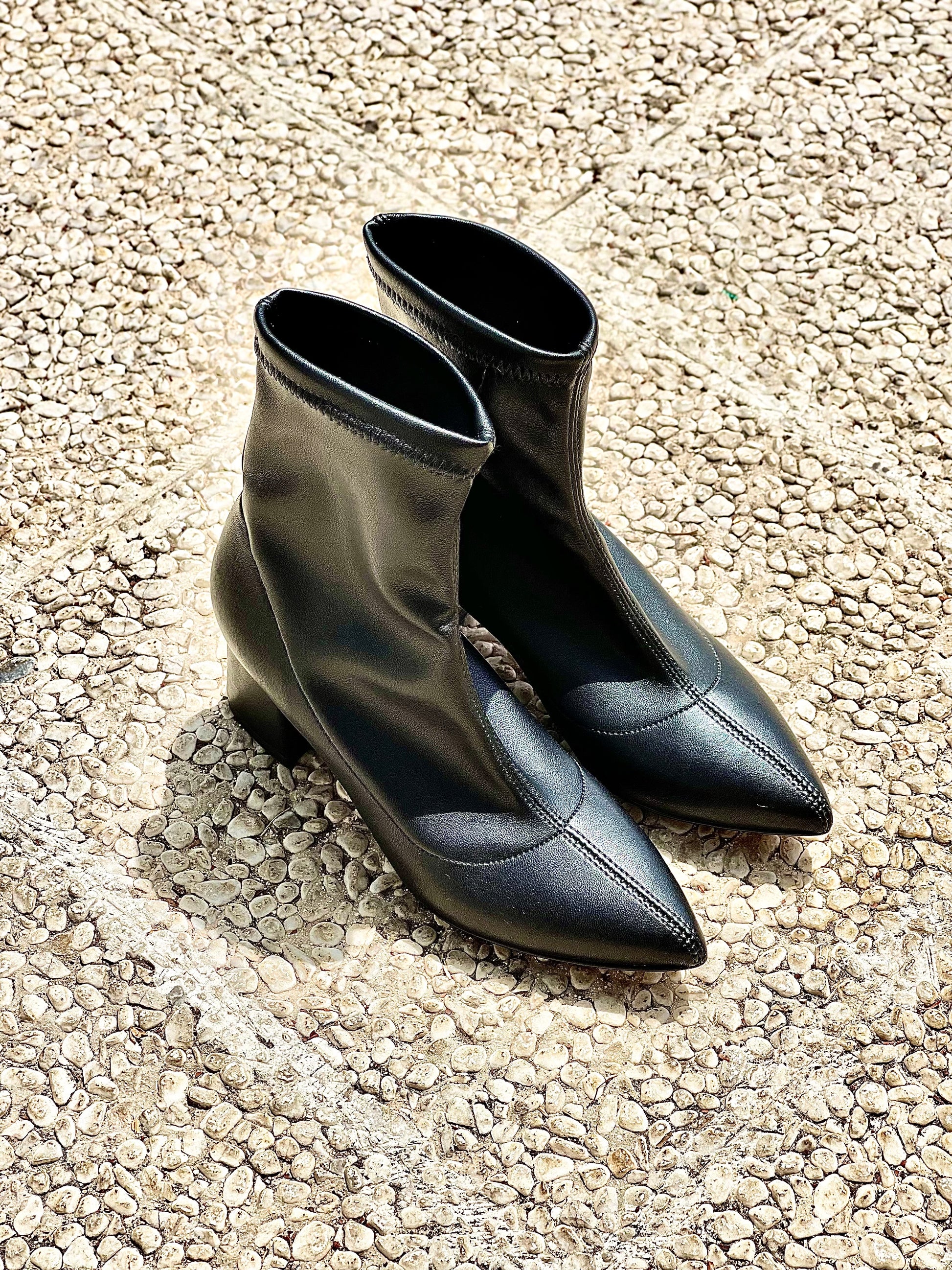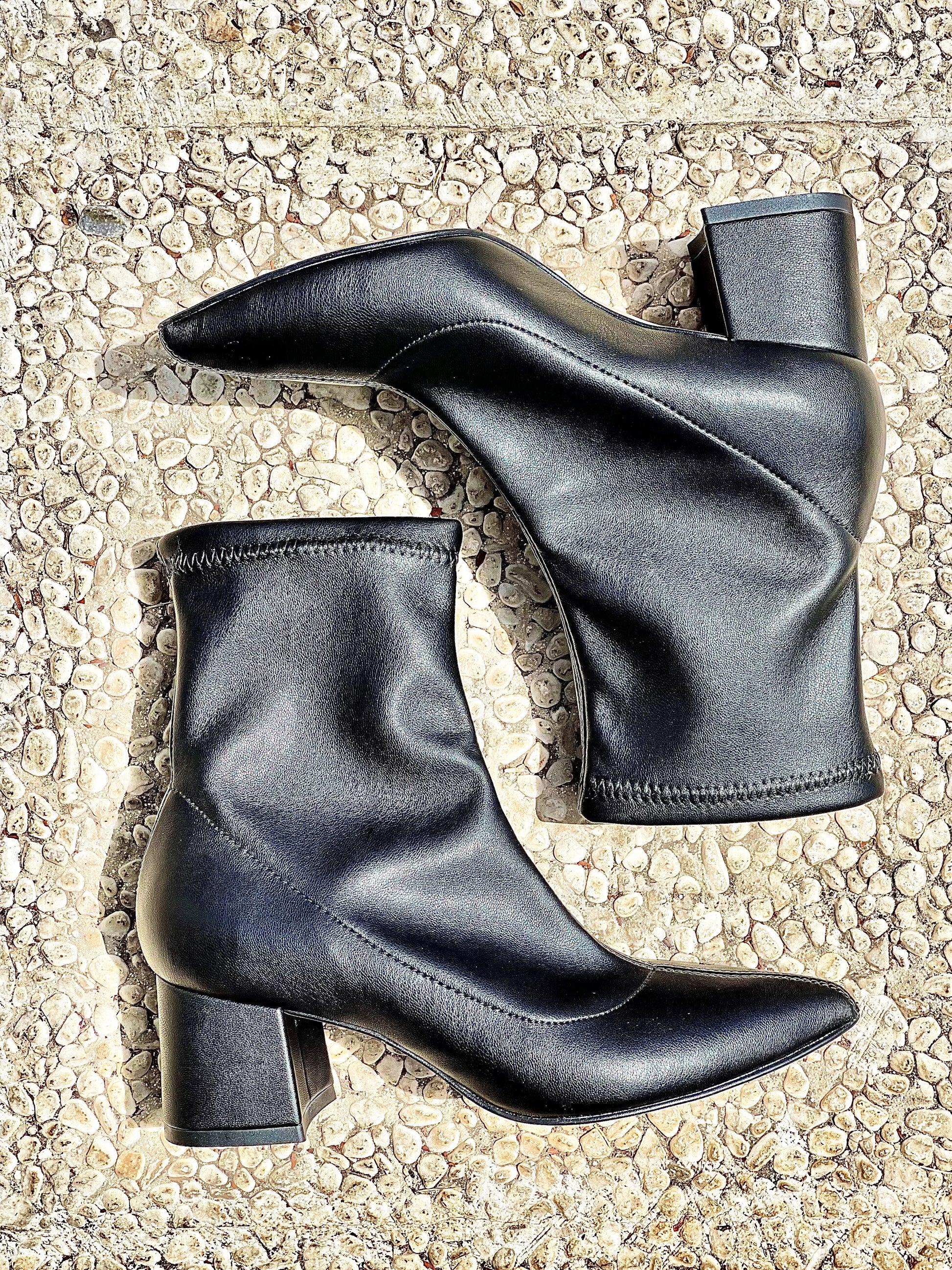 Elastyczne buty za kostkę z obcasem o szerokości 55 mm.