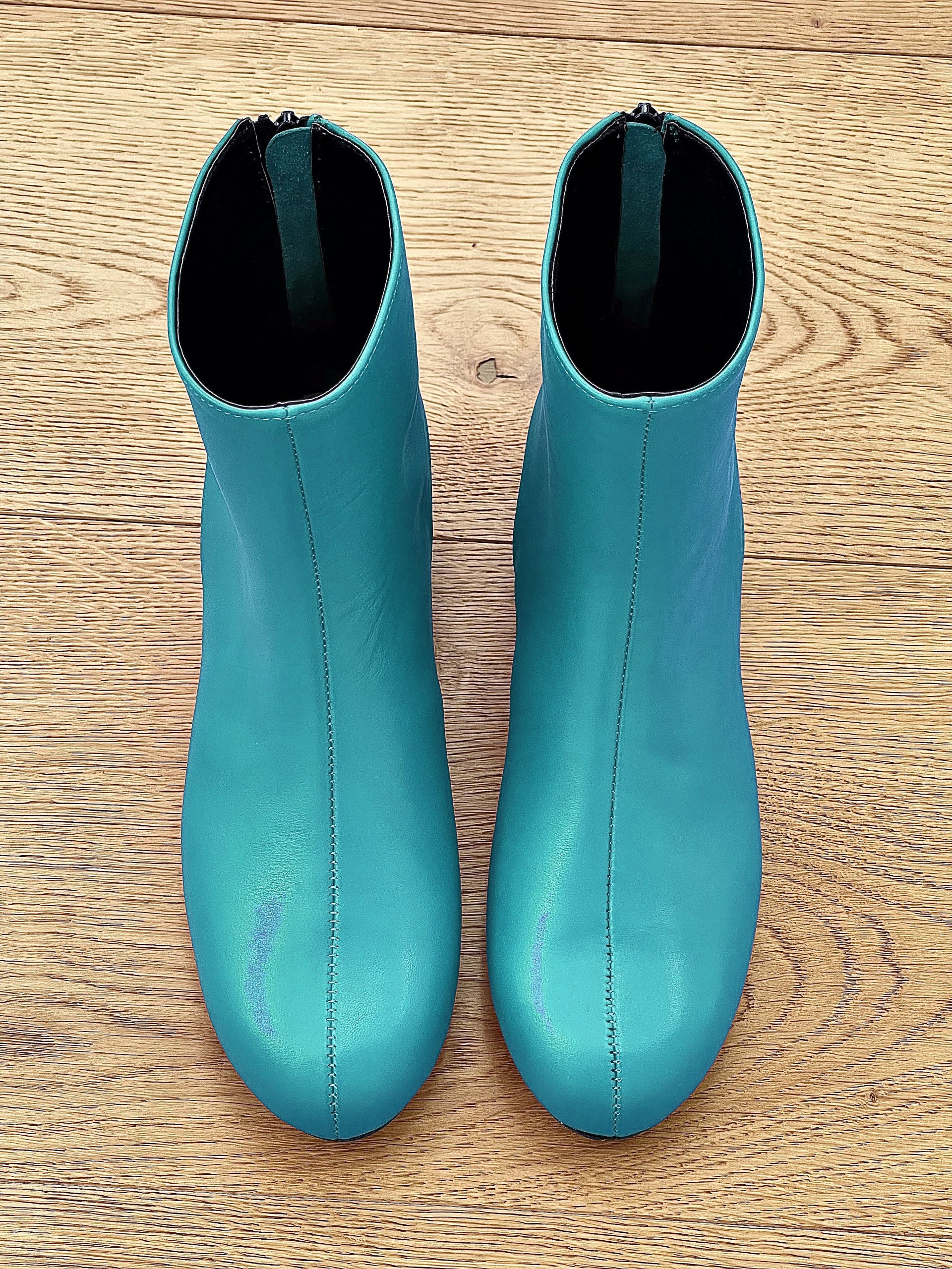 Niskie botki z okrągłym noskiem i obcasem 1 cm.