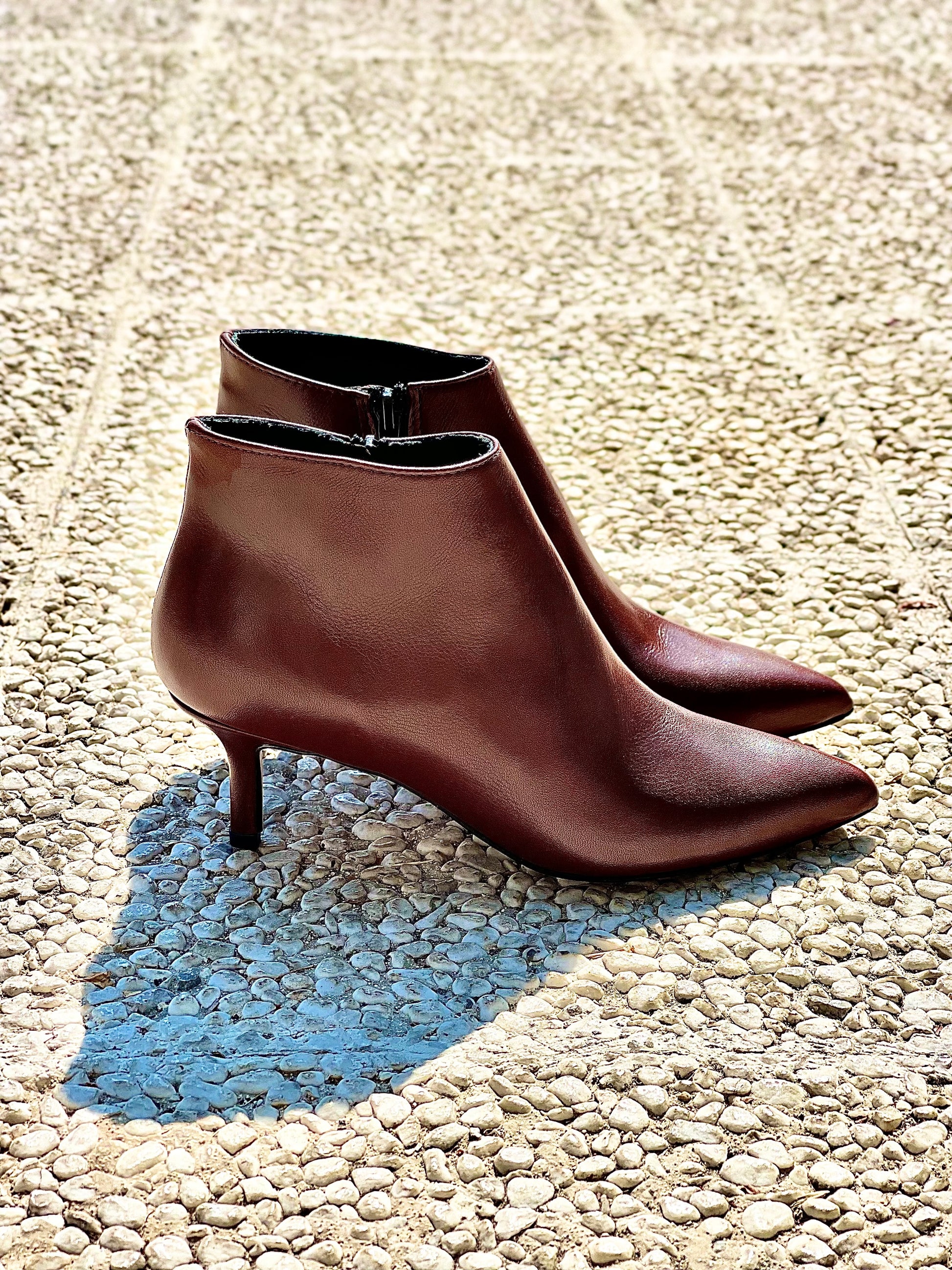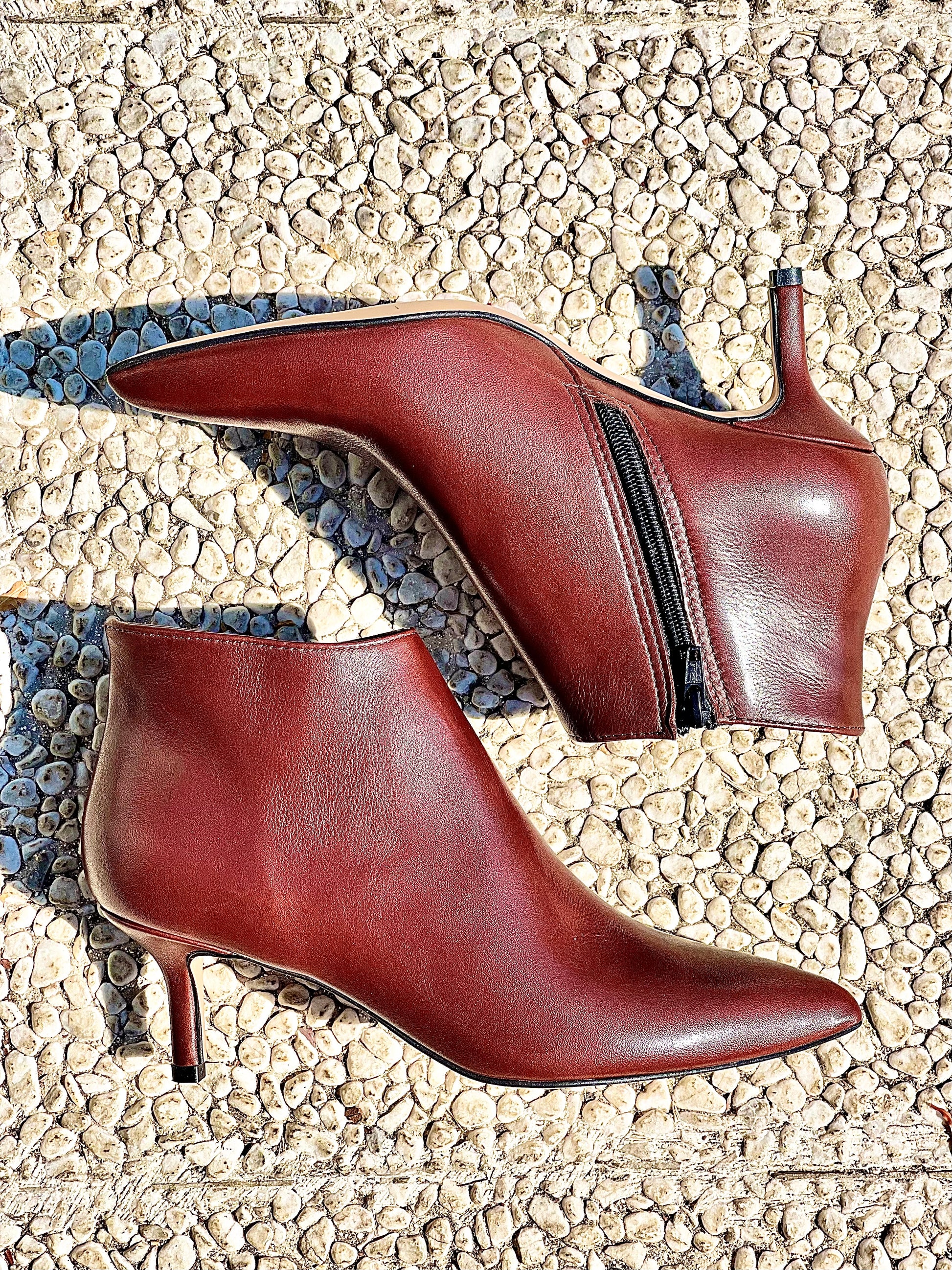 Skórzane buty za kostkę ze szpiczastym noskiem i 6-centymetrowym obcasem.