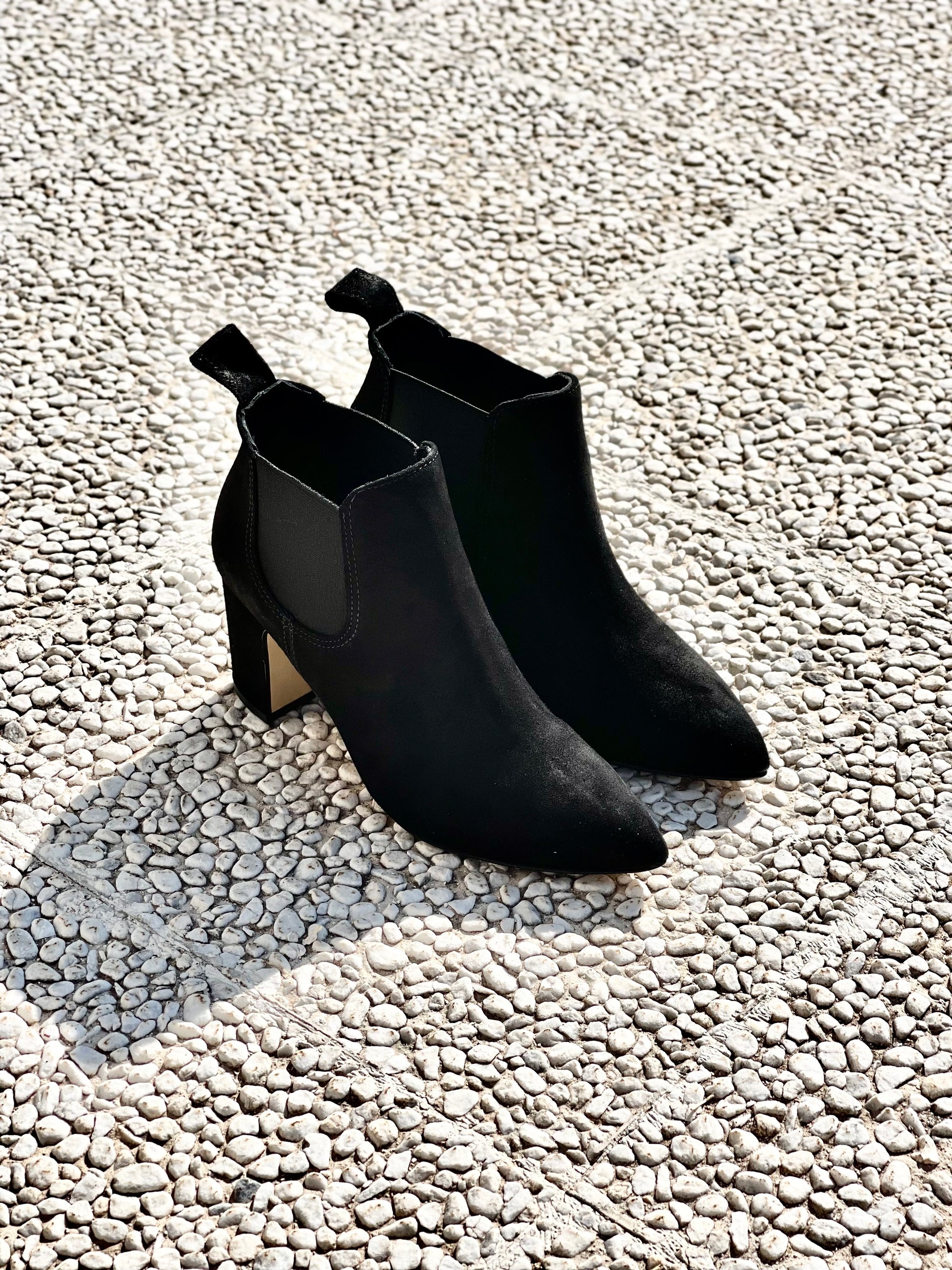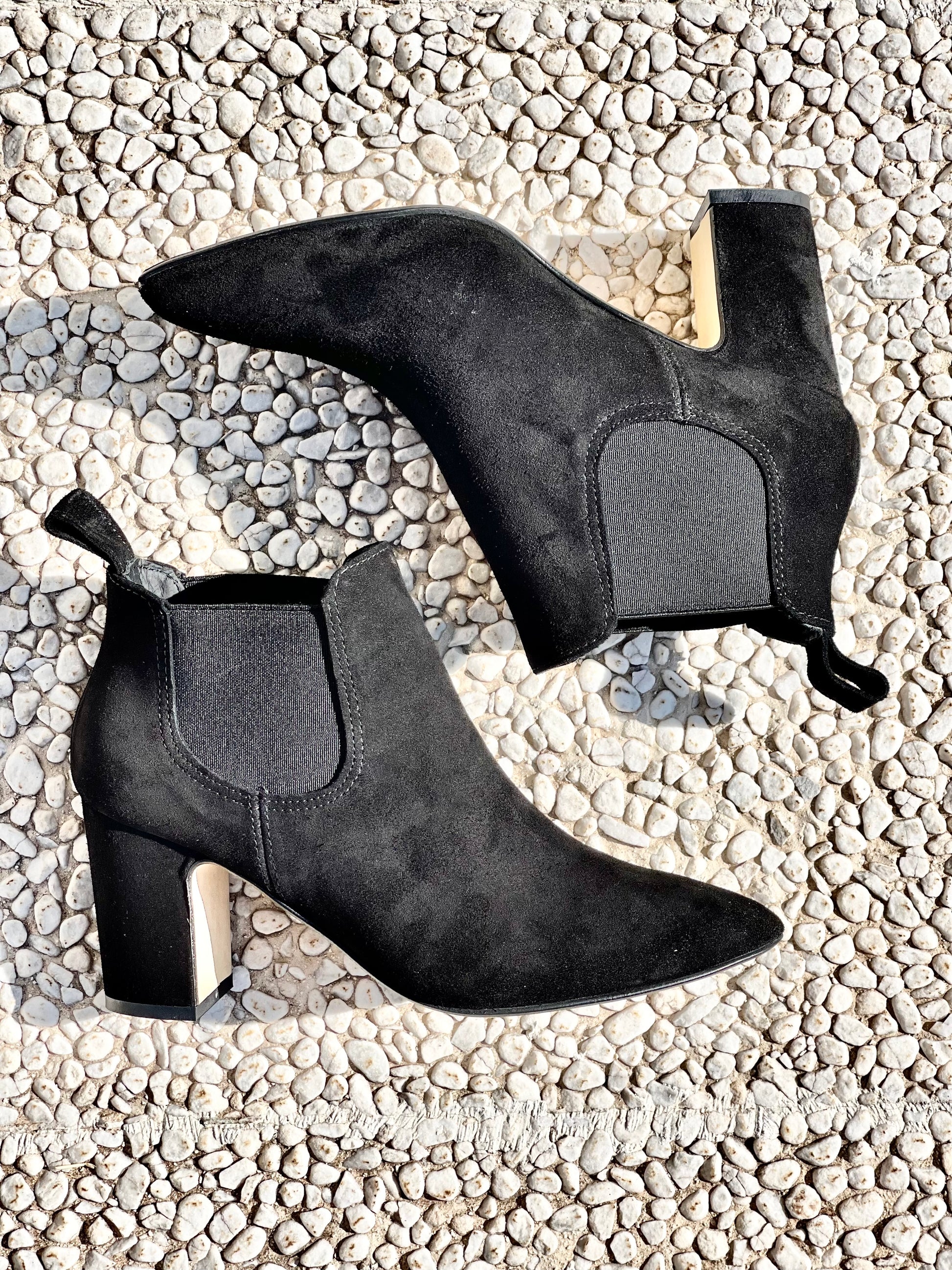 Zamszowe buty chelsea z szerokim obcasem 75 mm.