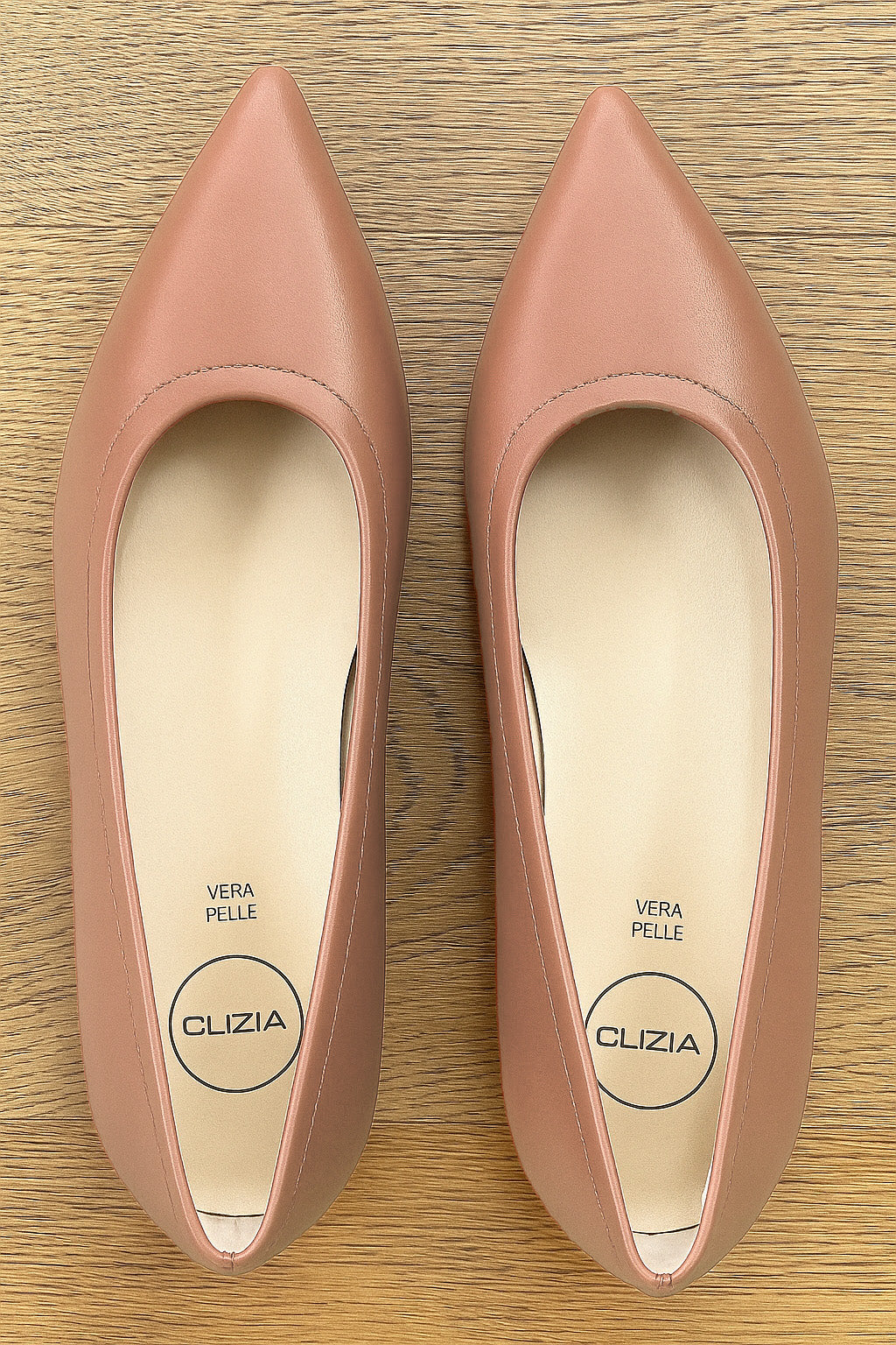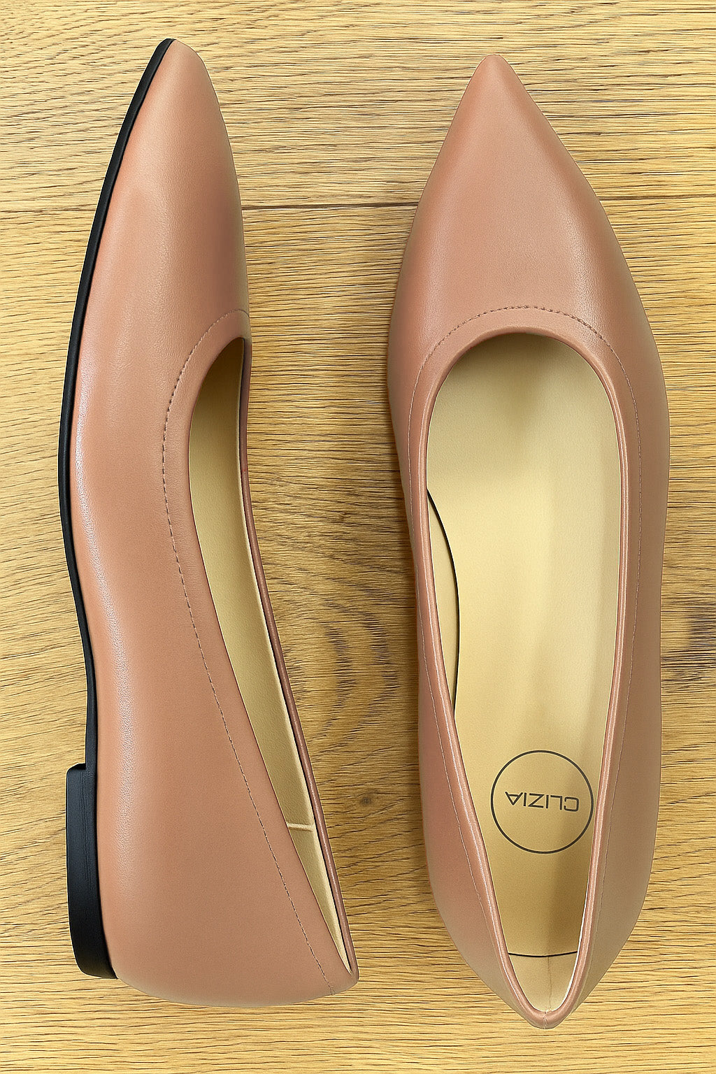 Baleriny z płaskim noskiem i 1 cm obcasem.