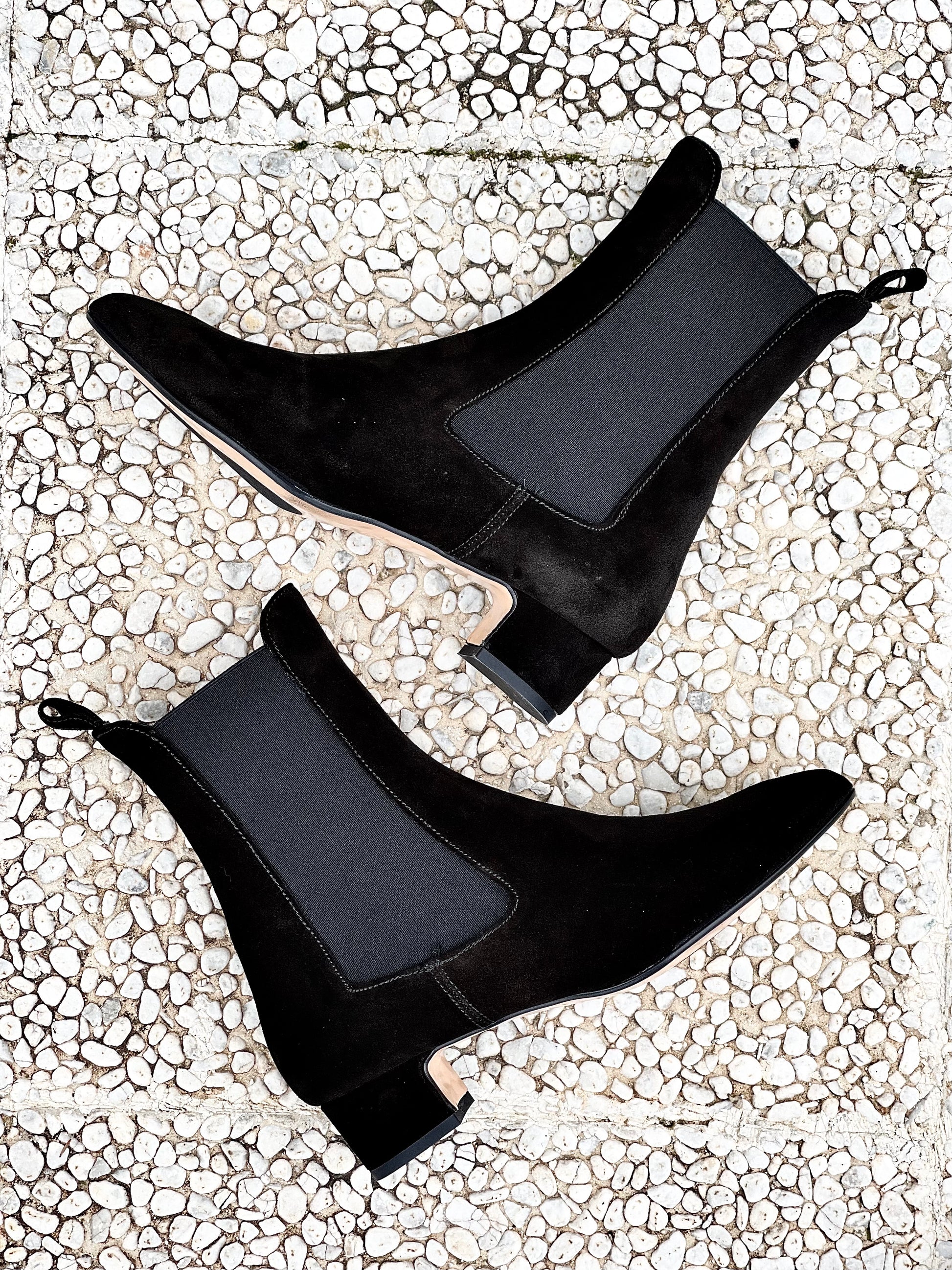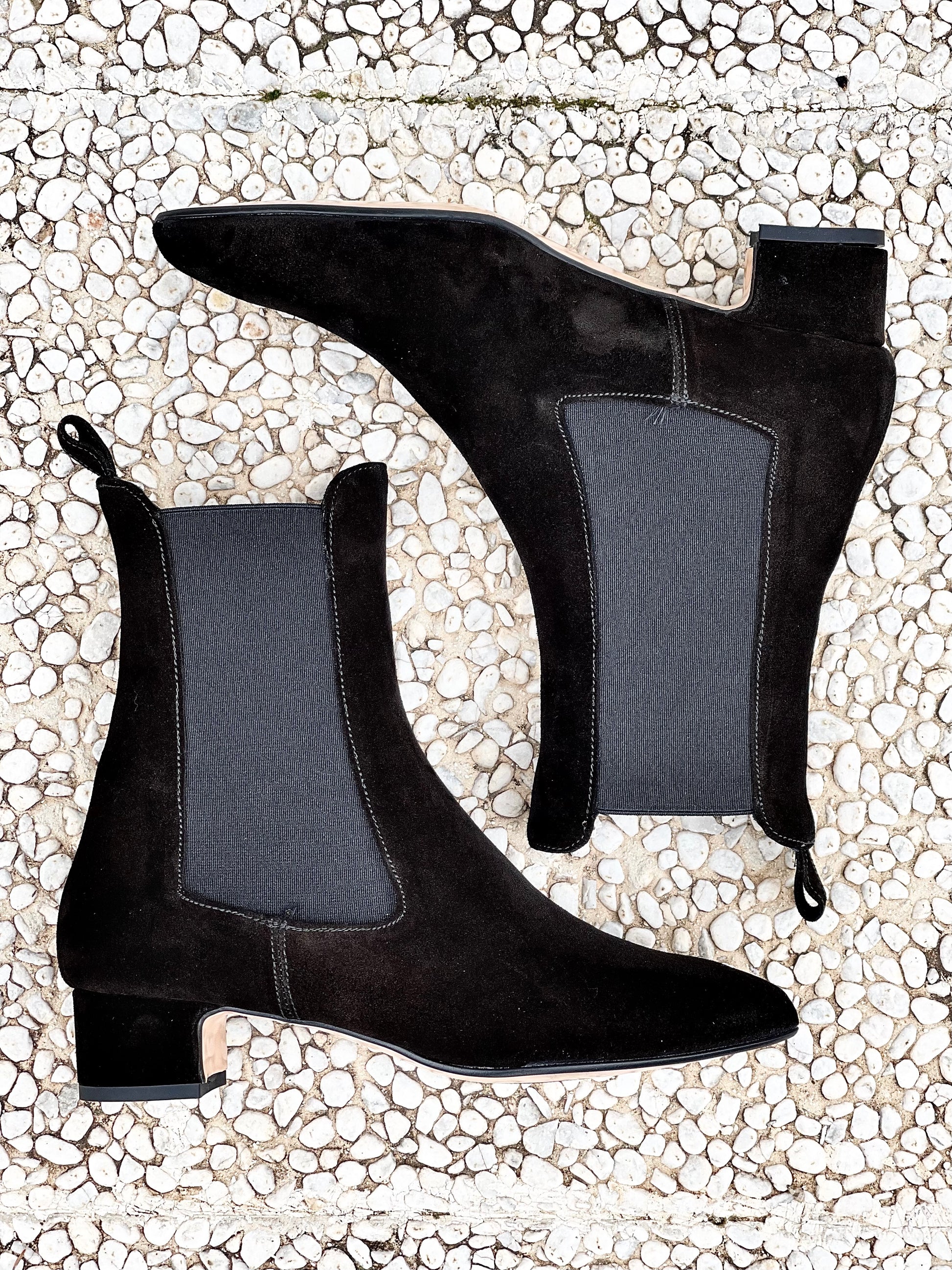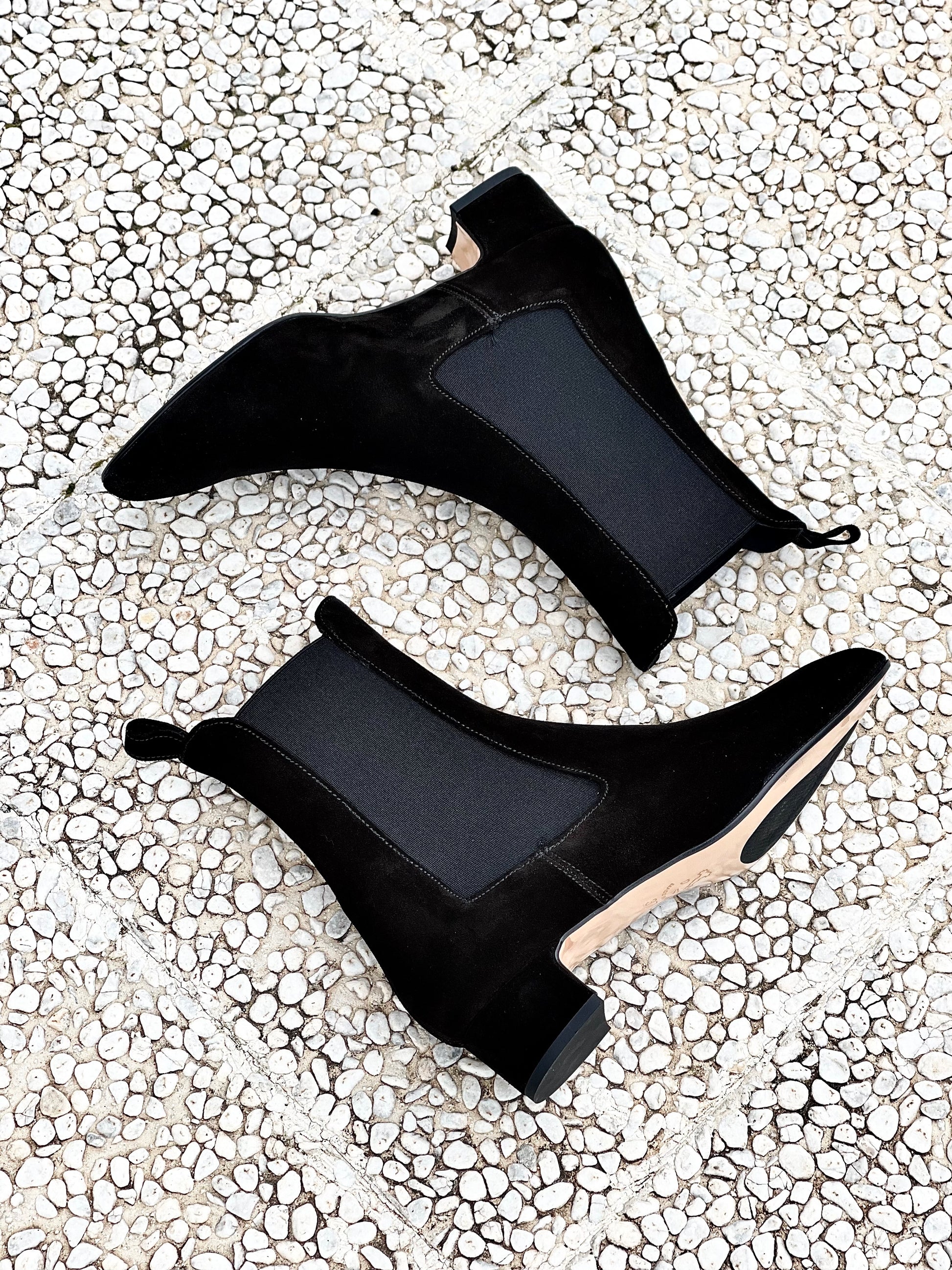 Zamszowe buty chelsea z szerokim obcasem 35 mm.
