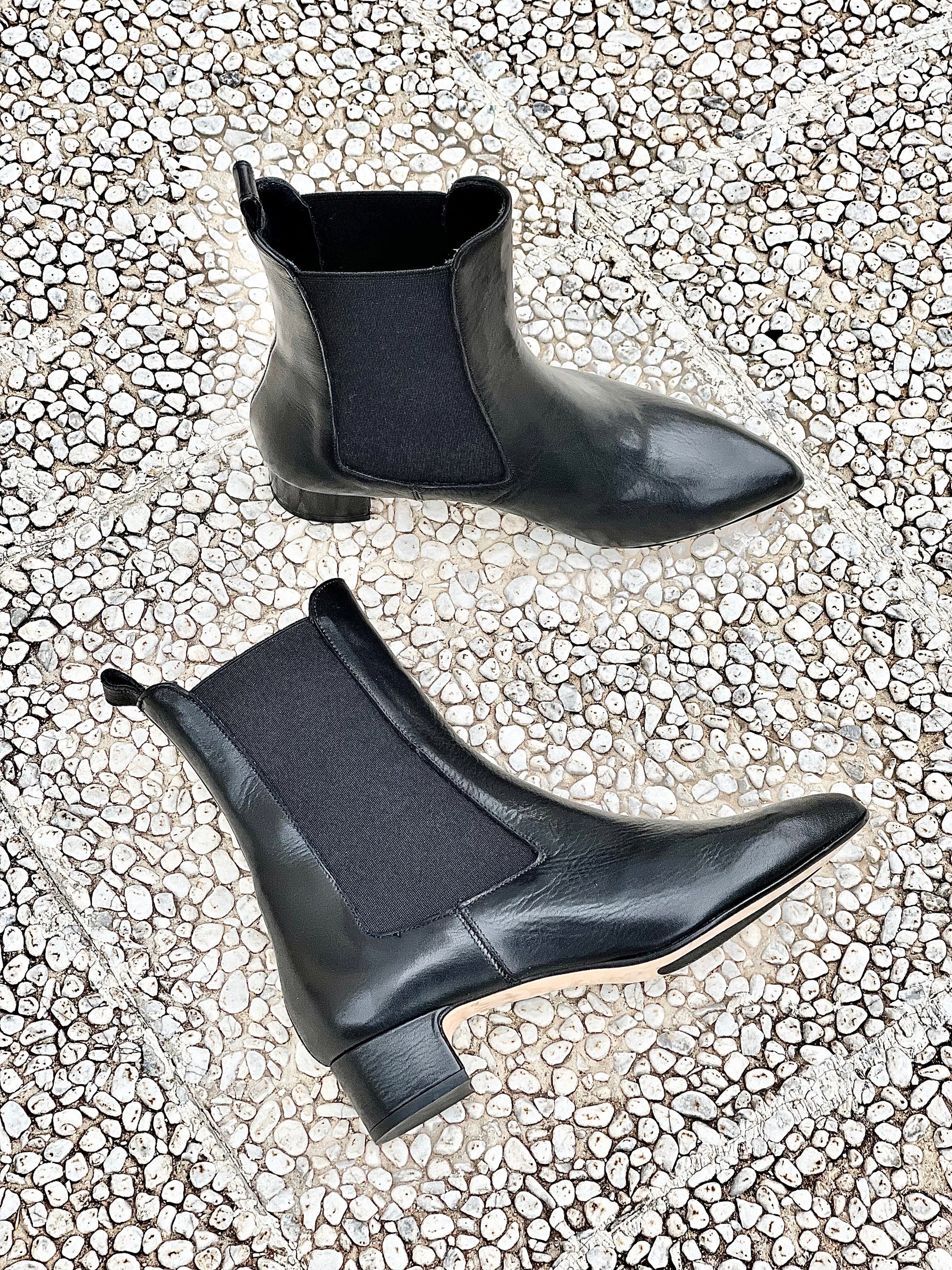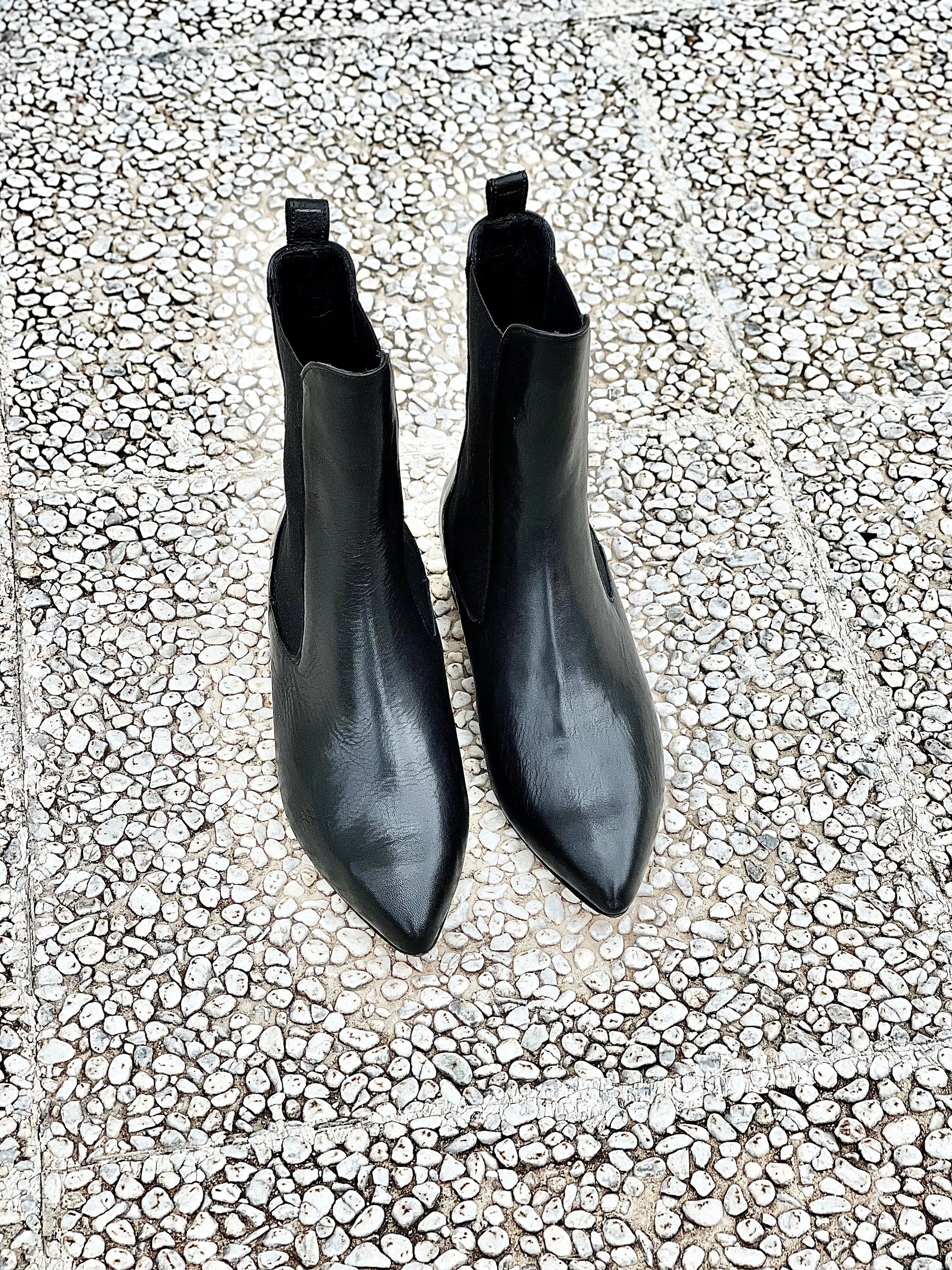 Skórzane buty za kostkę z płaskimi palcami i szerokim obcasem 35 mm.