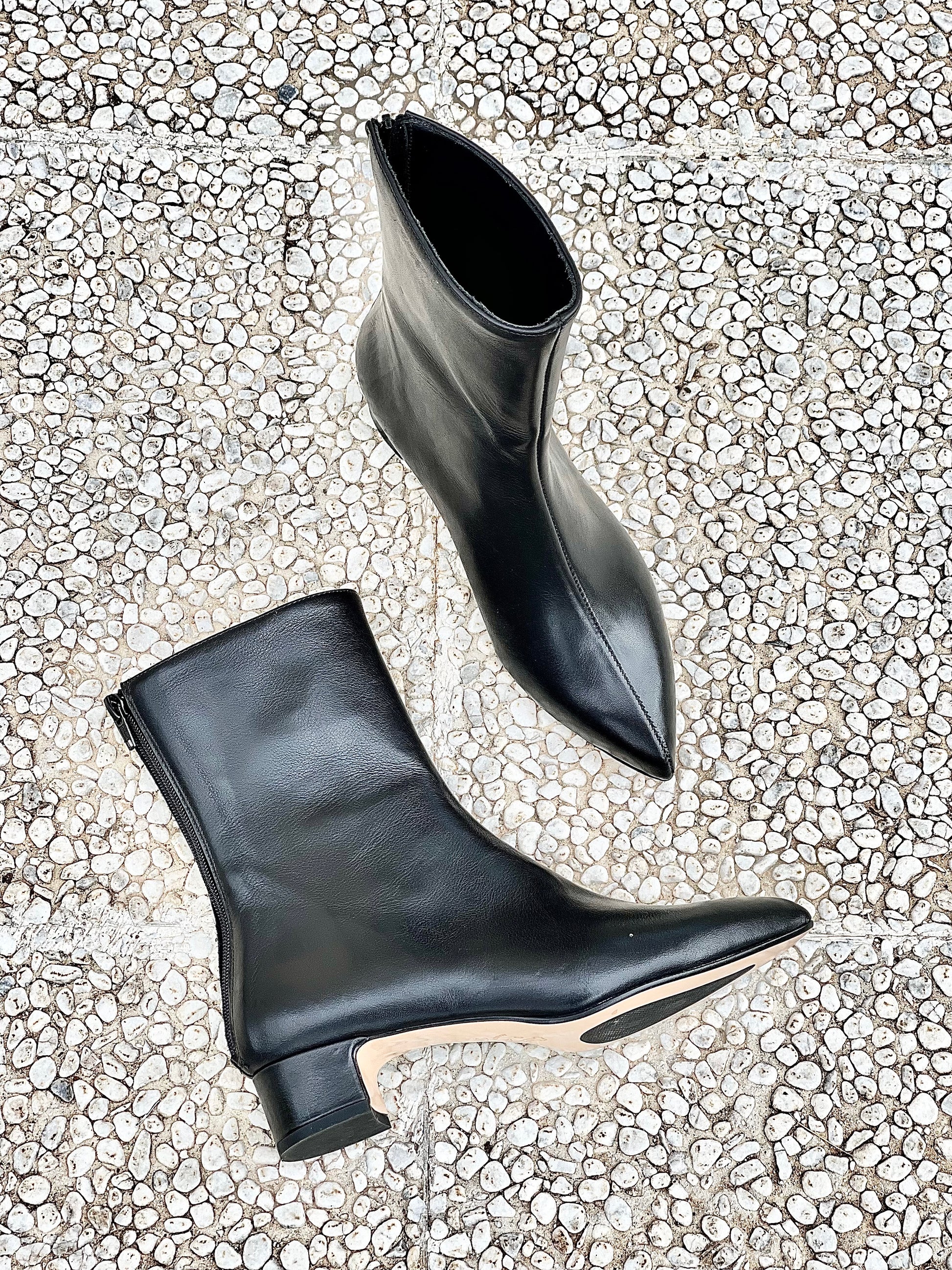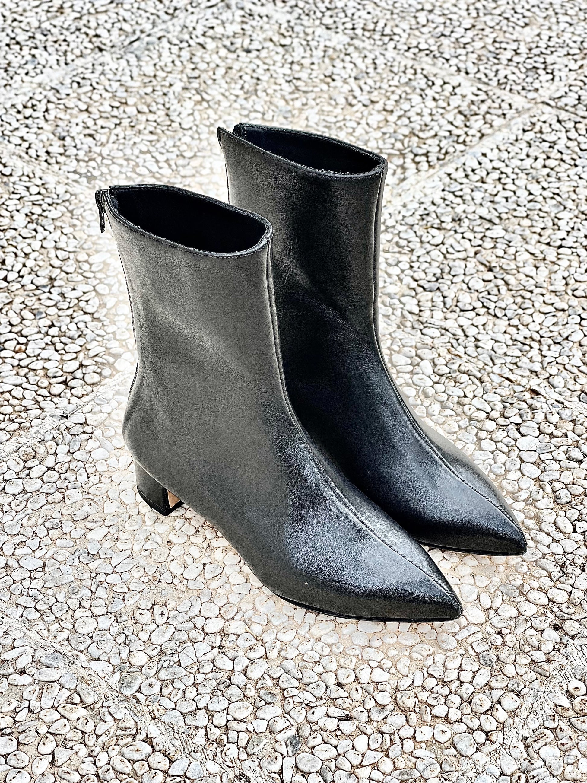 Skórzane buty za kostkę z szerokim obcasem i zamkiem błyskawicznym z tyłu.