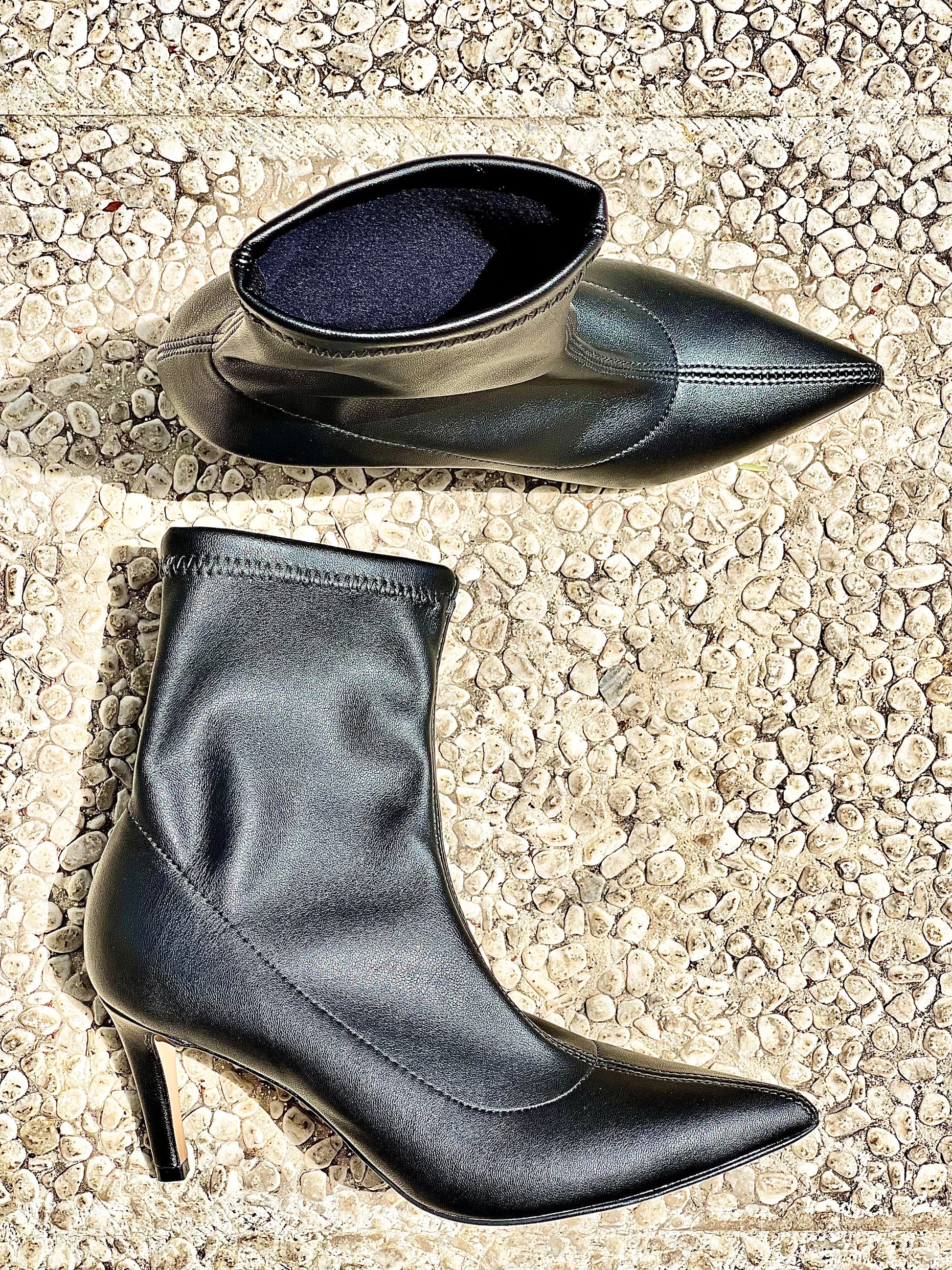 Elastyczne buty za kostkę z 75-milimetrowym obcasem.