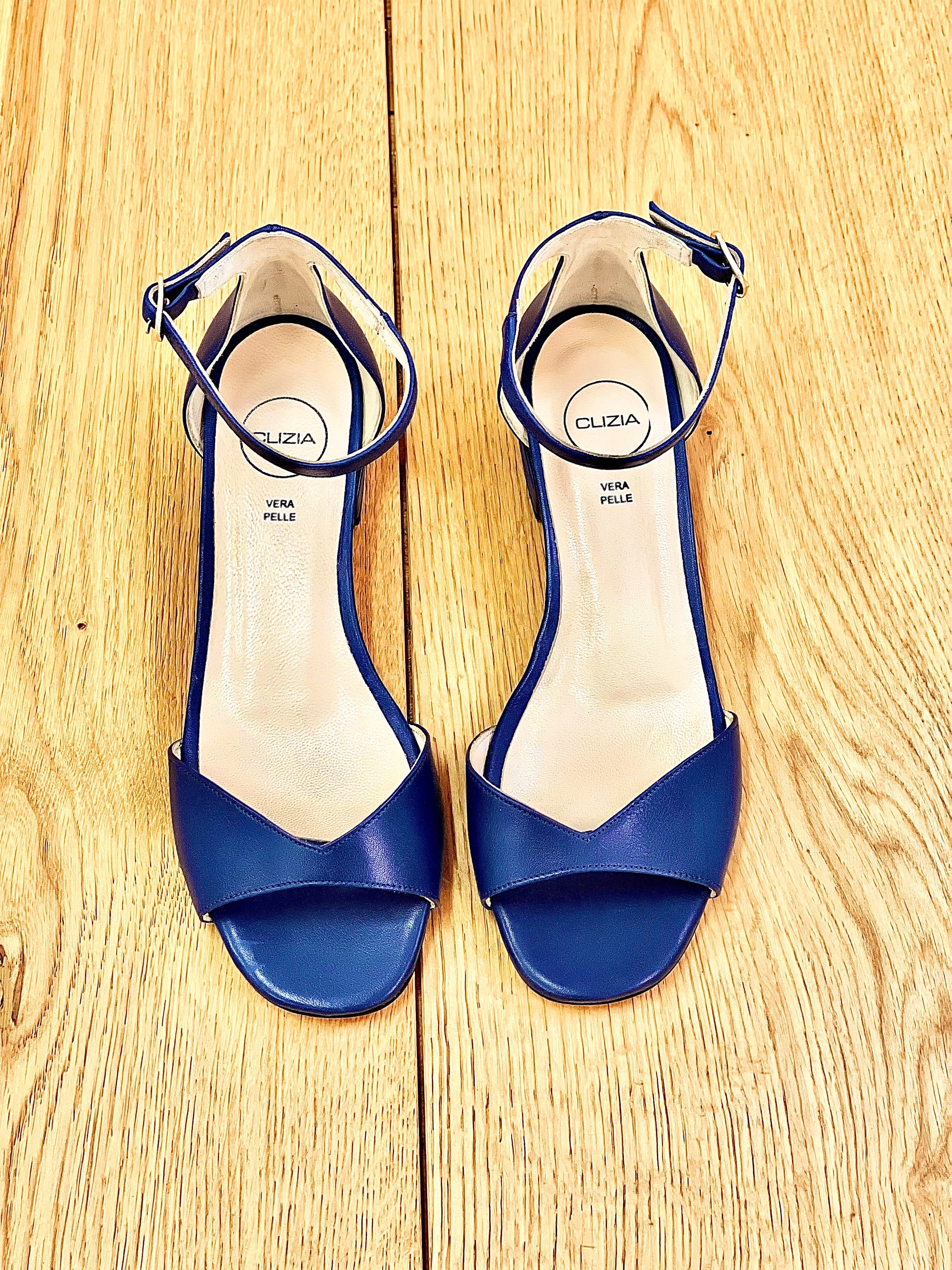 Sandália baixa em pele e calcanhar com decote em V e salto de 2 cm.