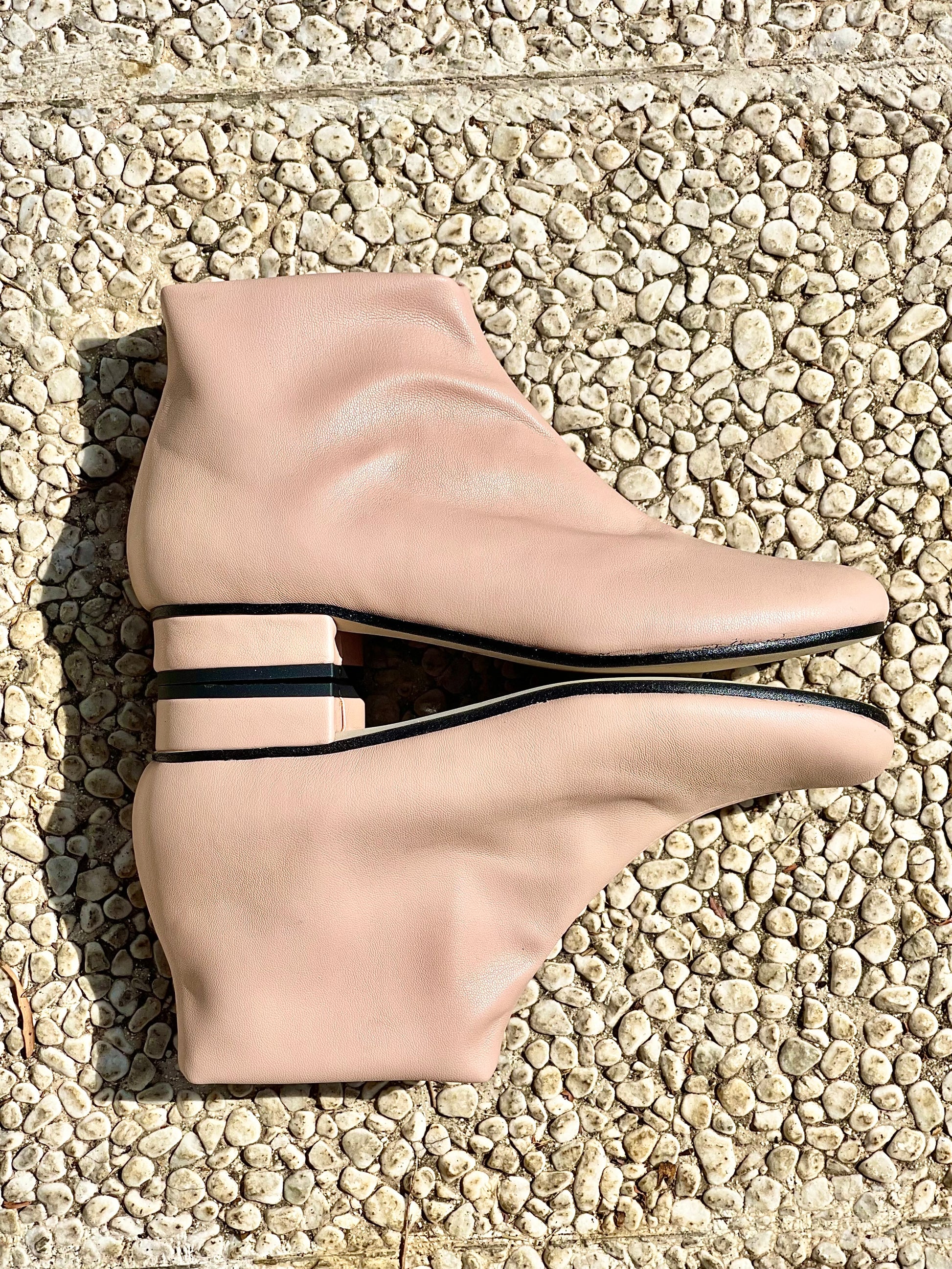 Bota de tornozelo elástica em pele com 2 cm de salto.