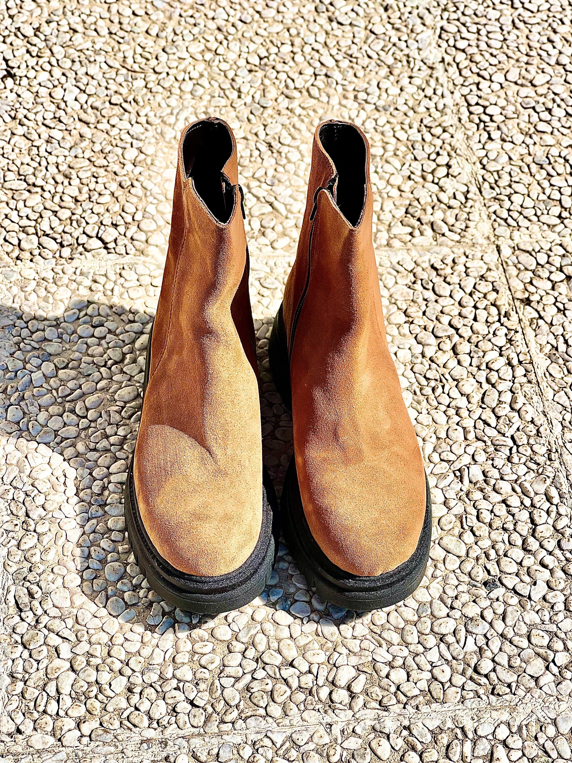 Botins de camurça com 3 cm de salto e fecho de correr interior.