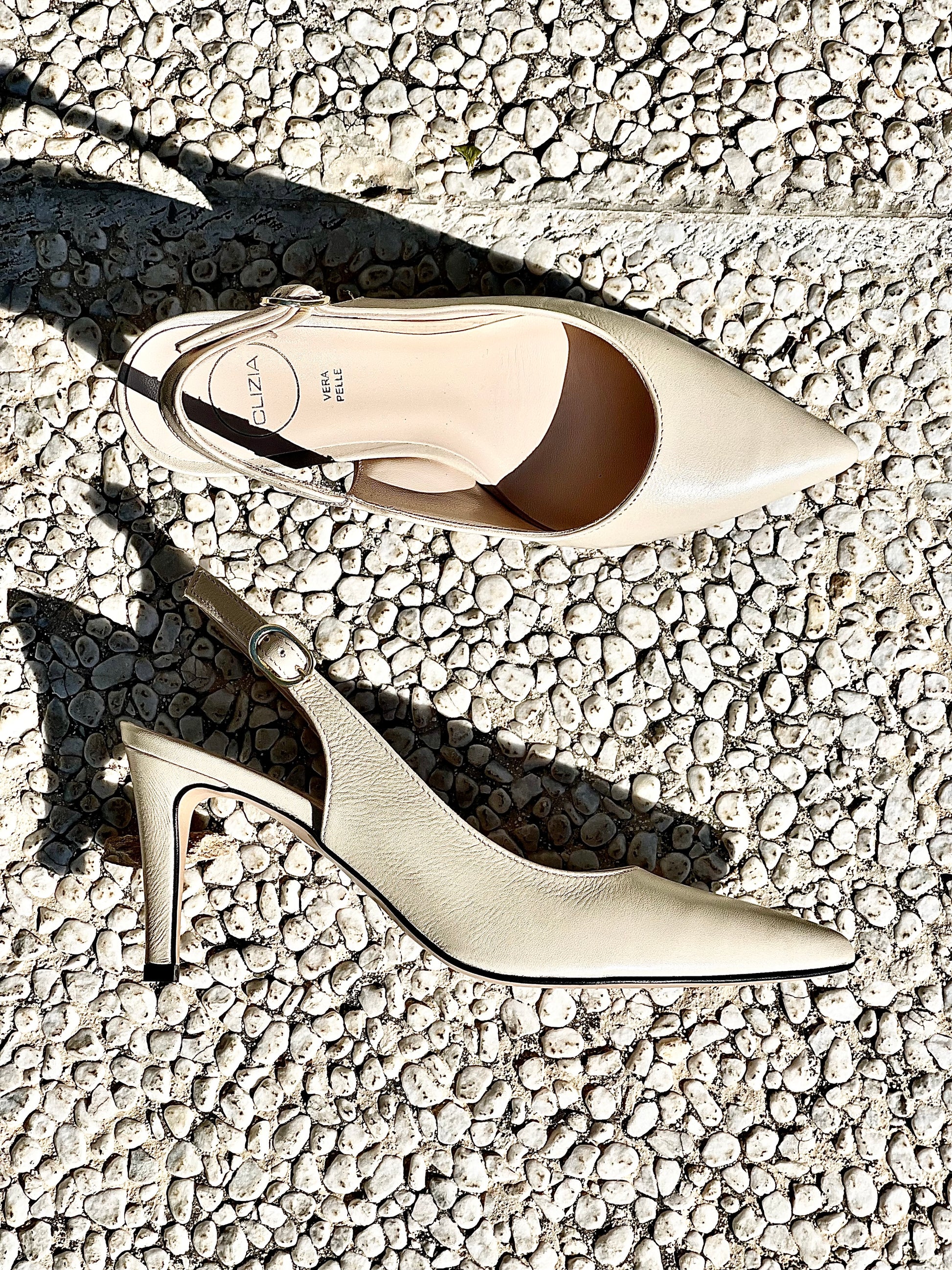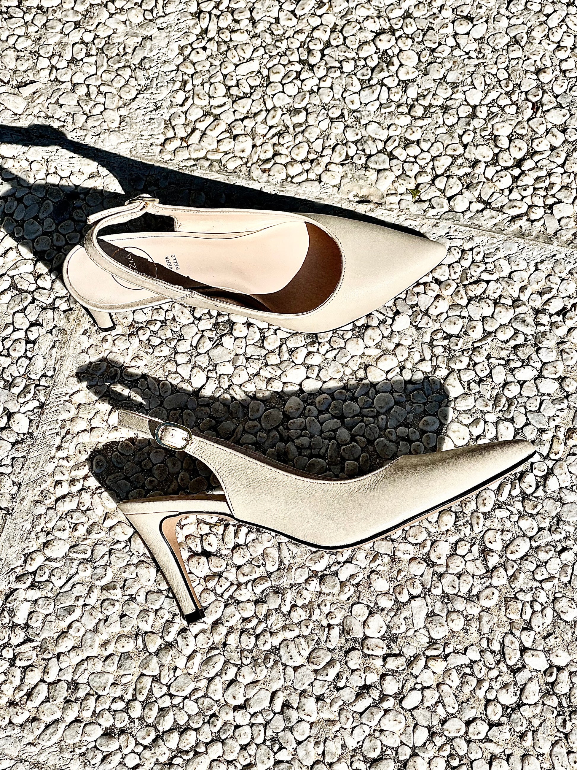 Bomba de slingback pontiaguda com salto de couro de 75 mm.
